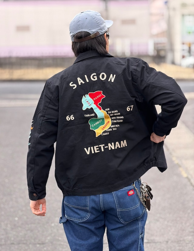 ベトジャン ブラック M L XL 2XL XXL 福 虎 ベトナムジャケット スーベニアジャケット 刺繍 DAFEILI Vintage スカジャン アメカジ コットンツイル バイカーファッション フリース 新品 復刻 短丈 60s 60's 60年代