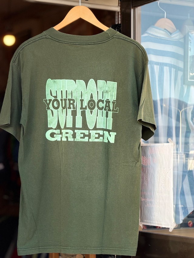 90~00's "SUPPORT YOUR LOCAL GREEN" 半袖バイカーTシャツ MADE IN U.S.A. Lサイズ ダークグリーン サンフェード 褪色 GREEN NATION VAGOS MOTORCYCLE CLUB ヴァゴス バゴス HELLS ANGELS