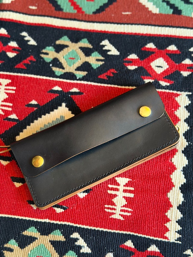 LOCAL STUDS CLUB "たつのハンドワックスレザー"茶芯ロングトラッカーウォレット MADE IN JAPAN ブラック 革財布 牛革 ミヤツグ 本革 42TALON ハンドメイド 経年変化 アメカジ バイカーウォレット long trucker wallet 真鍮
