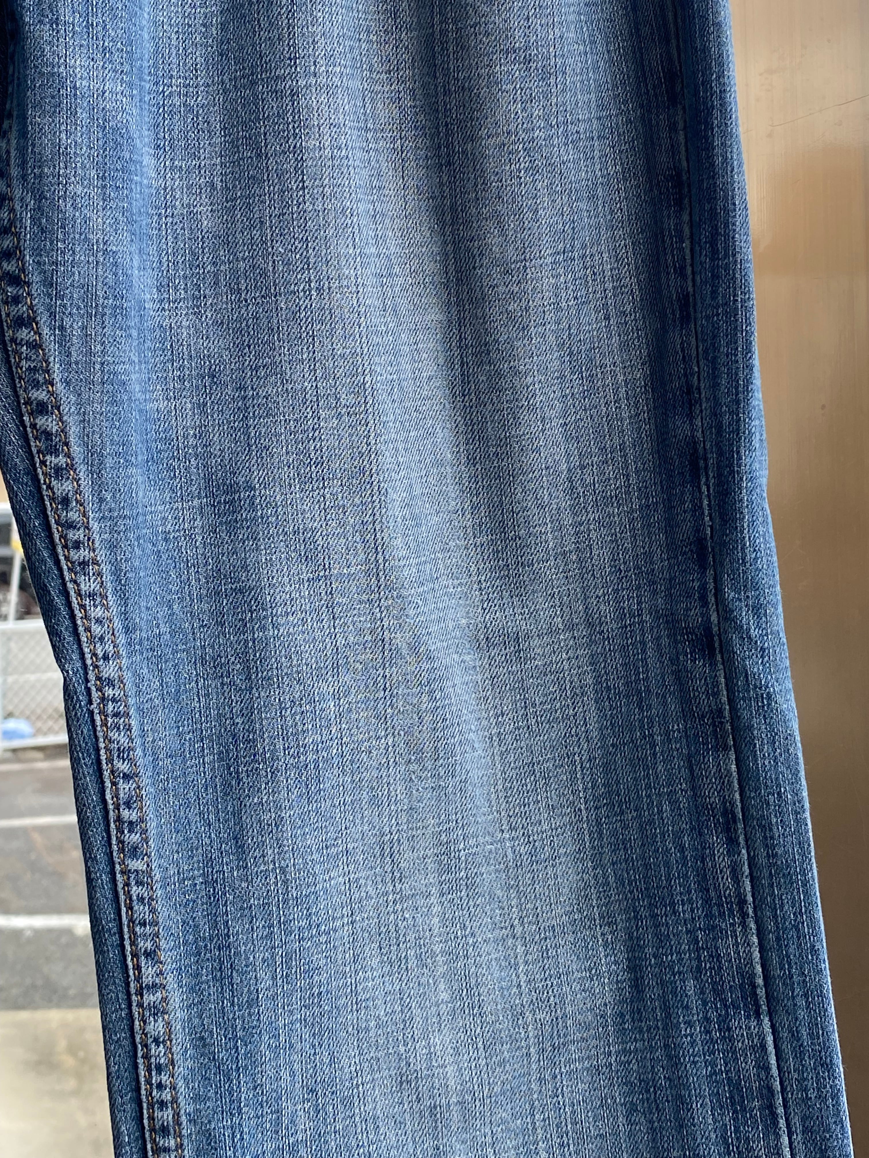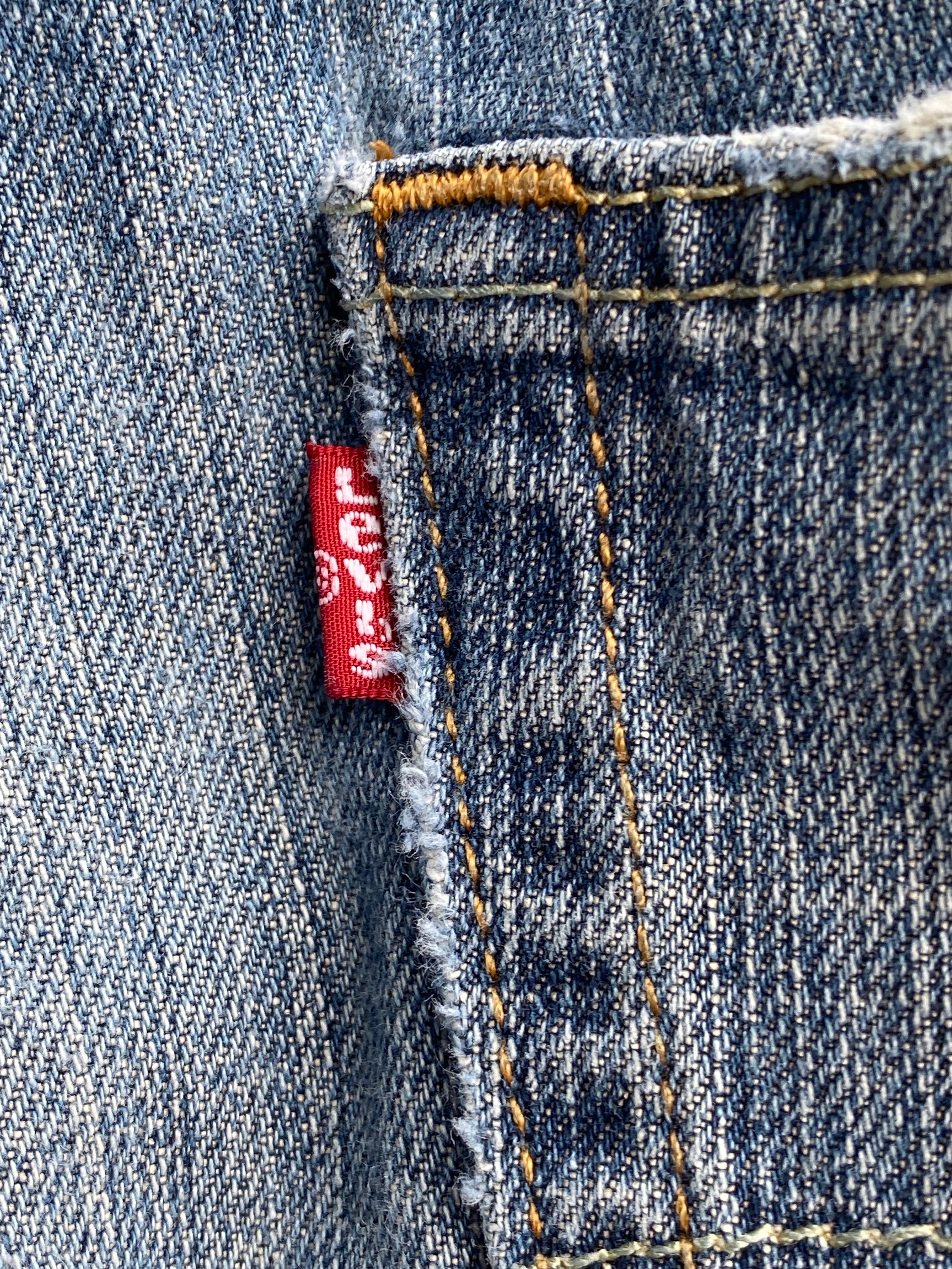 全体的にアイスブルーに近い程に色落ちしておりヴィンテージデニムさながらの縦落ちバリバリで、新品には無い雰囲気をもっています。