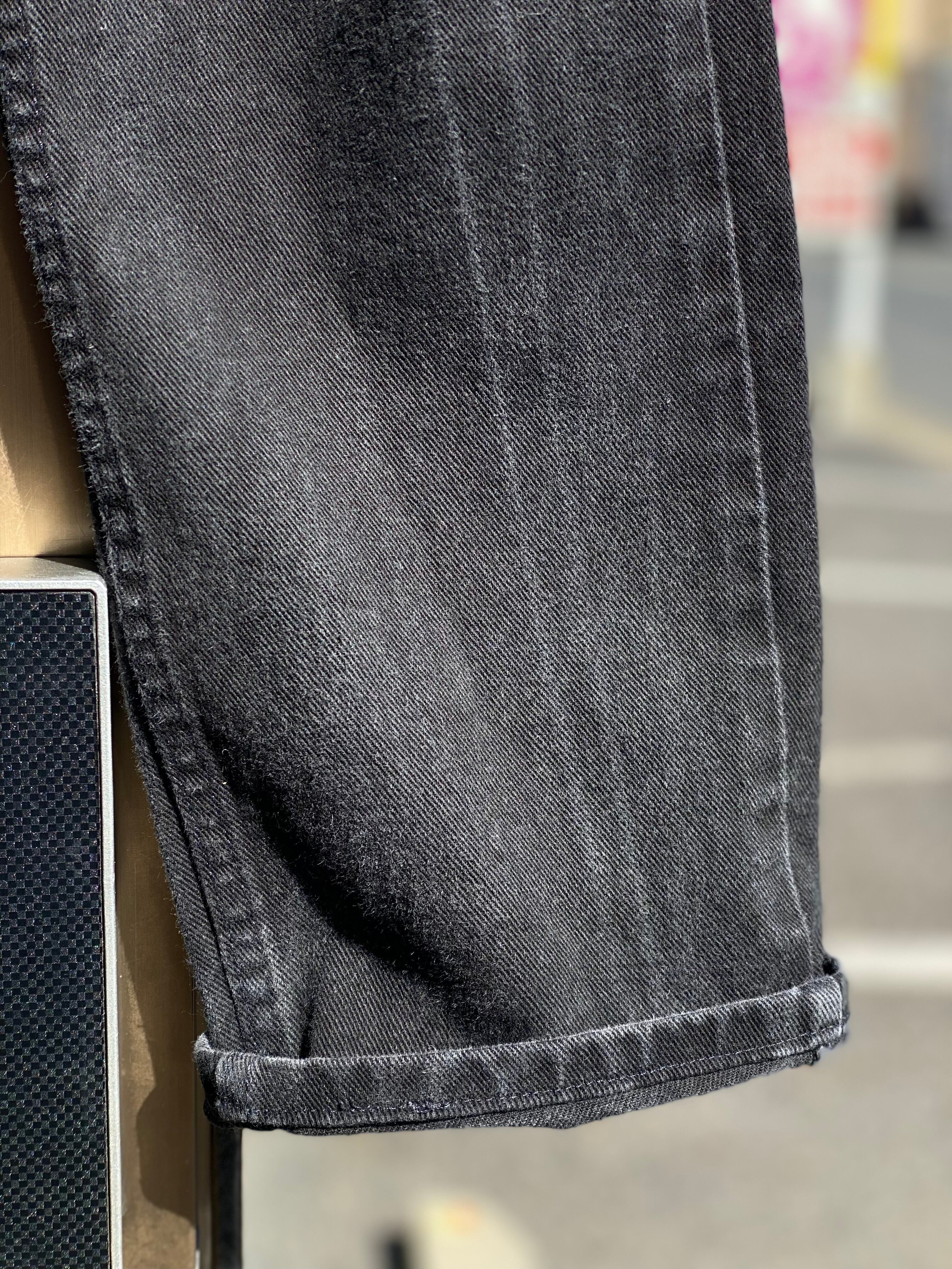ブラックデニムらしい、ややグレーがかった色落ちが既に始まっておりこれからドンドン良い色に育ってくれそうな状態です。