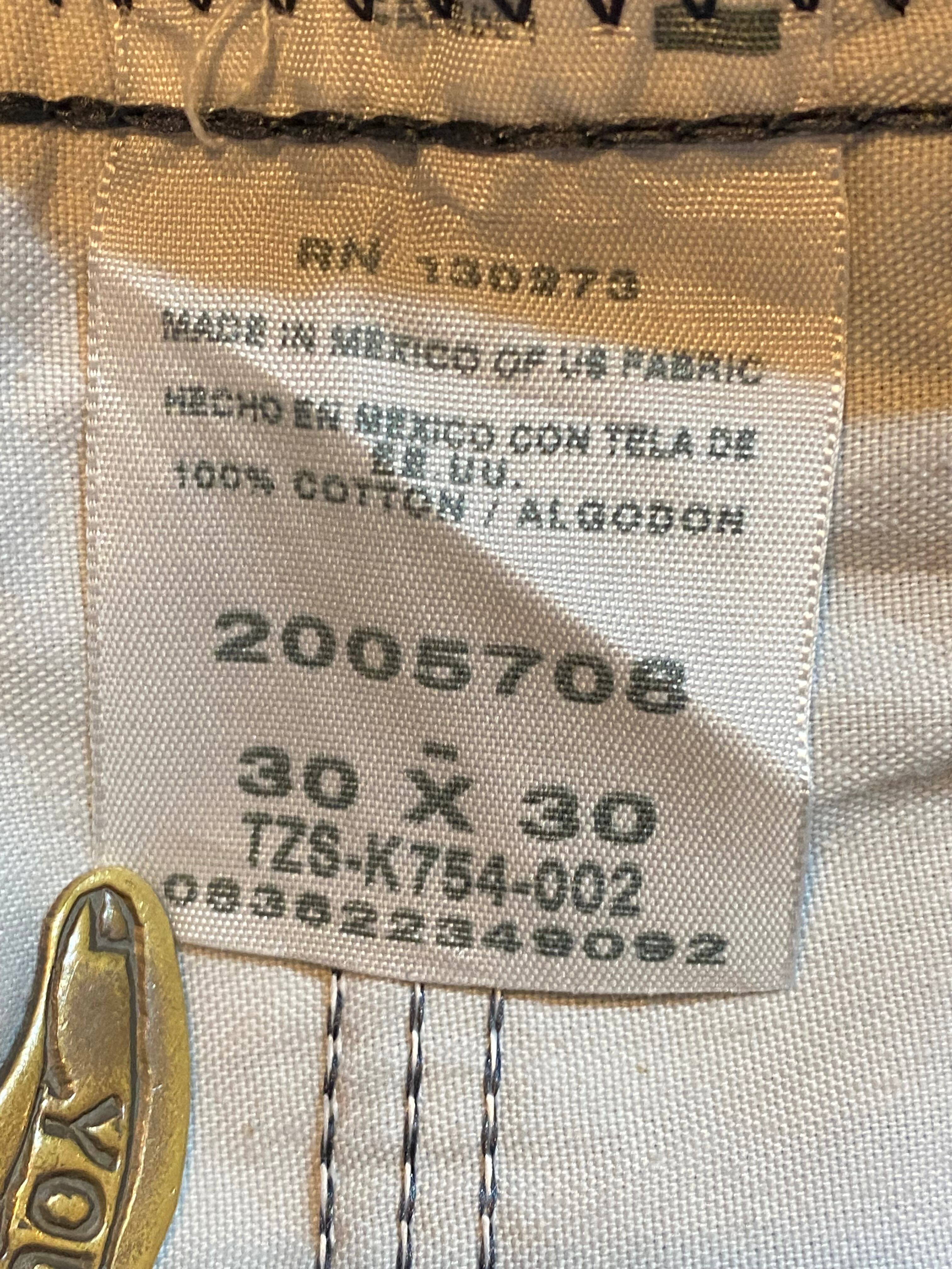 前後共にモモから裾にかけて縦の色落ちがあり、恐らくカウボーイがジーンズにフォーマルな装いをもたせる為にやっていたセンタープレスを入れていたのではないでしょうか?