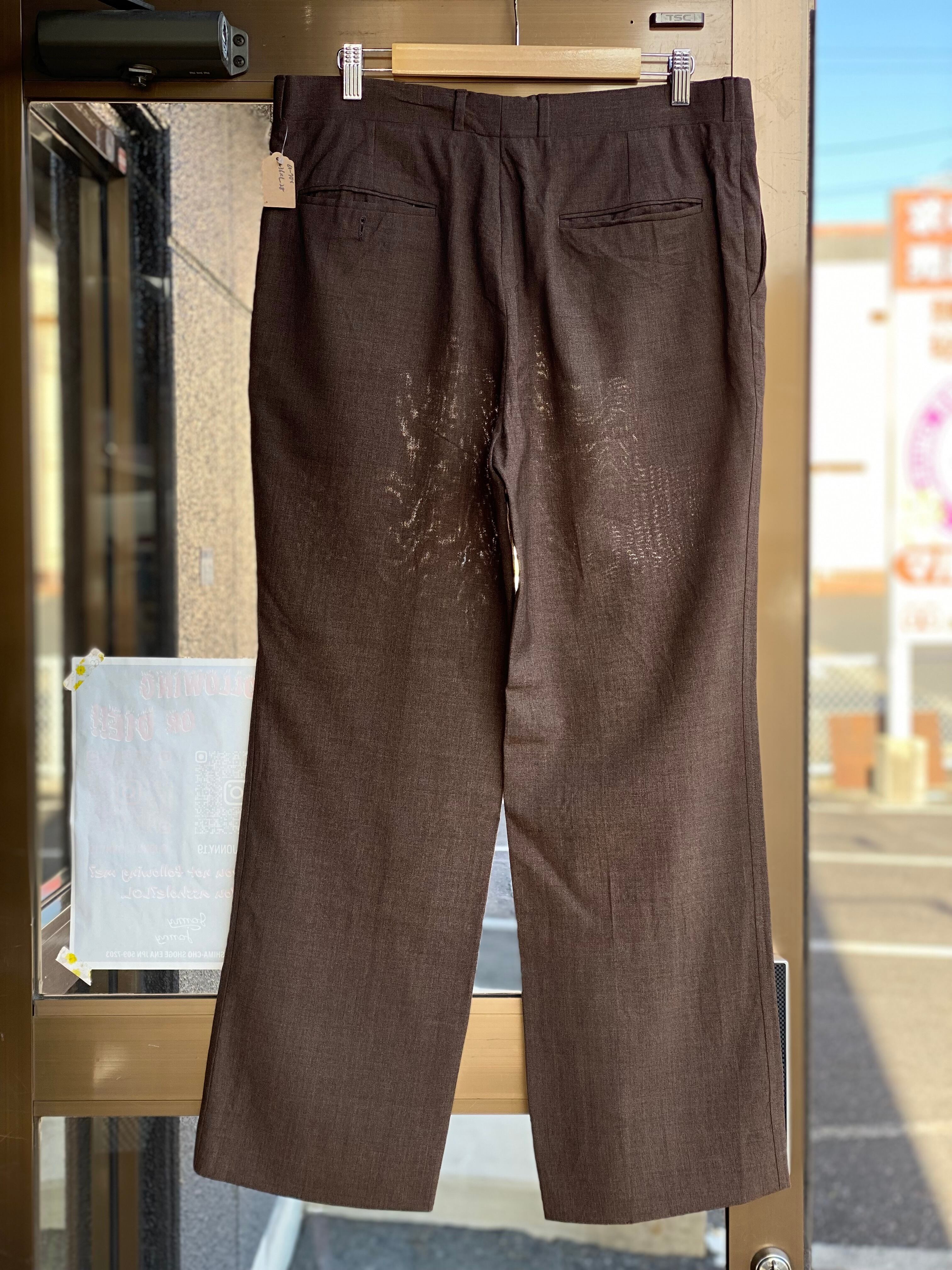 60~70's Vintage CORBIN LTD. サマーウールスラックス W36×L28 ブラウン サマースラックス アルミジッパー アルミジップ TALON ジップ TALONジッパー ワイドスラックス ワイドパンツ ダークブラウン ヴィンテージスラックス ビンテージスラックス トラウザーズ 透け感 通気性
