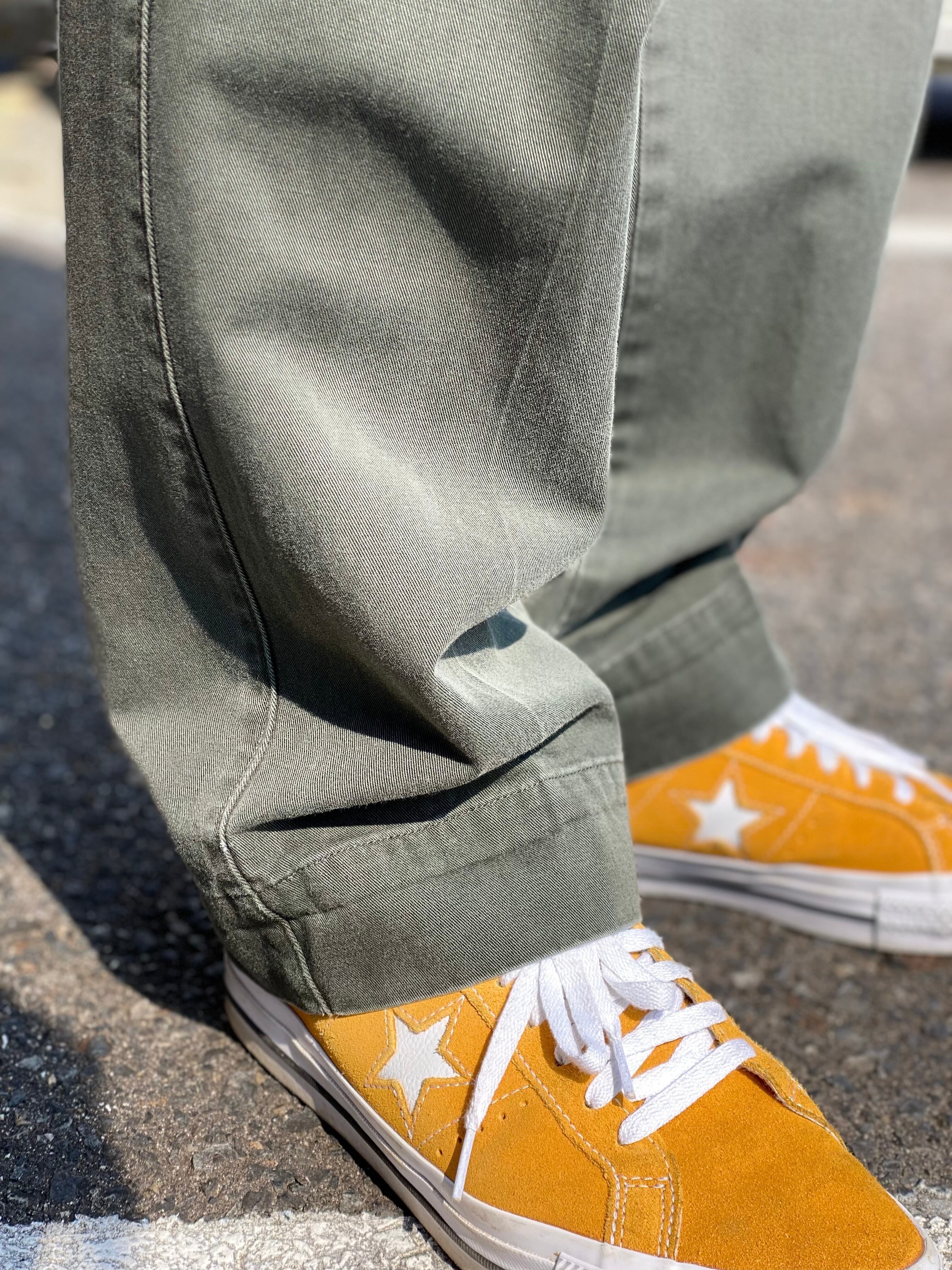 腰〜モモにかけてはゆとりがあり裾に向かってテーパードの効いた、とても綺麗なシルエットのチノパンです。