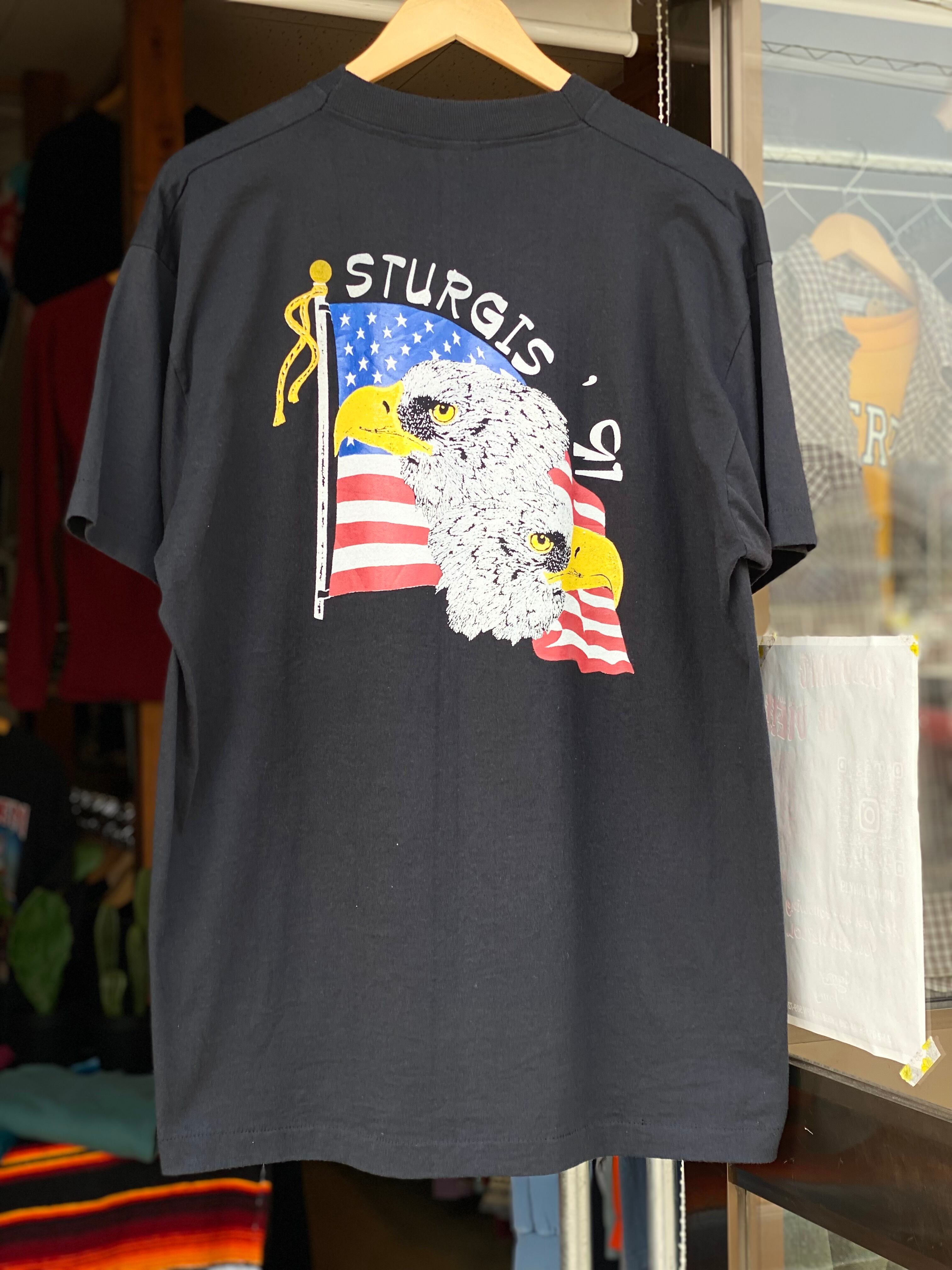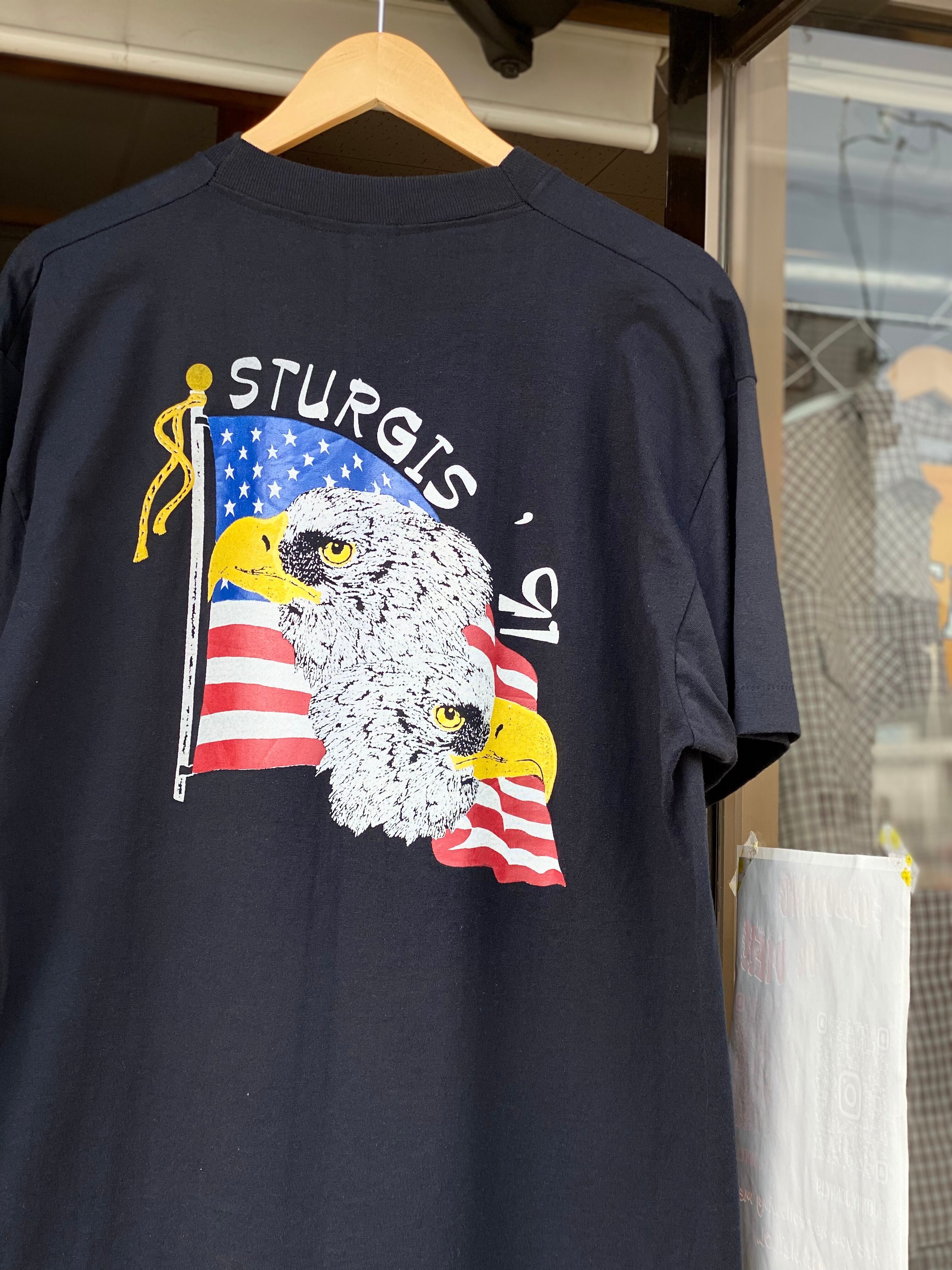 バックプリントにはSTURGIS '91の文字と風にたなびくアメリカ国旗、更に2頭の白頭鷲がデザインされています。