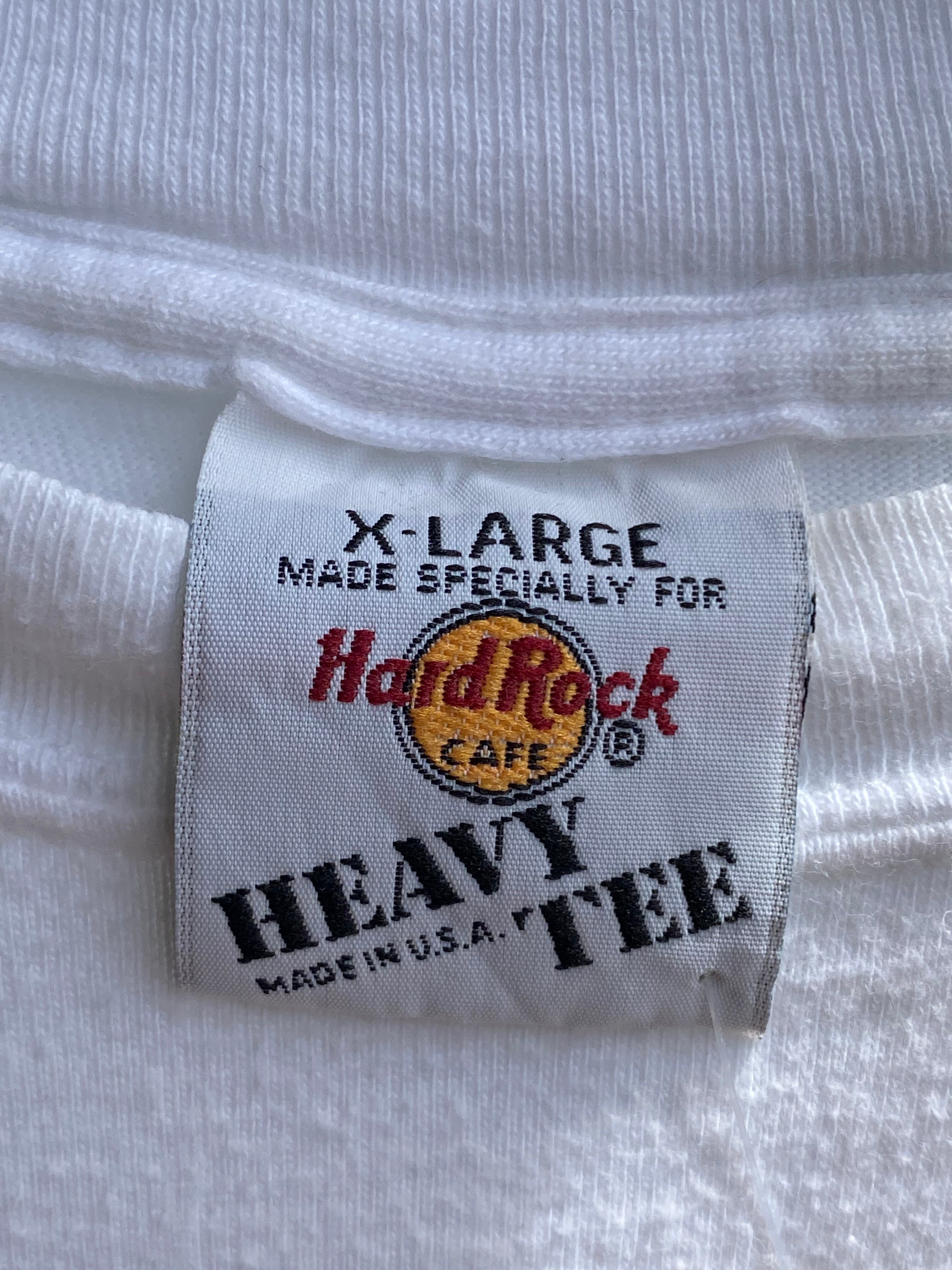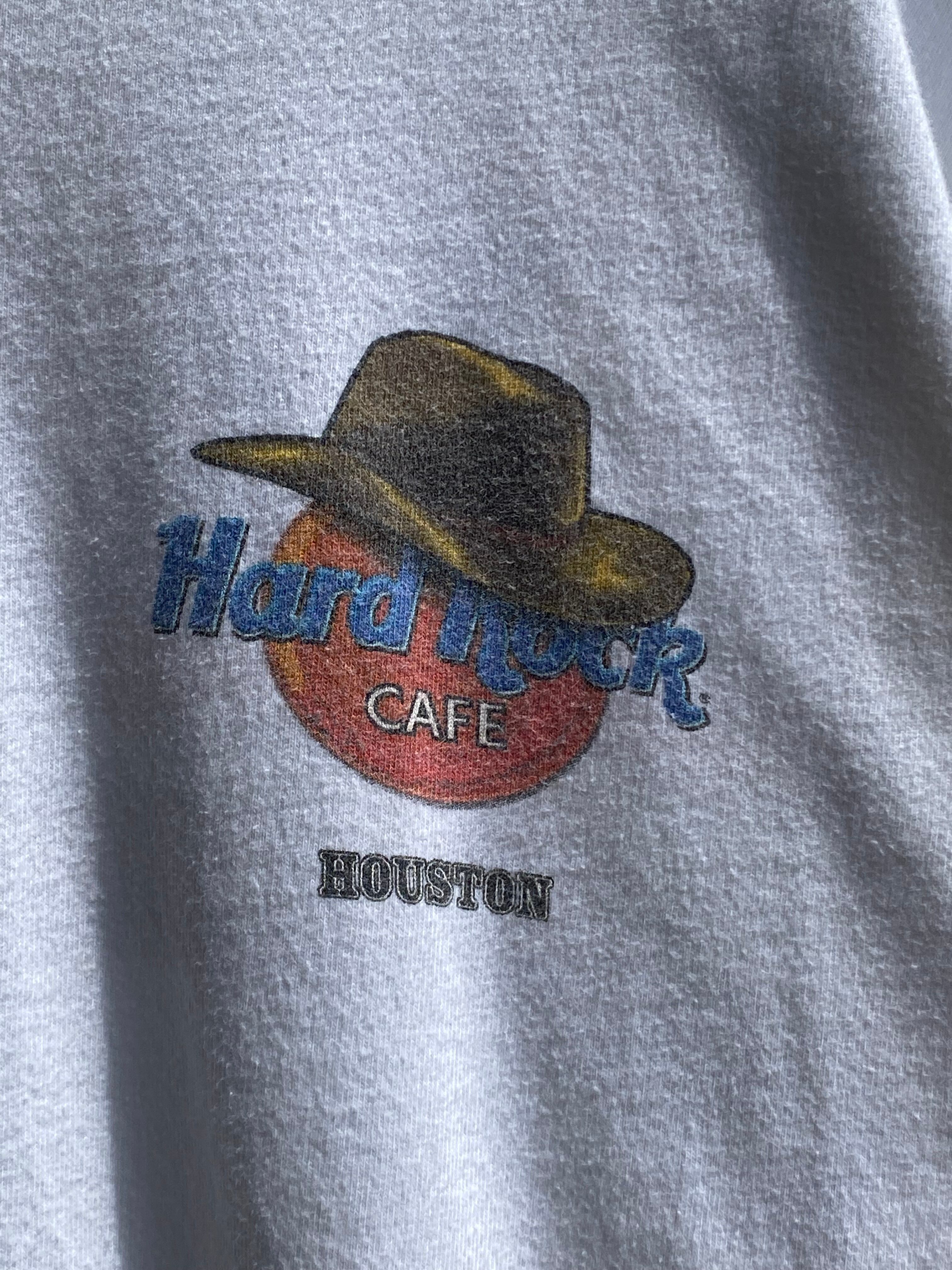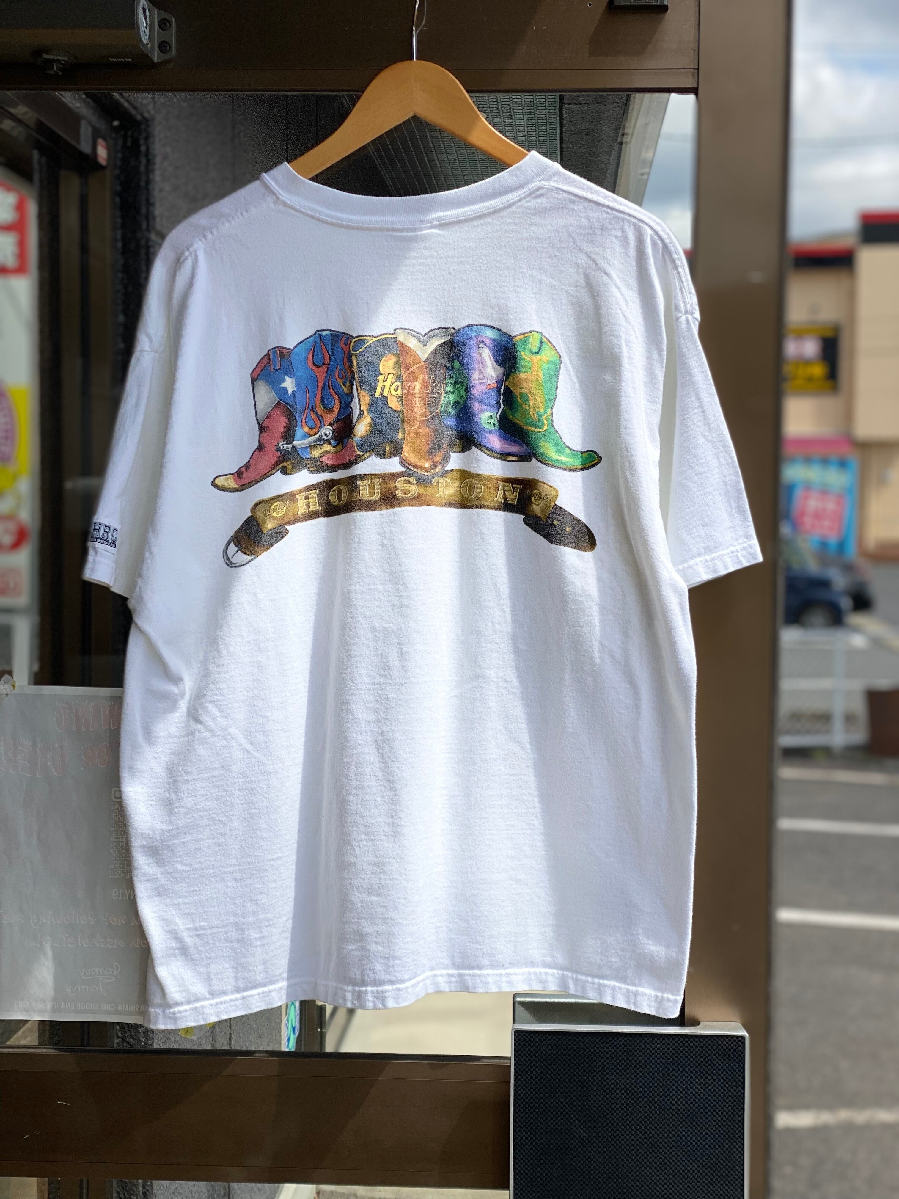 90~00's Hard Rock CAFE HOUSTON 半袖Tシャツ XLサイズ 白Tシャツ HEAVY TEE ハードロックカフェ ヒューストン テンガロンハット カウボーイハット ウエスタンブーツ トニーラマ アメリカ製 MADE IN U.S.A. HRC 古着 アメカジ Western