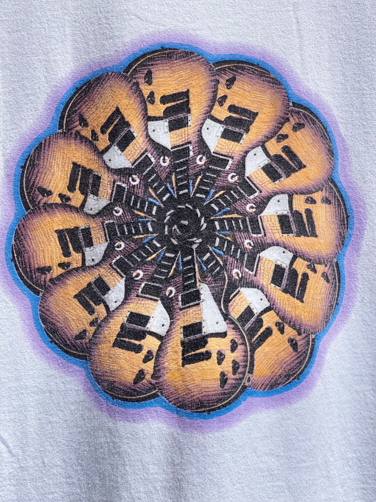 バックプリントは、恐らくGibsonの名機"Les Paul"が円形に並んだデザイン。