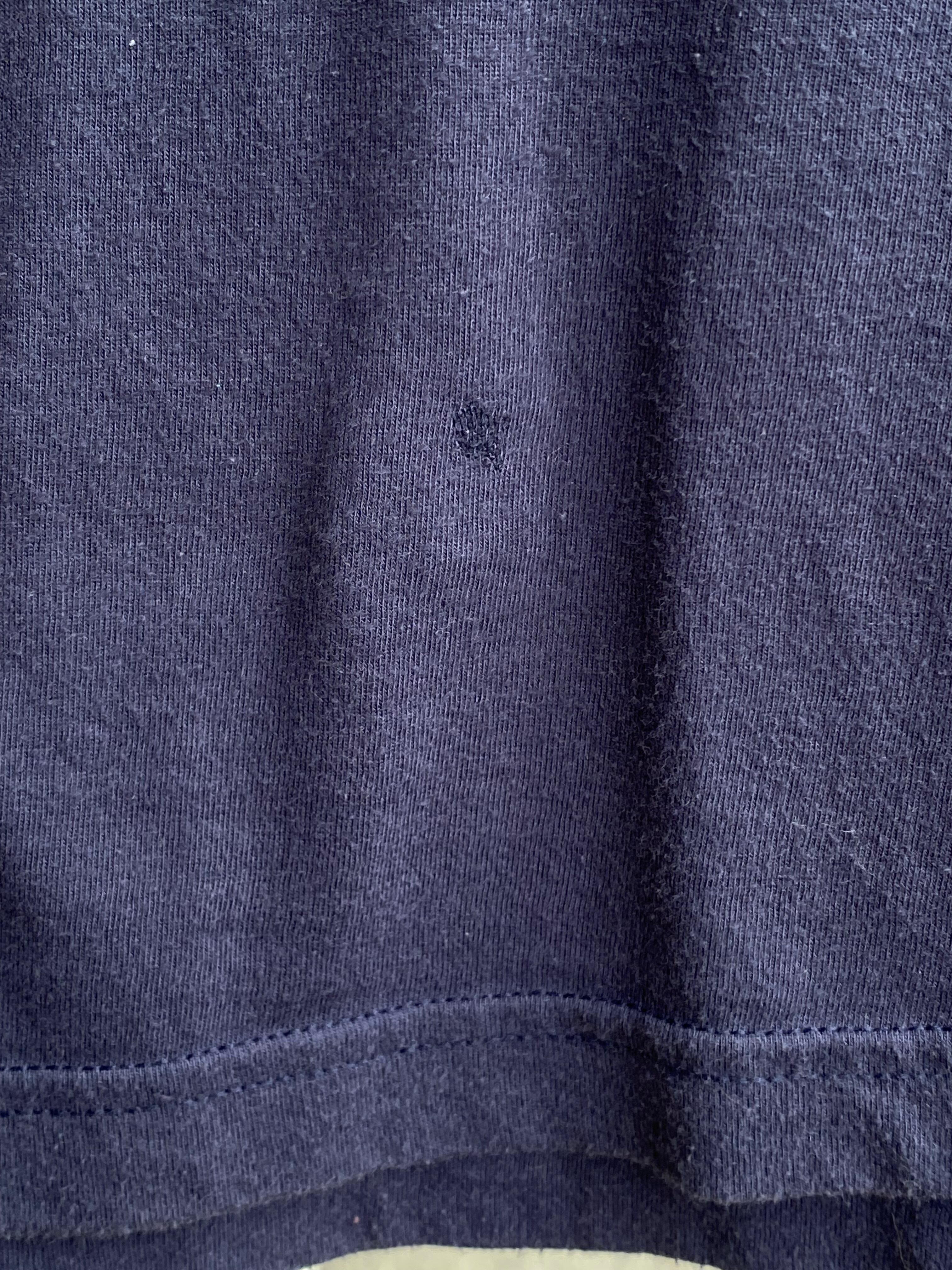 フロントに2箇所リペアの跡、全体的な使用感、各リブに若干の汚れ、プリントの割れ等がありますが着用には支障の無いレベルです。
