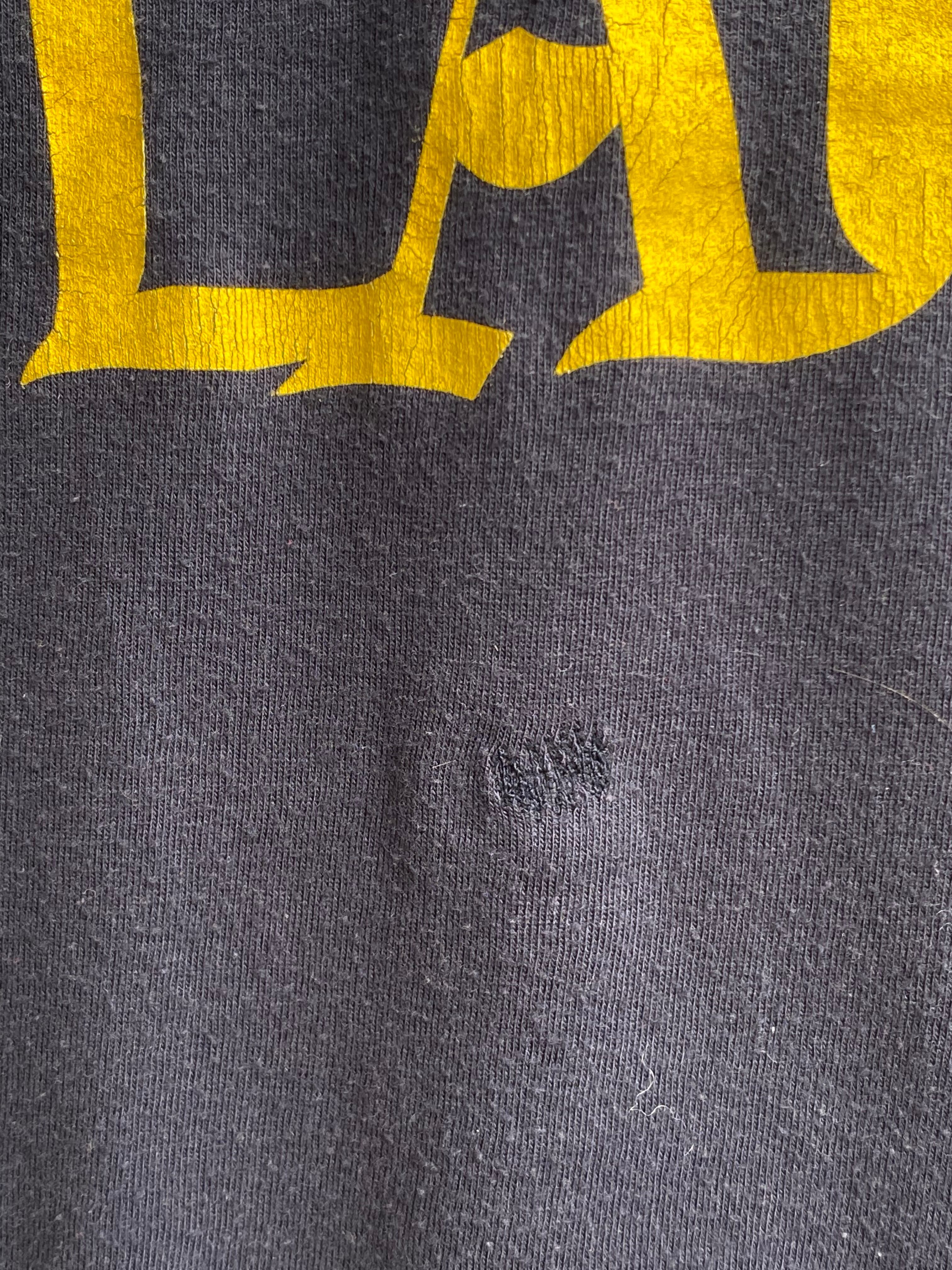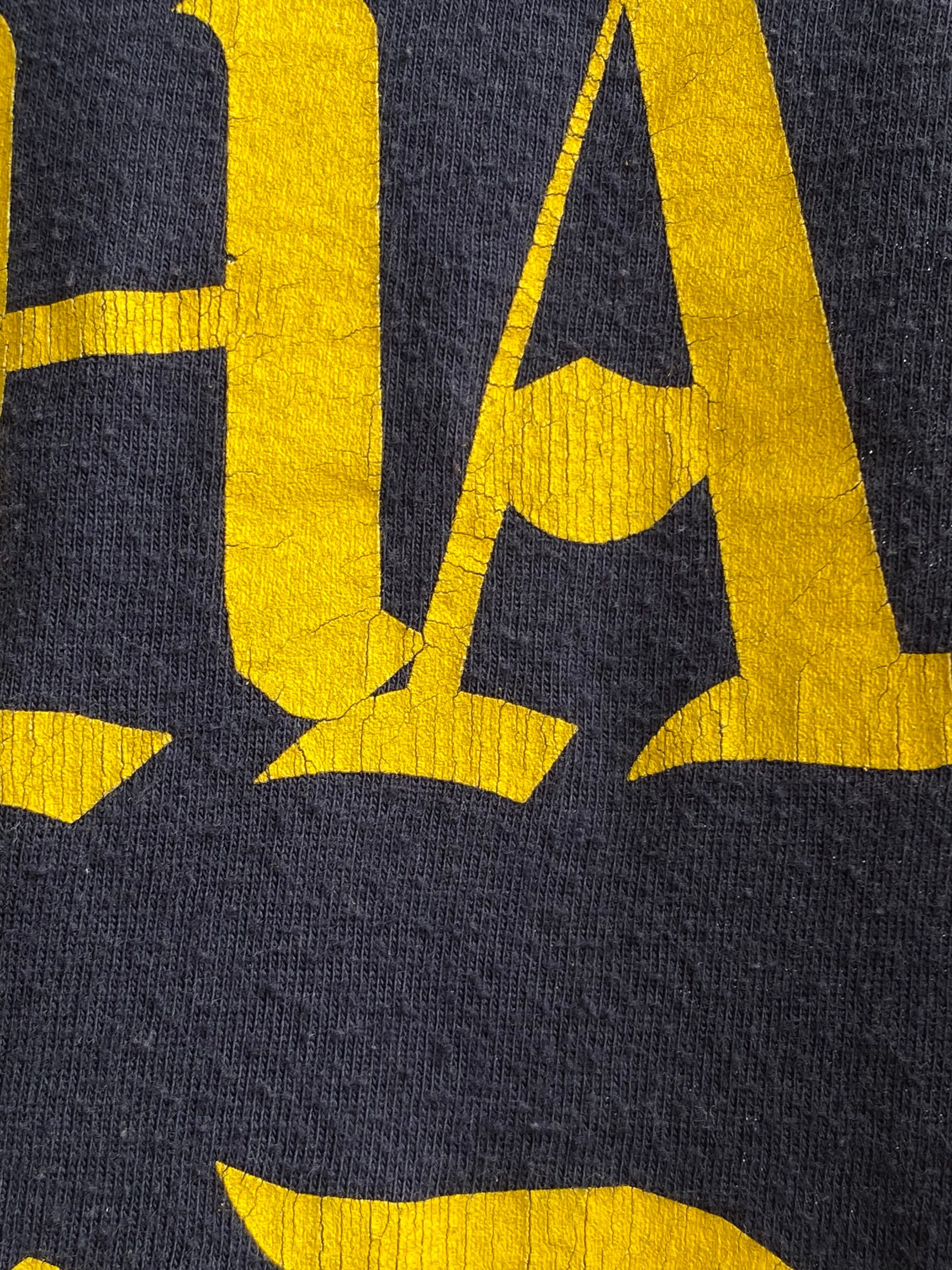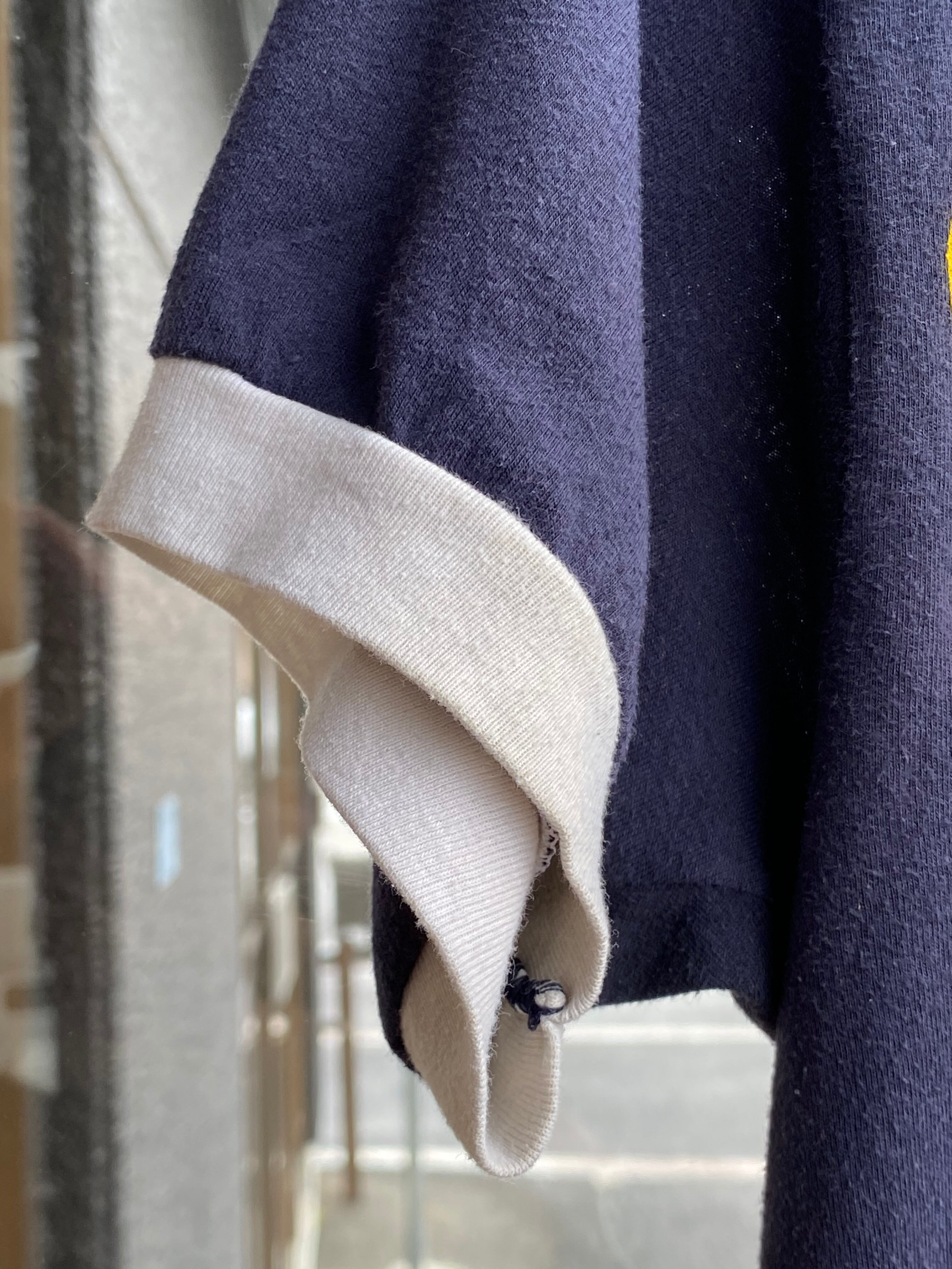ネイビーボディ×イエロープリントという良配色にて、オールドイングリッシュ調のフォントでバンド名がプリントされています。