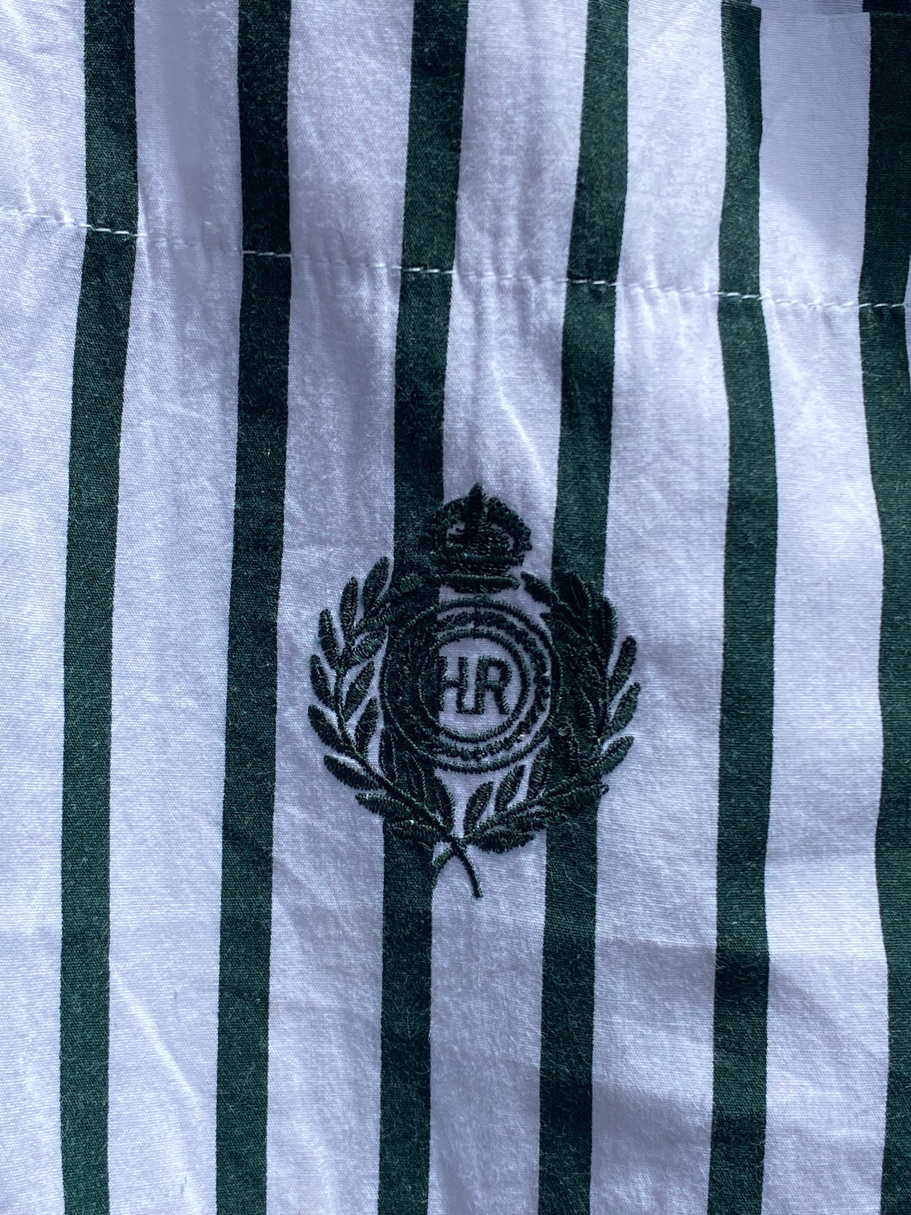 90~00's Huntington Ridge 長袖ストライプシャツ レディースXLサイズ程 比翼ボタン ボタンフライ フォーマル ハンティントンリッジ グリーン ドレスシャツ カジュアルシャツ 長袖シャツ 春 女性 ワークシャツ ユニフォーム 制服 ボーダー