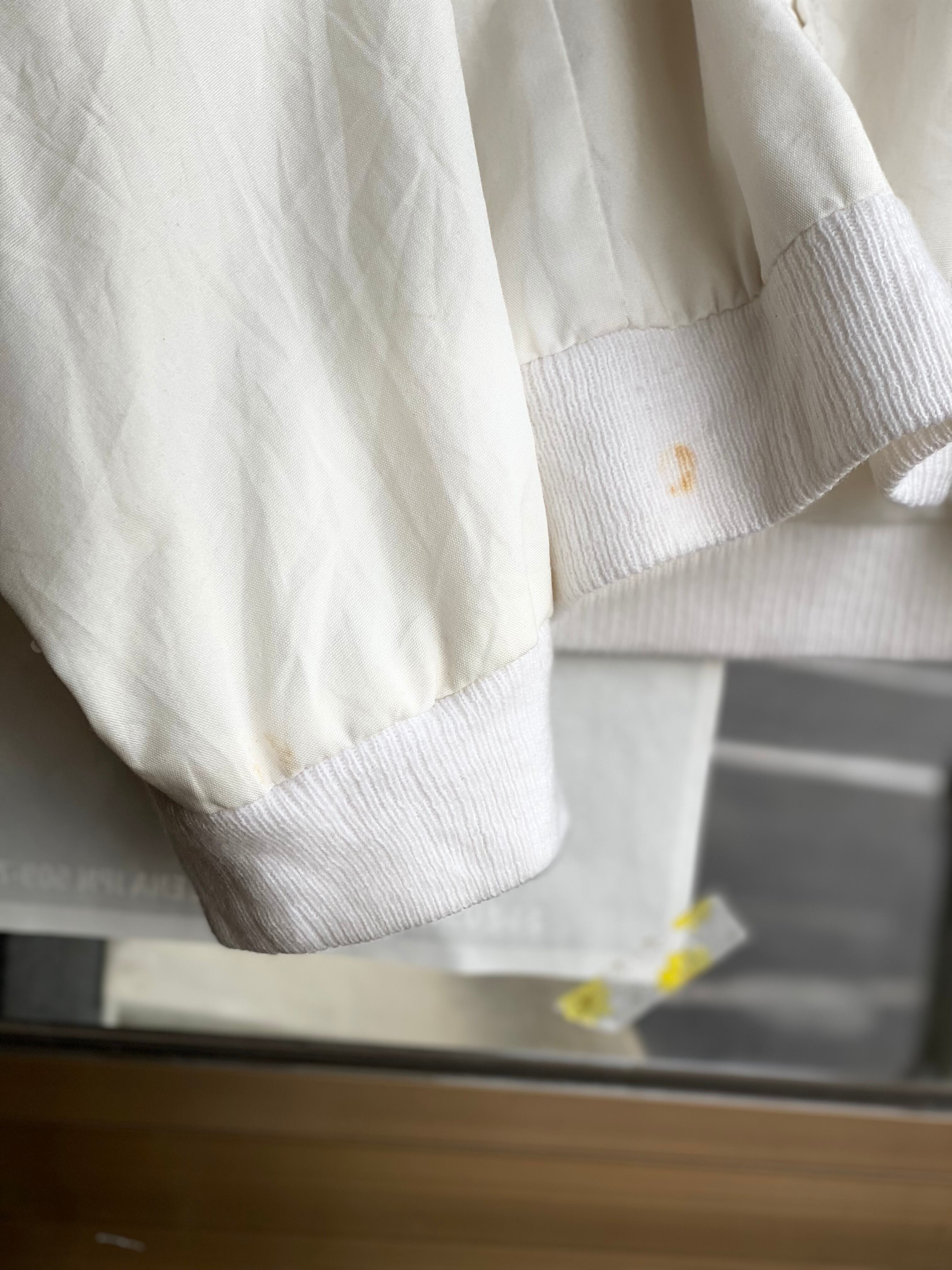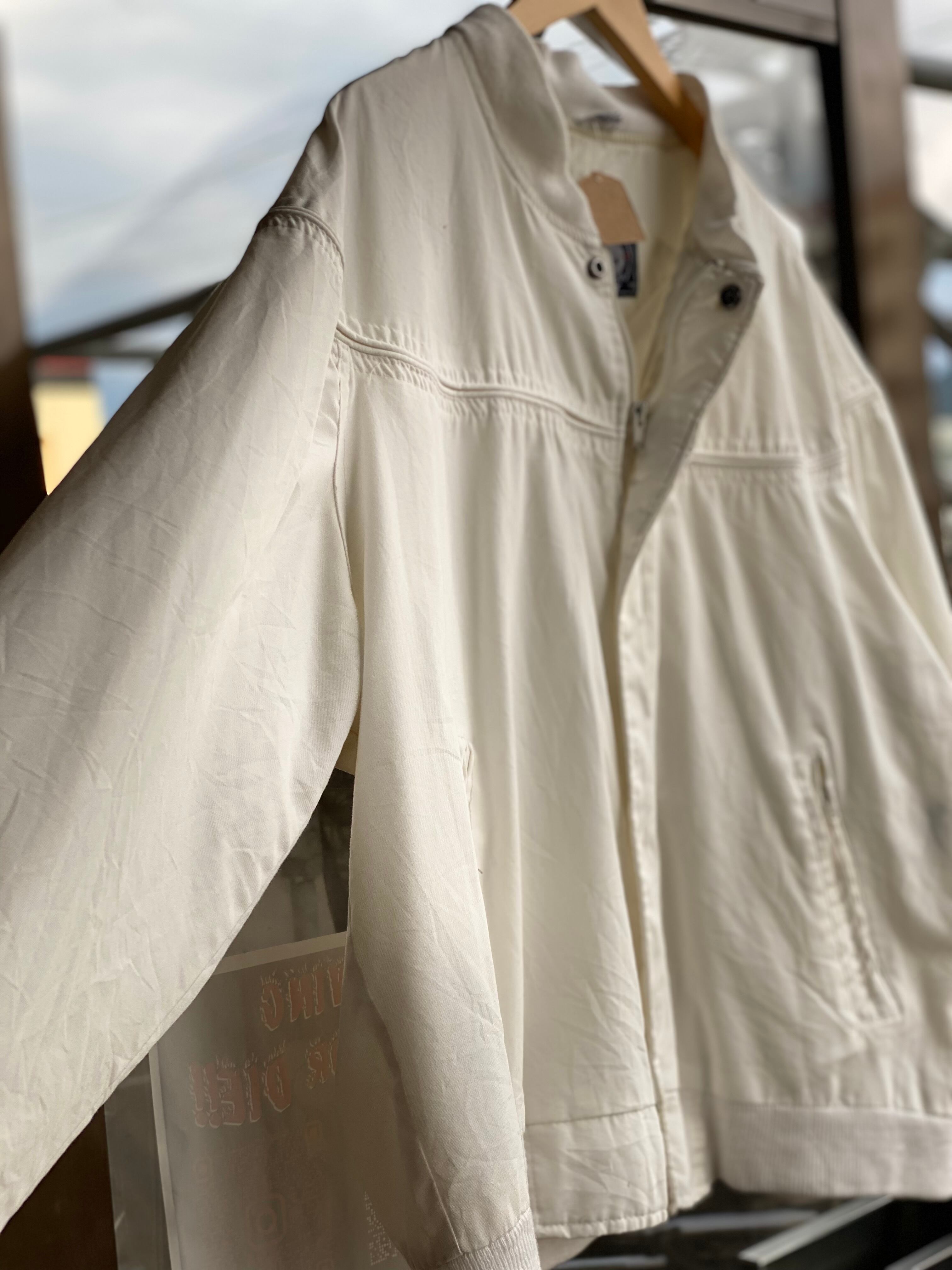 こちらはオフホワイトカラーのダービージャケットで、不良達に愛されたモノが清廉さを感じる白色というのがなんとも皮肉たっぷりで堪りませんね!