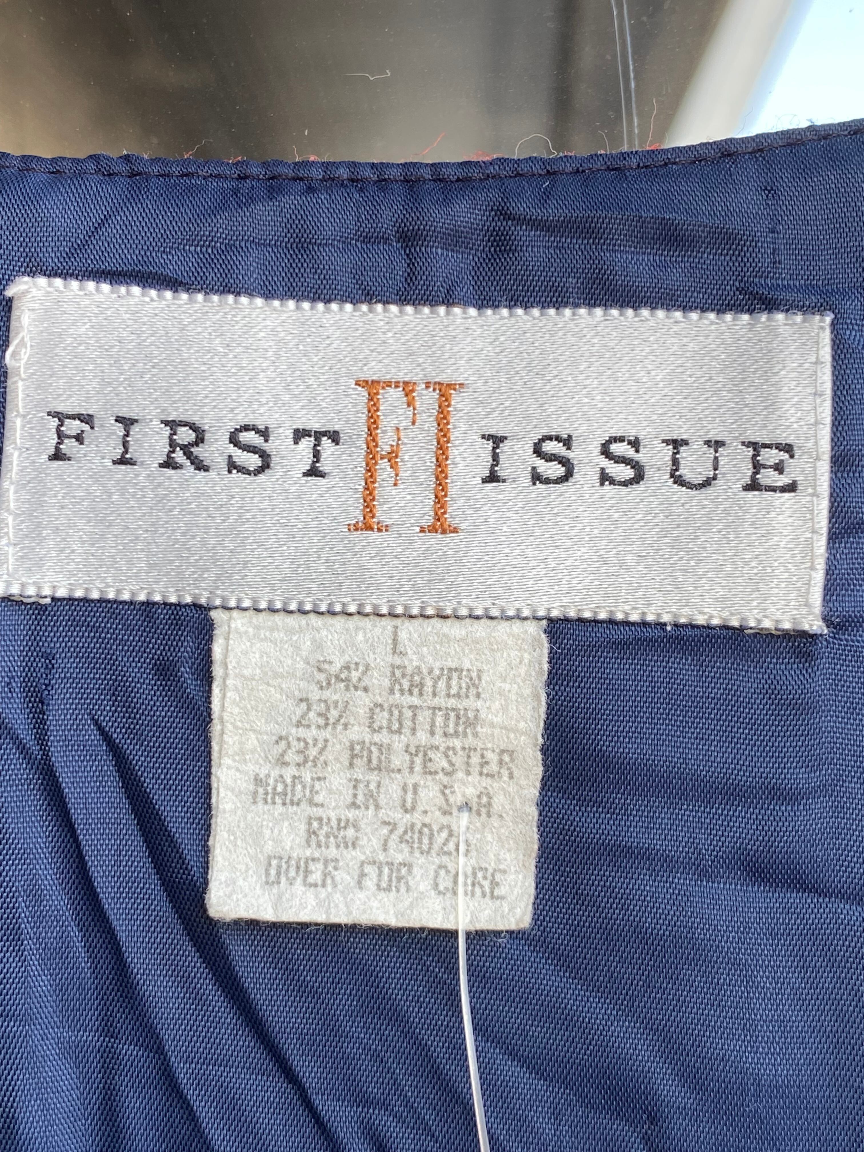 おそらく80~90年代頃と思しきボーダー柄のラグ調のファブリックが使用されたベストになります。