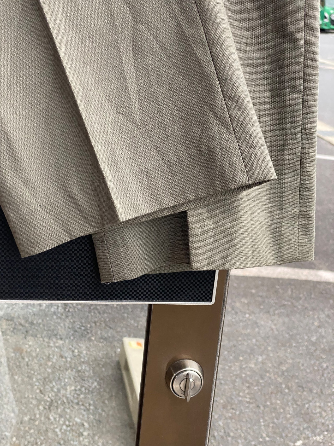 スラックスながら素材はコットンポリの混紡というワークパンツ系でよく見る珍しい配合です。トラウザーの系統かもしれませんね。