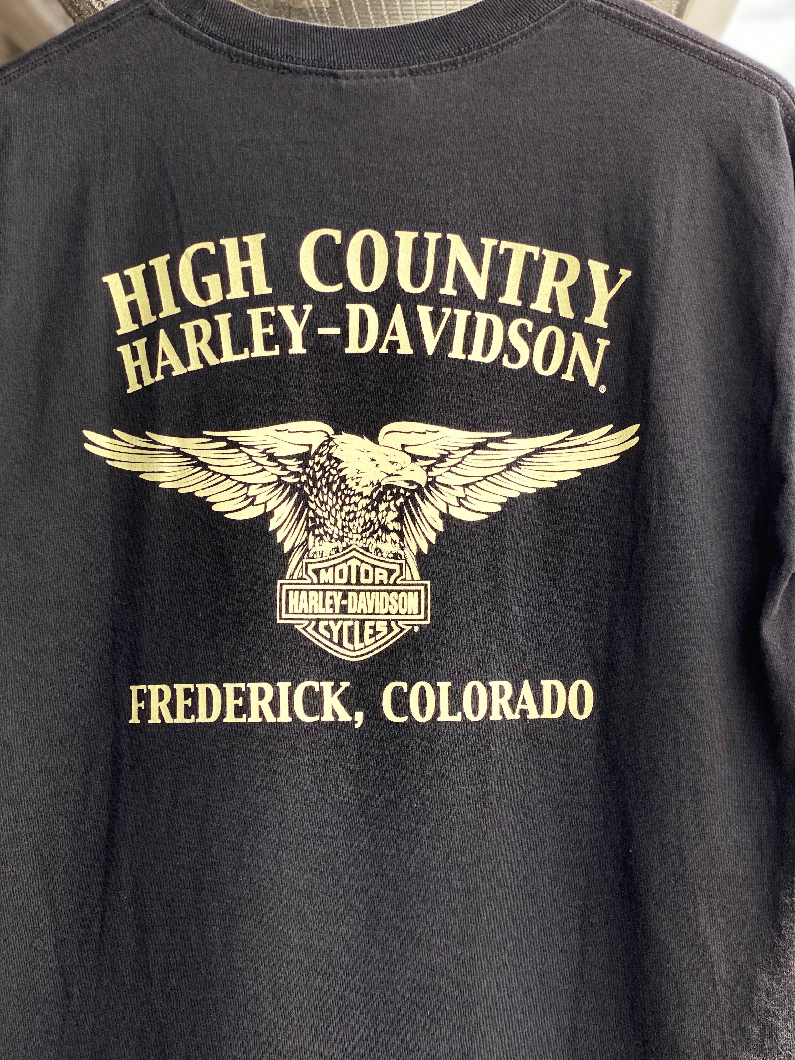 "HIGH COUNTRY HARLEY-DAVIDSON"というハーレーダビッドソンのオフィシャルディーラーのモノで、ワイオミング州シャイアンとコロラド州フレデリックの2つの店舗があるそうですが、こちらはコロラド州フレデリックの店舗のモノのようです。