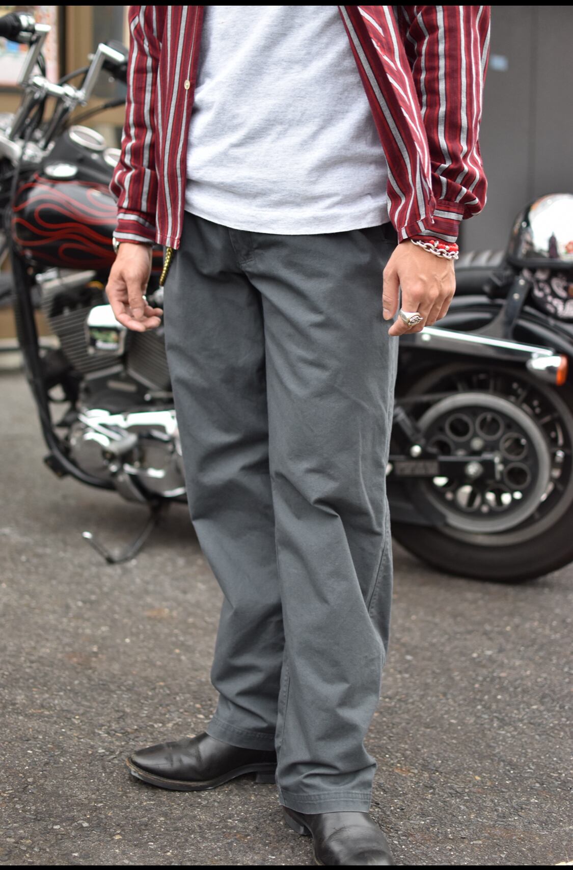 アメカジでもバイカーでもワークでもルードでもちょっとキレイめでも、なんでもイケるオールラウンダーとなっております。
