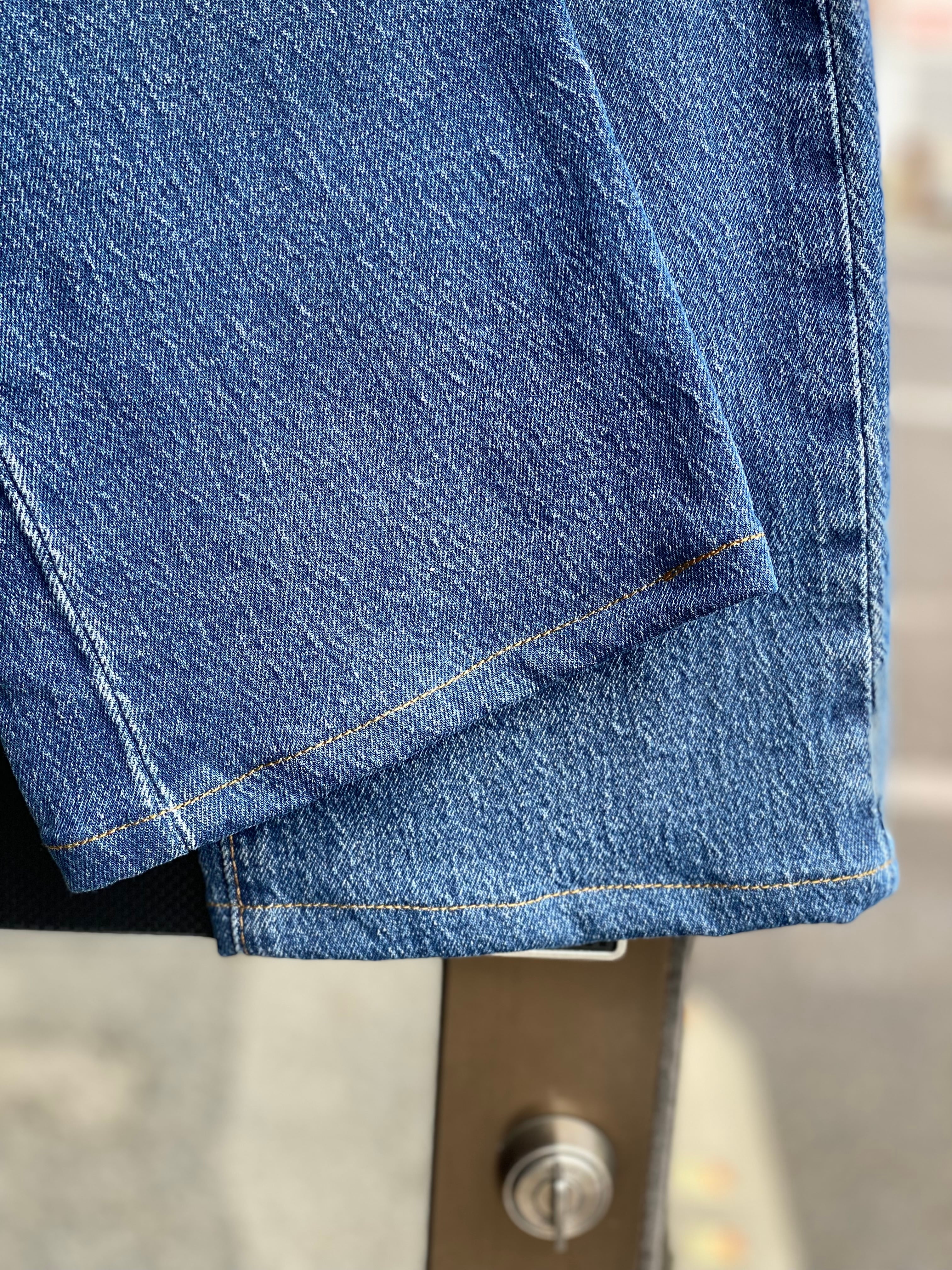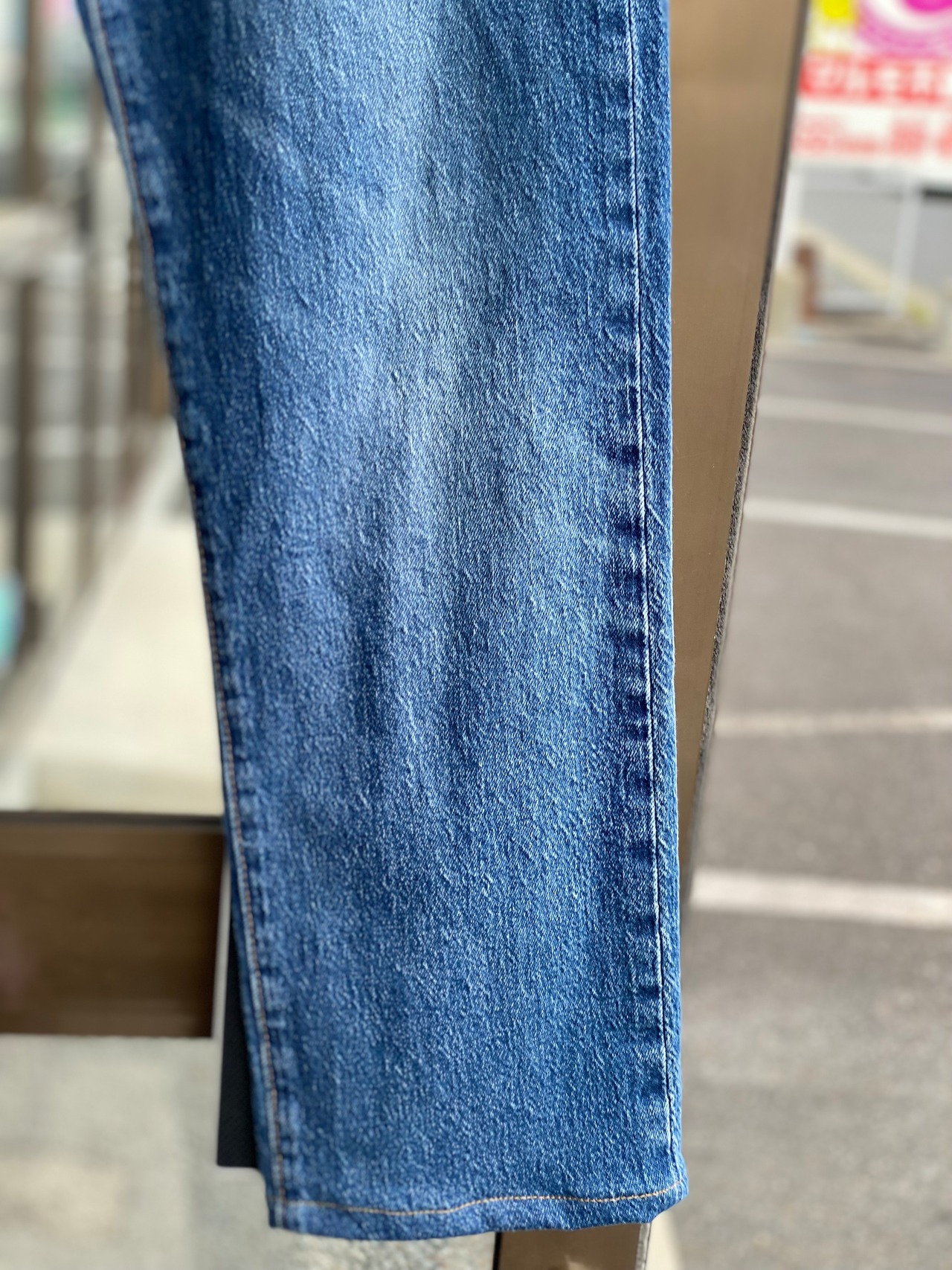 ストレッチ素材を採用し、履き心地は501とは思えないほど楽で動きやすく、股上が深くテーパードもほぼかかっておらず、足元までストンと落ちるストレートフィットです。