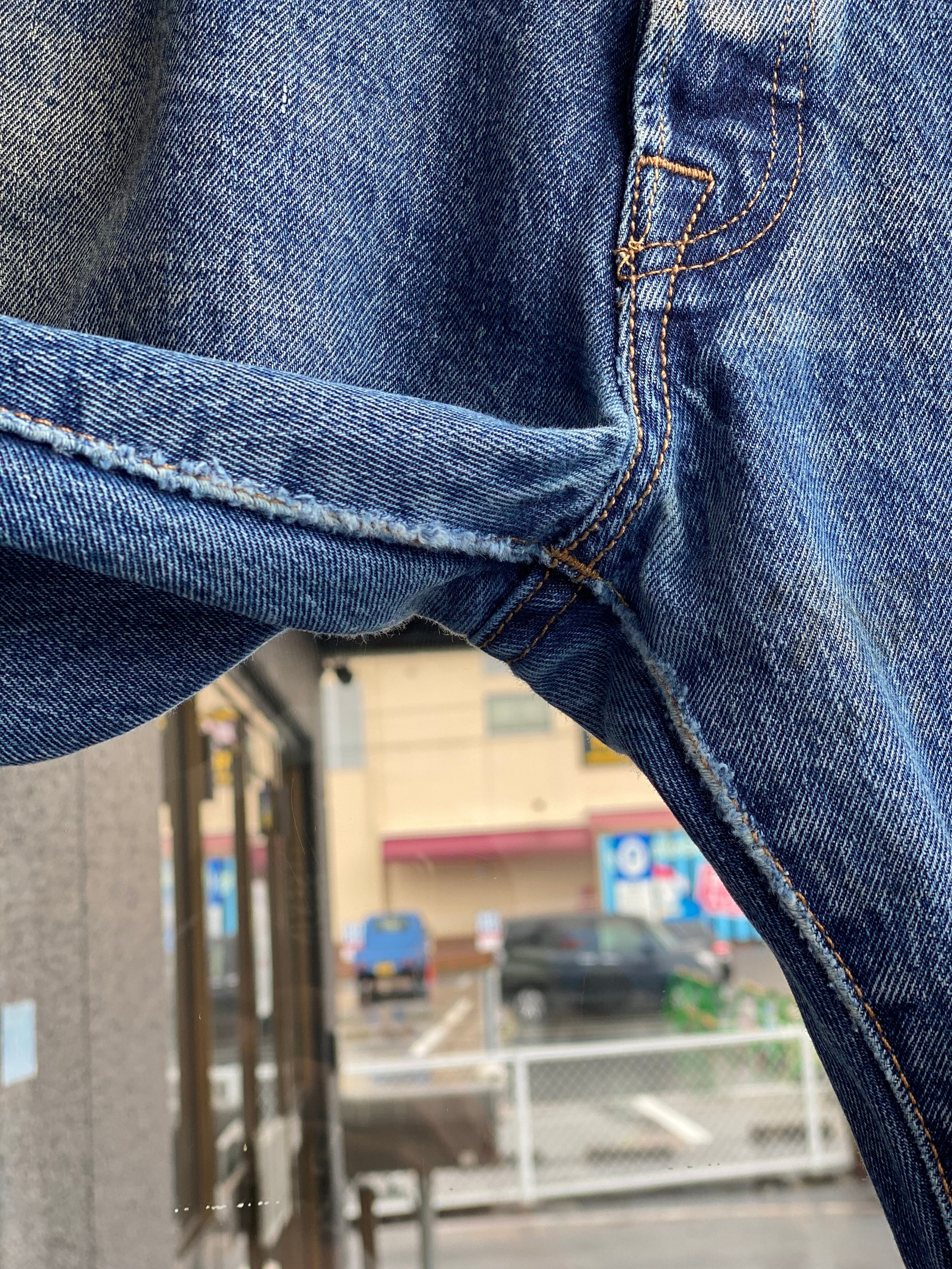 裾のパッカリングも、チェーンステッチじゃないのにこの捻れにこの色落ち!