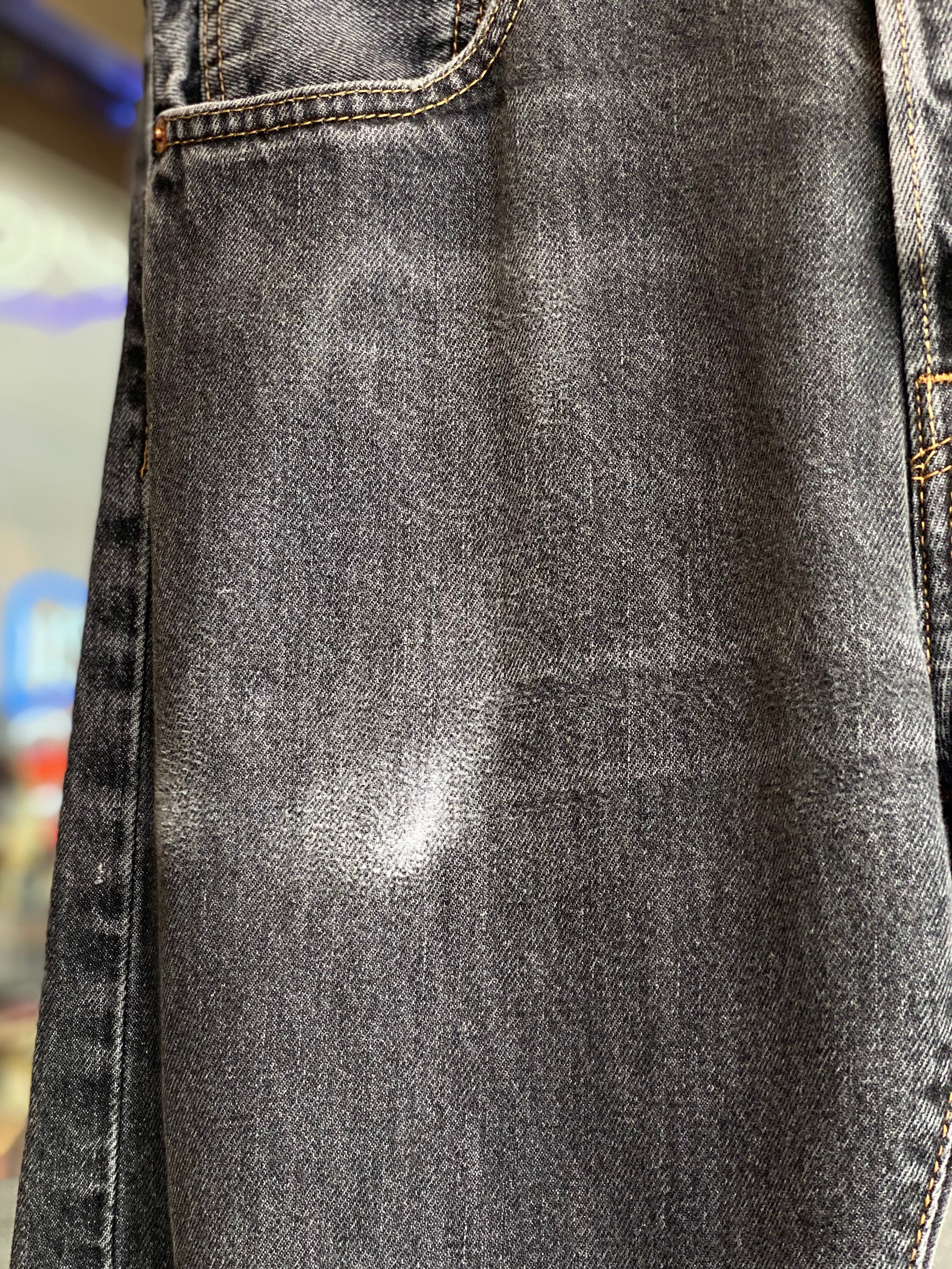先染めブラックで、テーパードカスタムが施された古着ならではの変わり種な逸品です。