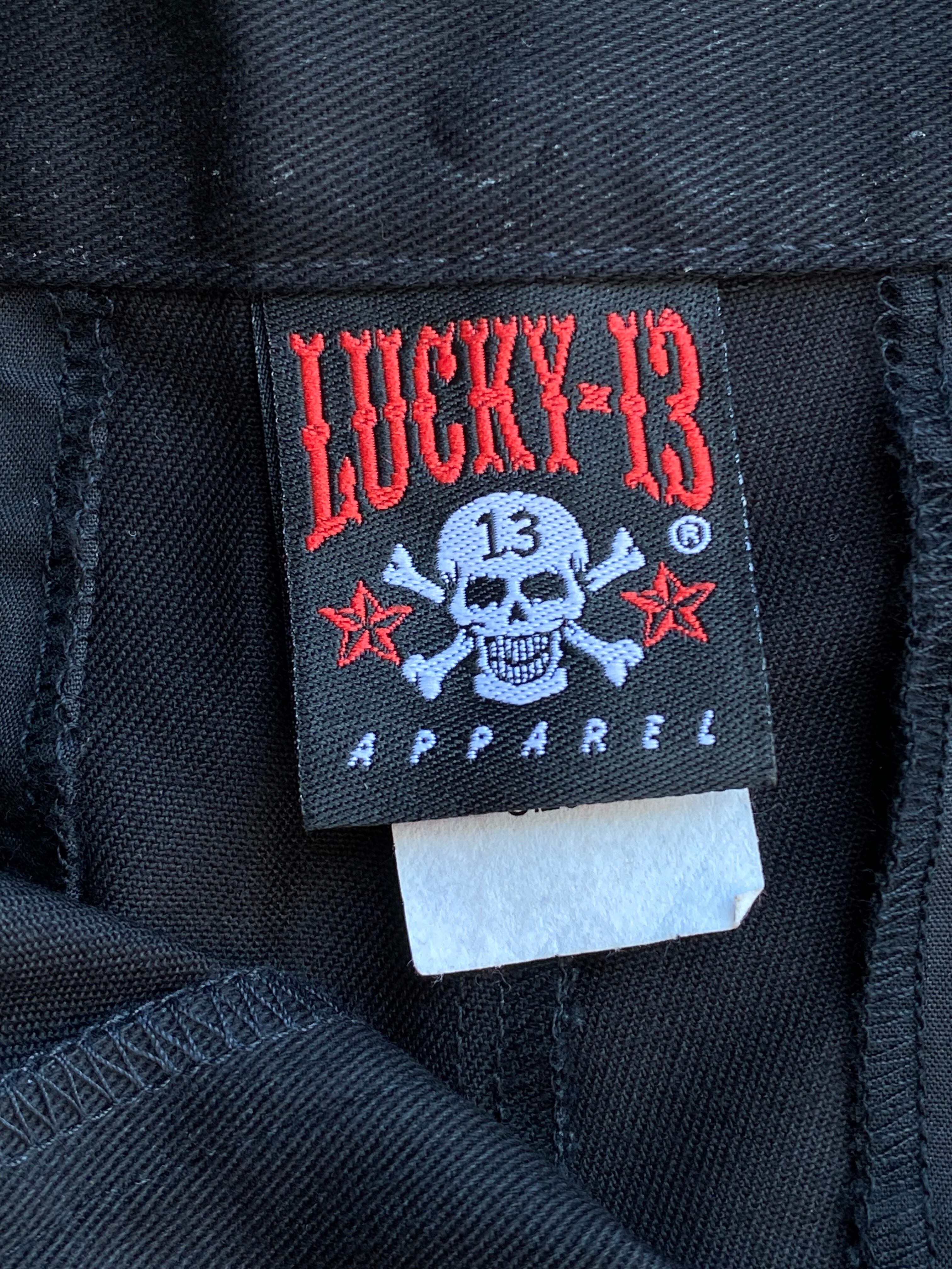 LUCKY 13のパンツ類ですとプリントや刺繍の入るものをよく目にしますが、コチラはソリッド(無地)のタイプ。