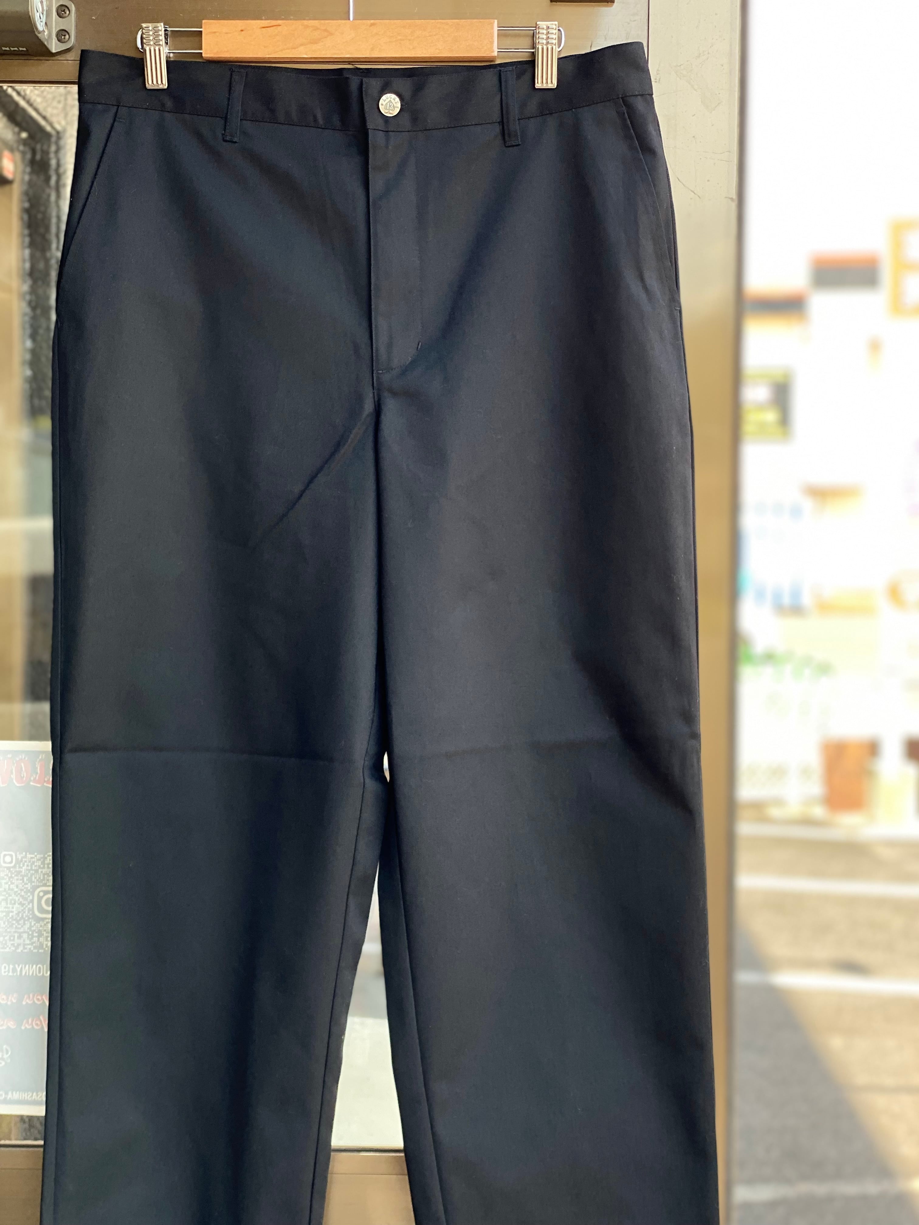 スラッシュポケットでフロントはジッパーフライ、モモ周りにゆとりがあり裾に向かって少しだけテーパードのかかるとても綺麗なシルエットをしています!