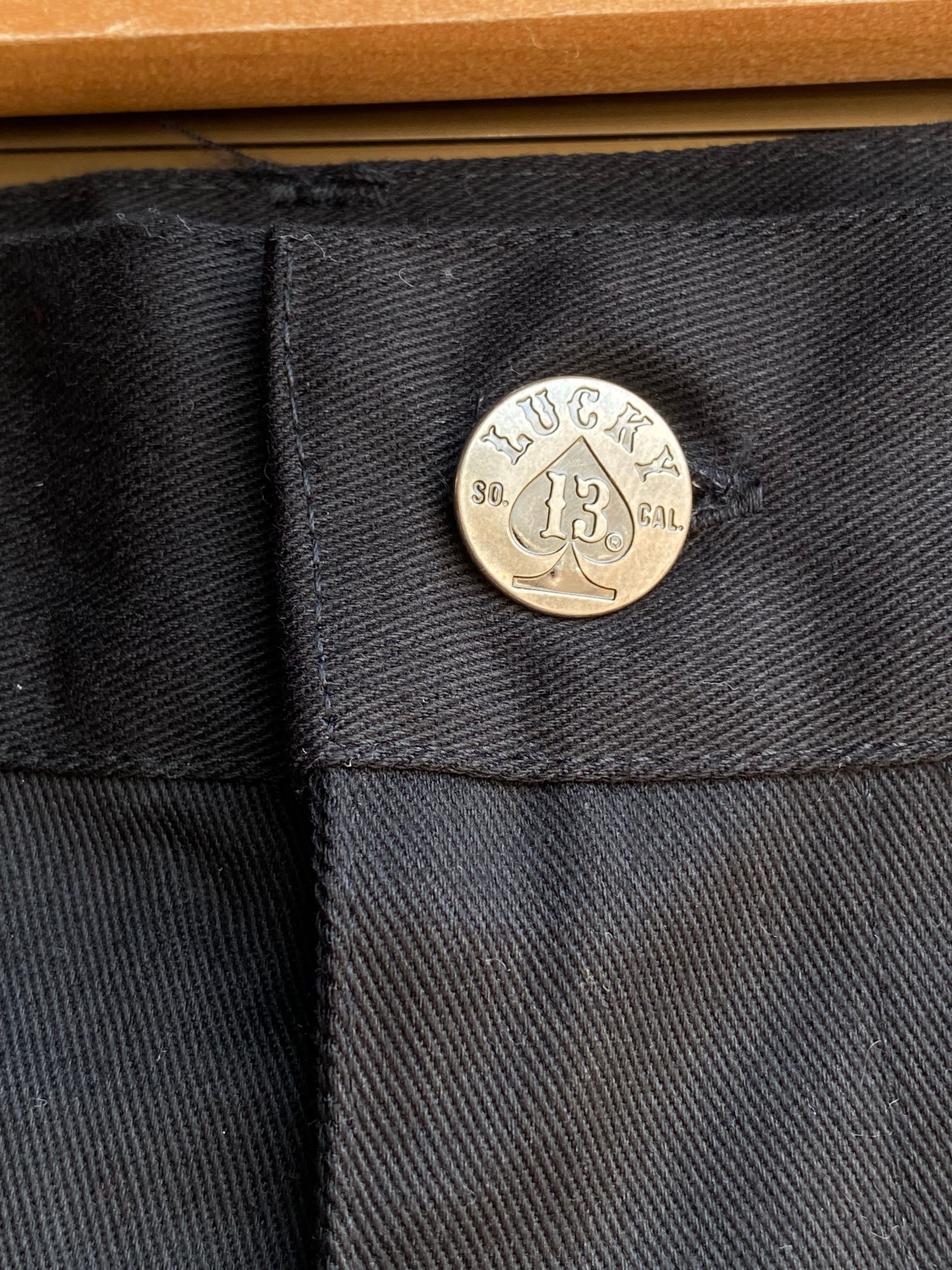 知る人ぞ知る、ガレージから始まったアンダーグラウンドなブランド"LUCKY 13"より、ブラックのチノトラウザーズがデッドストックにて2サイズ入荷しました!