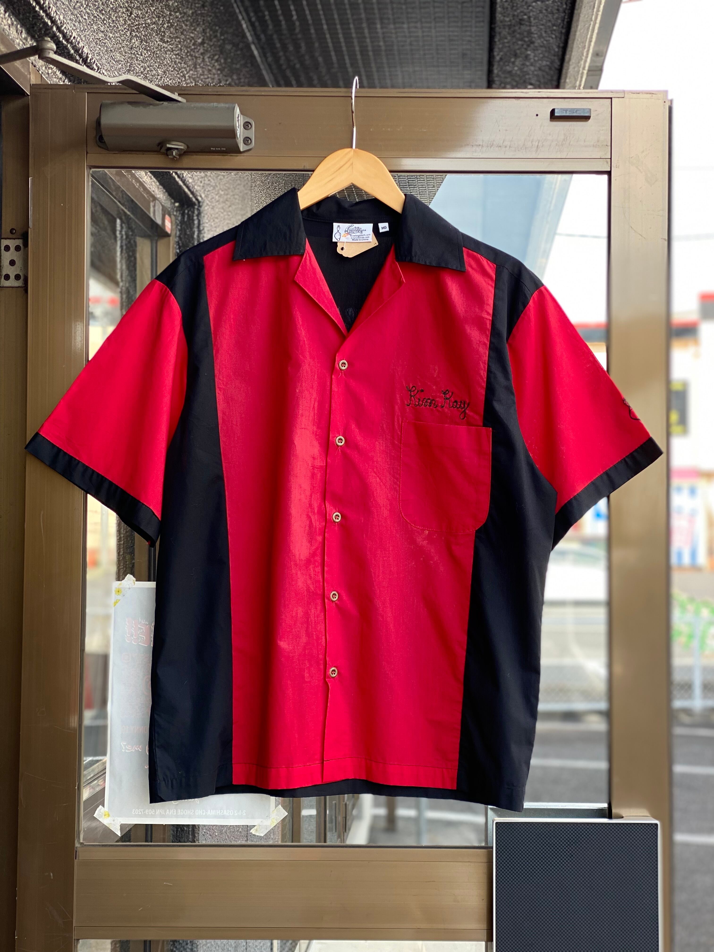 バックプリントが施されたレッド/ブラックの2トーンによる切替の半袖ボウリングシャツになります!