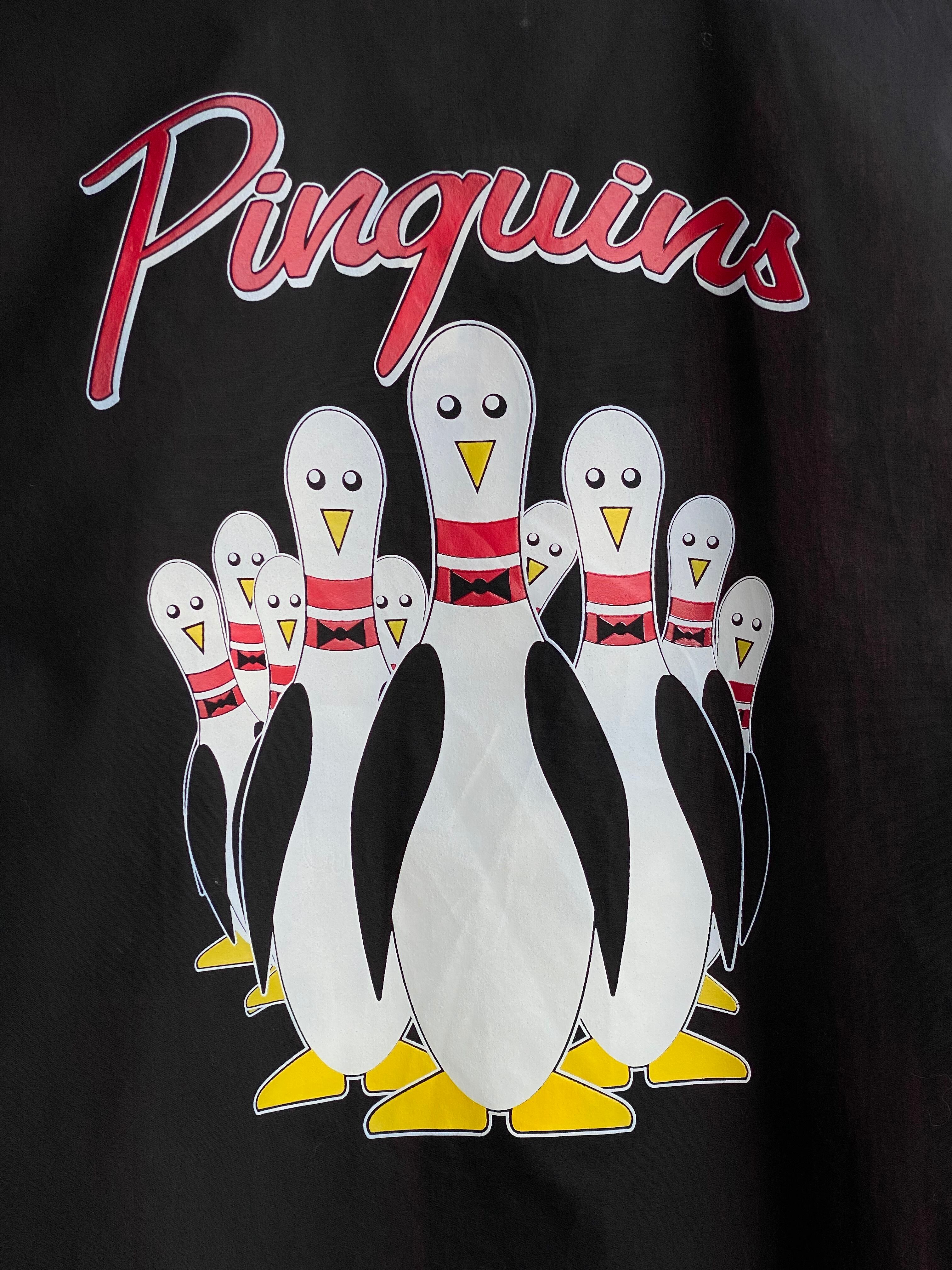 レッド/ブラックで男クサイ配色ですが、バックプリントのPinguinsがそれを中和してくれ、老若男女問わず着られるカッコカワイイボウリングシャツとなっております!