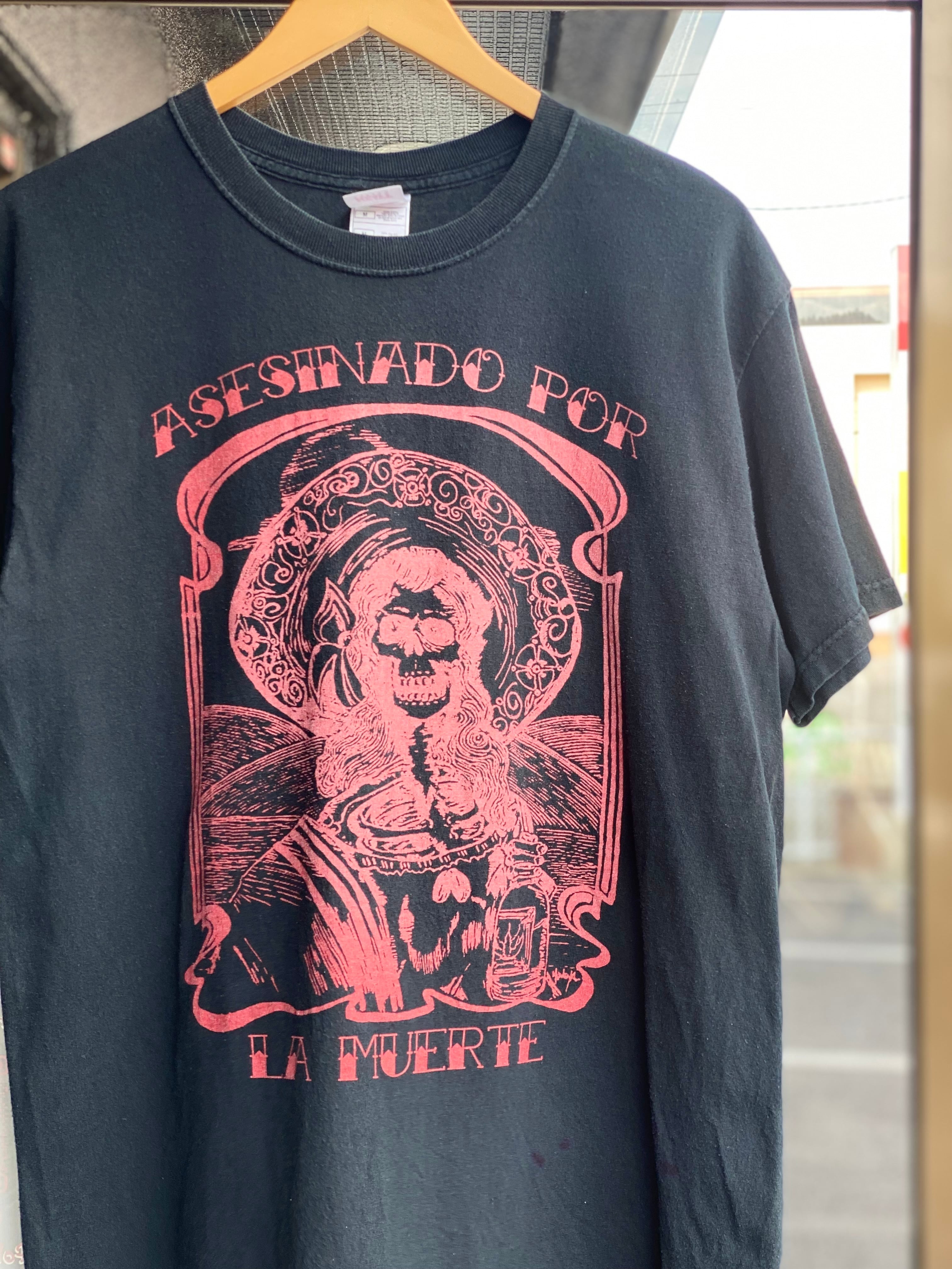 あくまでも推測の域を出ませんが、メキシコがモチーフになった"ASESINDO POR LA MUERTE"というテーマのTシャツになります。