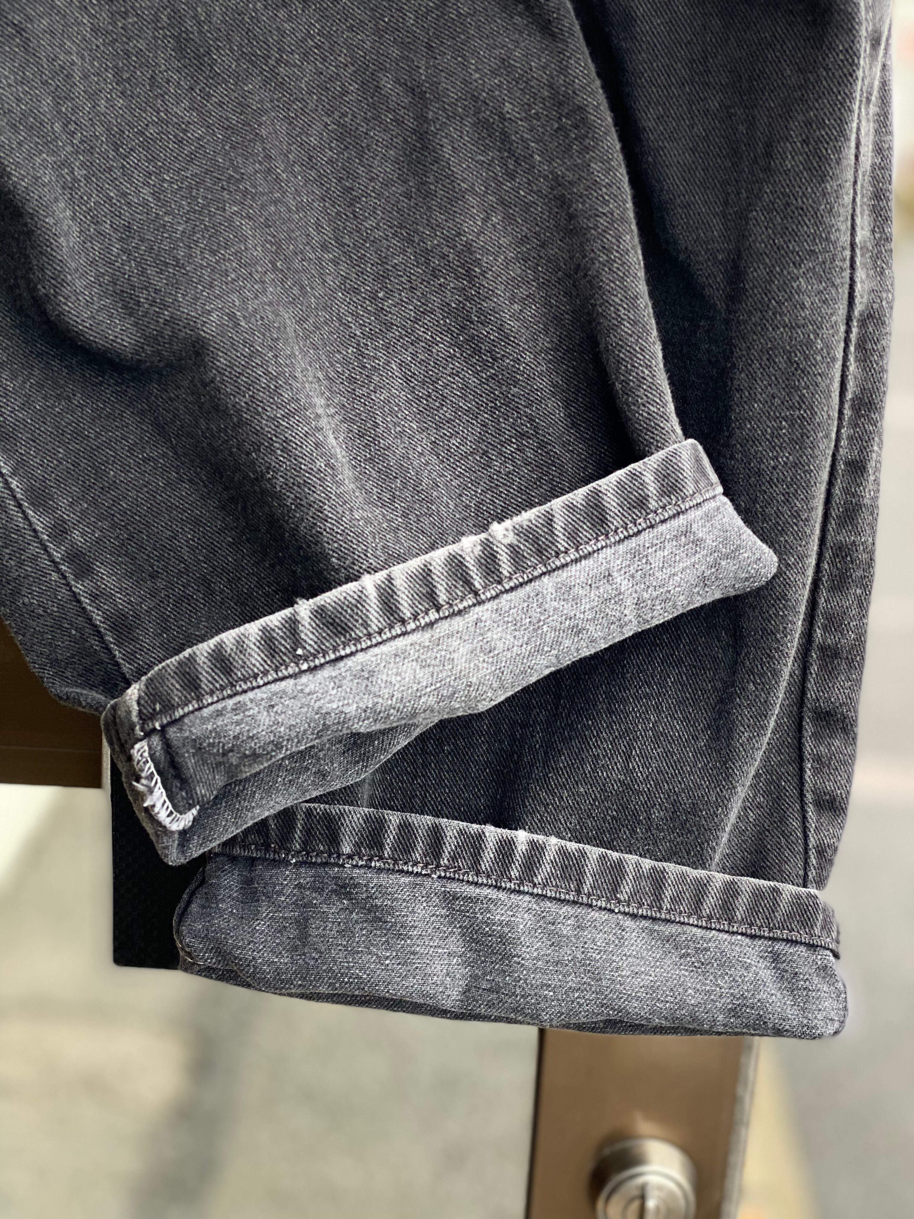 ブラックデニムで太めなので合わせるものを選ばず、非常に万能に使える1本です。