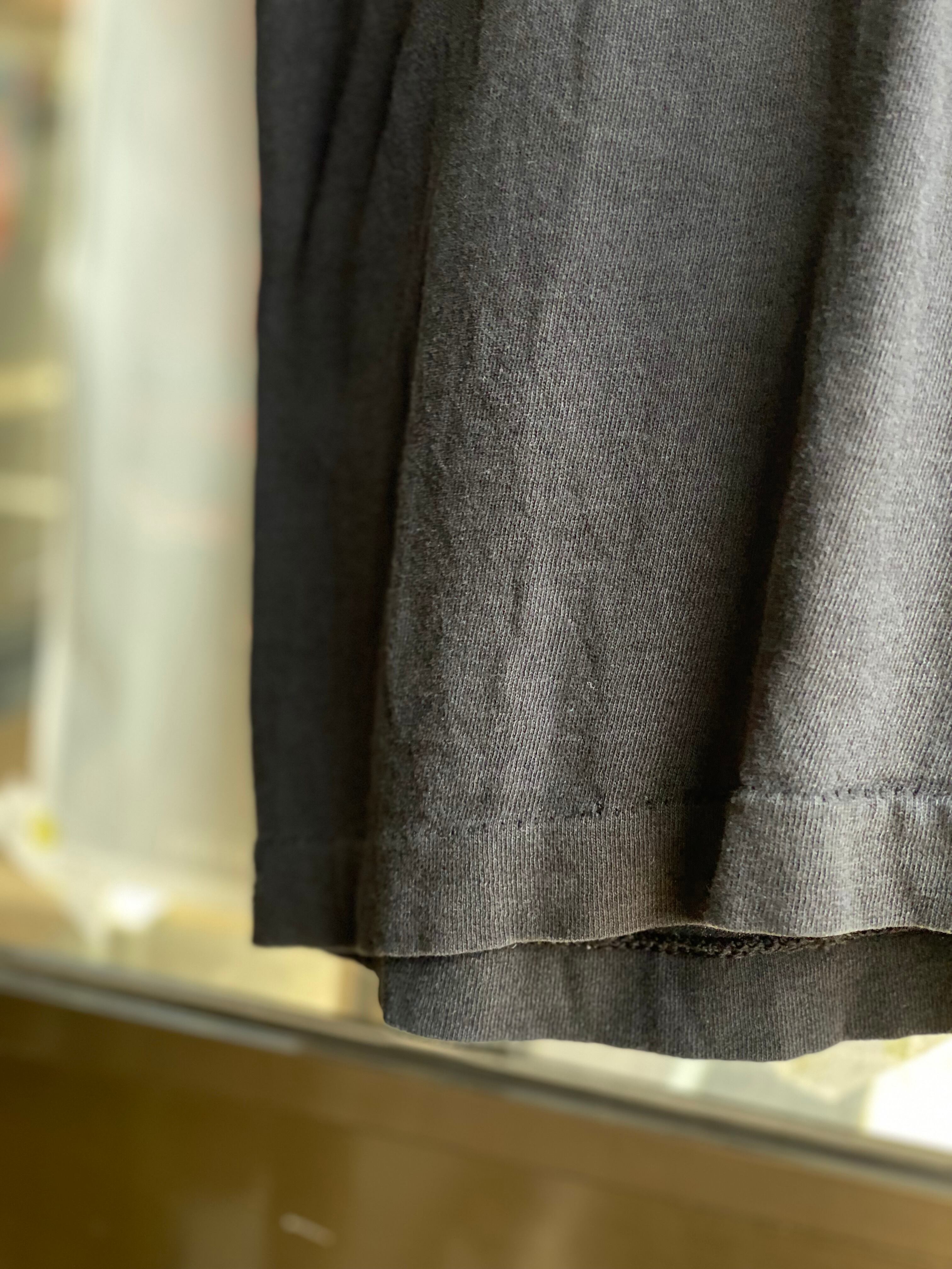 褪色したブラックのボディに山吹色のプリントが映え、デザインや雰囲気含めてとても男らしい1枚ではないでしょうか?