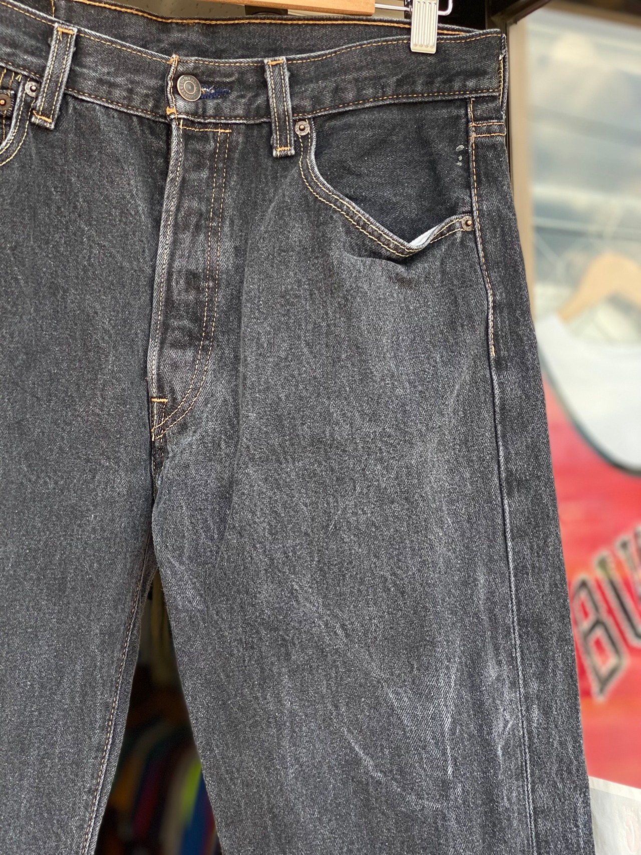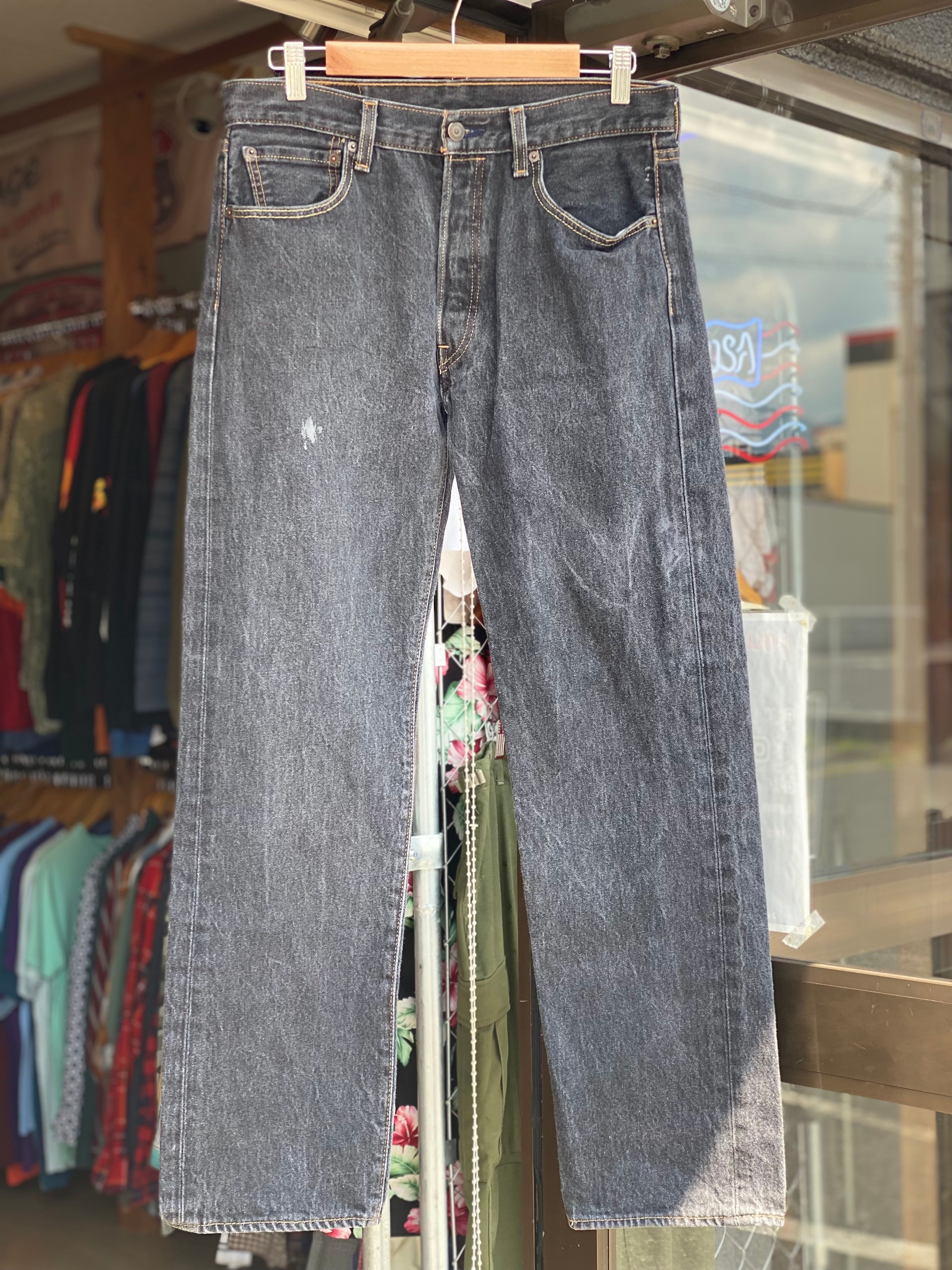 Levi's 501 "先染めブラック" ストレートデニムパンツ W32×L31 黒デニム ストレートジーンズ ブラックデニム グレー メキシコ製 MADE IN MEXICO アメカジ 古着 バイカーファッション ボタンフライ ブラックジーンズ リーバイス501