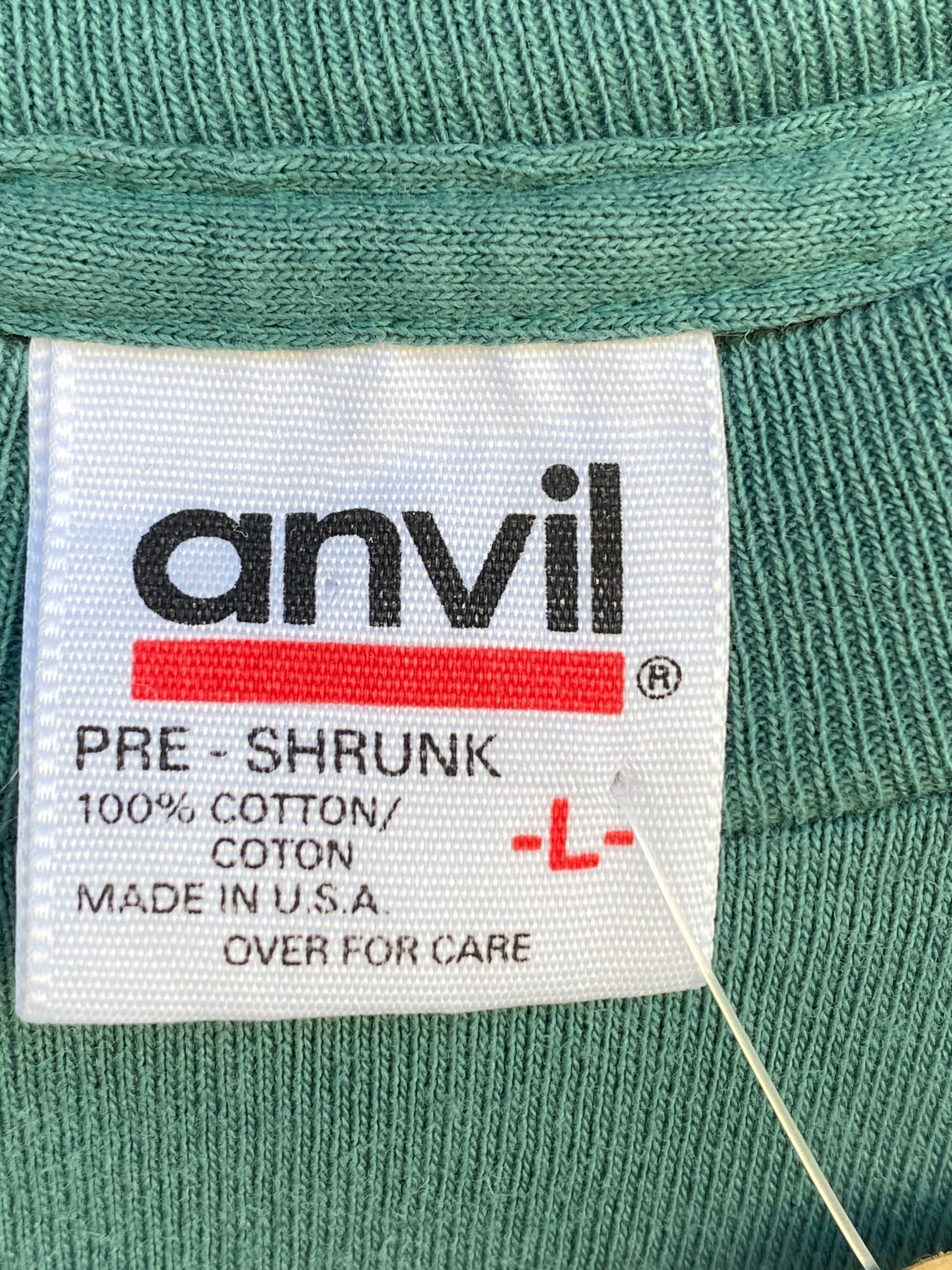 このTシャツは、胸元に「Brew Thru」と「Outer Banks, N.C.」の文字がプリントされており、ドライブスルーの雰囲気を感じさせるデザインが特徴です。落ち着いたグリーンのボディカラーが、ヴィンテージならではの風合いを引き立てています。