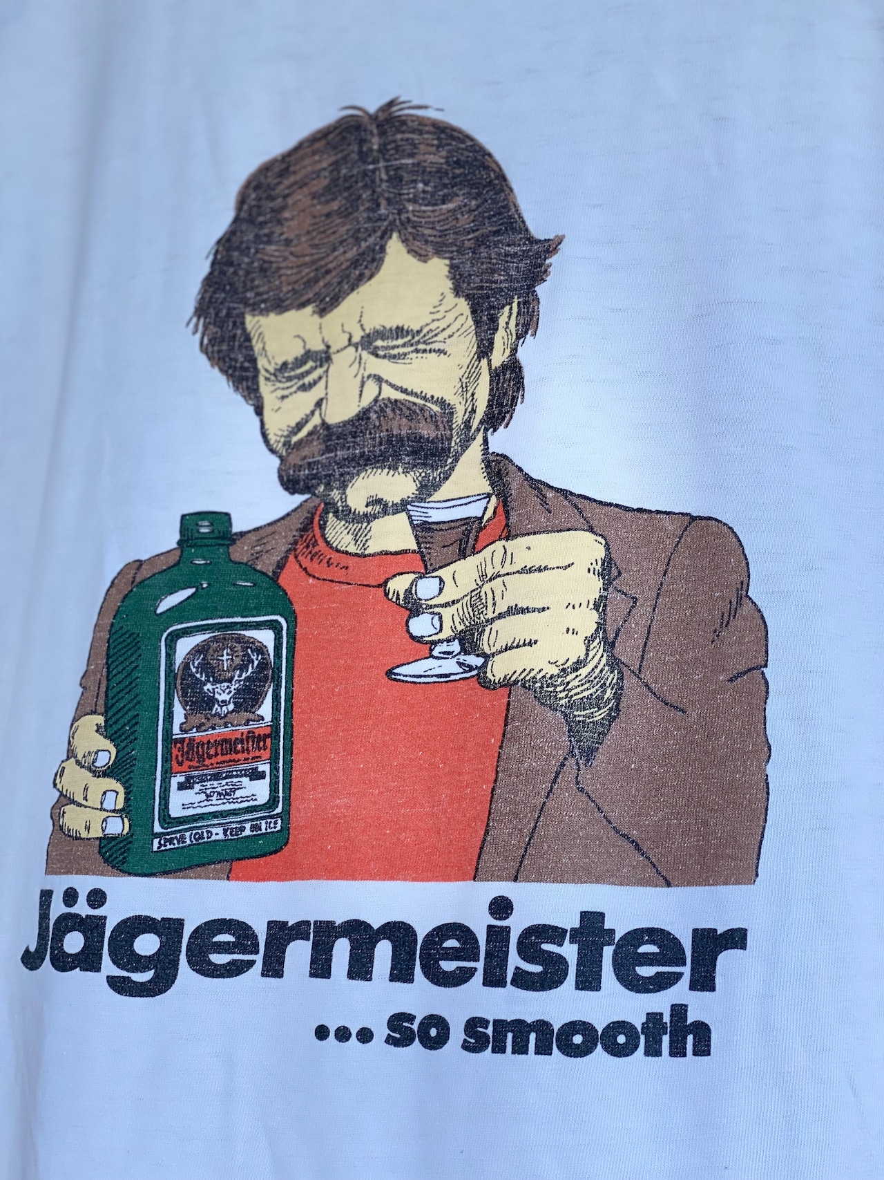 90~00年代頃と思われる、ドイツ産のリキュール"Jägermeister(イエーガーマイスター)"のTシャツになります!