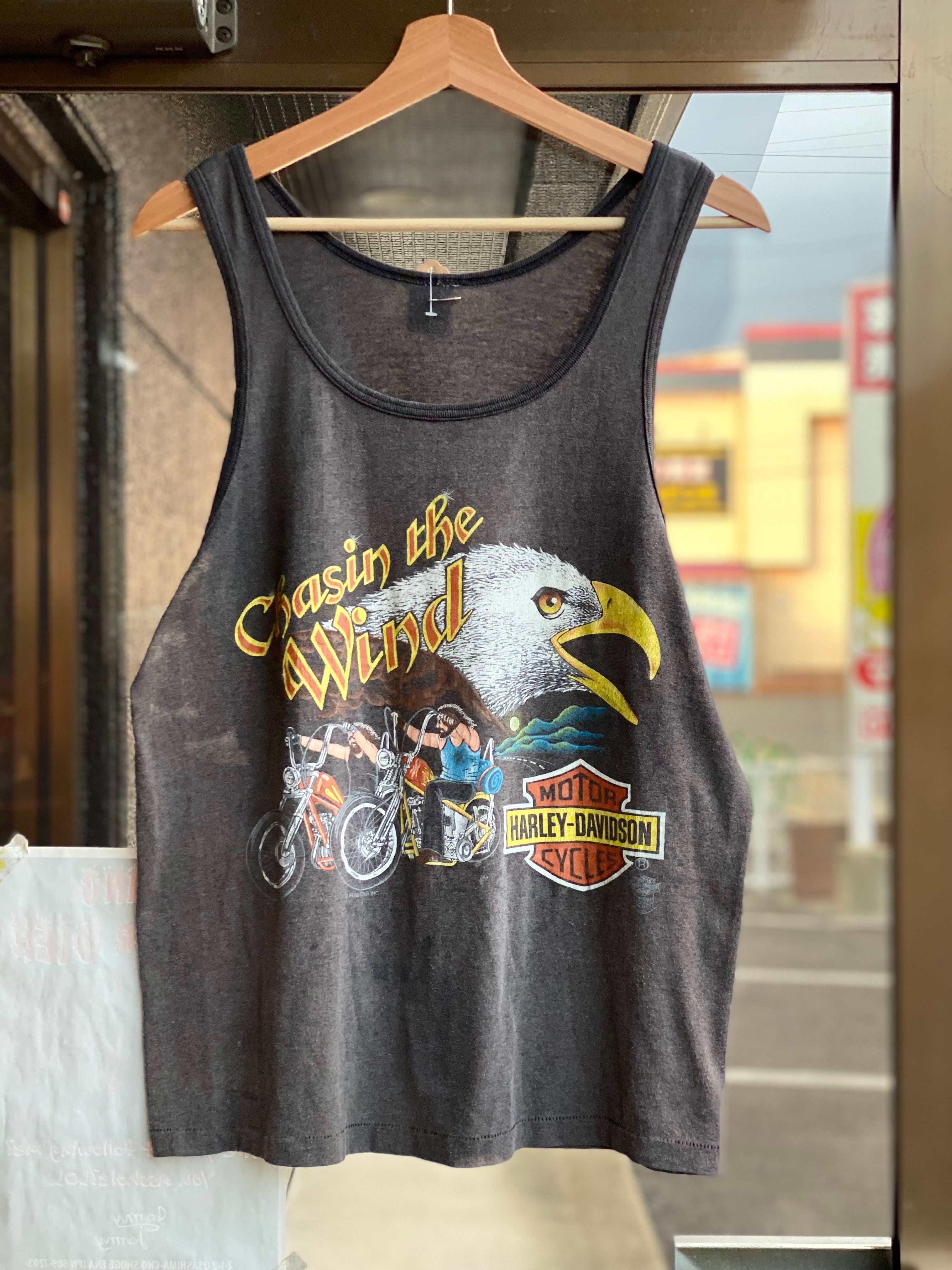 80~90's HARLEY-DAVIDSON "Chasin the Wind" タンクトップ 実寸Mサイズ程 フェード 褪色 スミクロ イーグル チョッパー ノースリーブ バイカー バイク ハーレー・ダビッドソン オフィシャル シングルステッチ アメカジ 古着 ヴィンテージ ビンテージ FUNWEAR INC. H-D