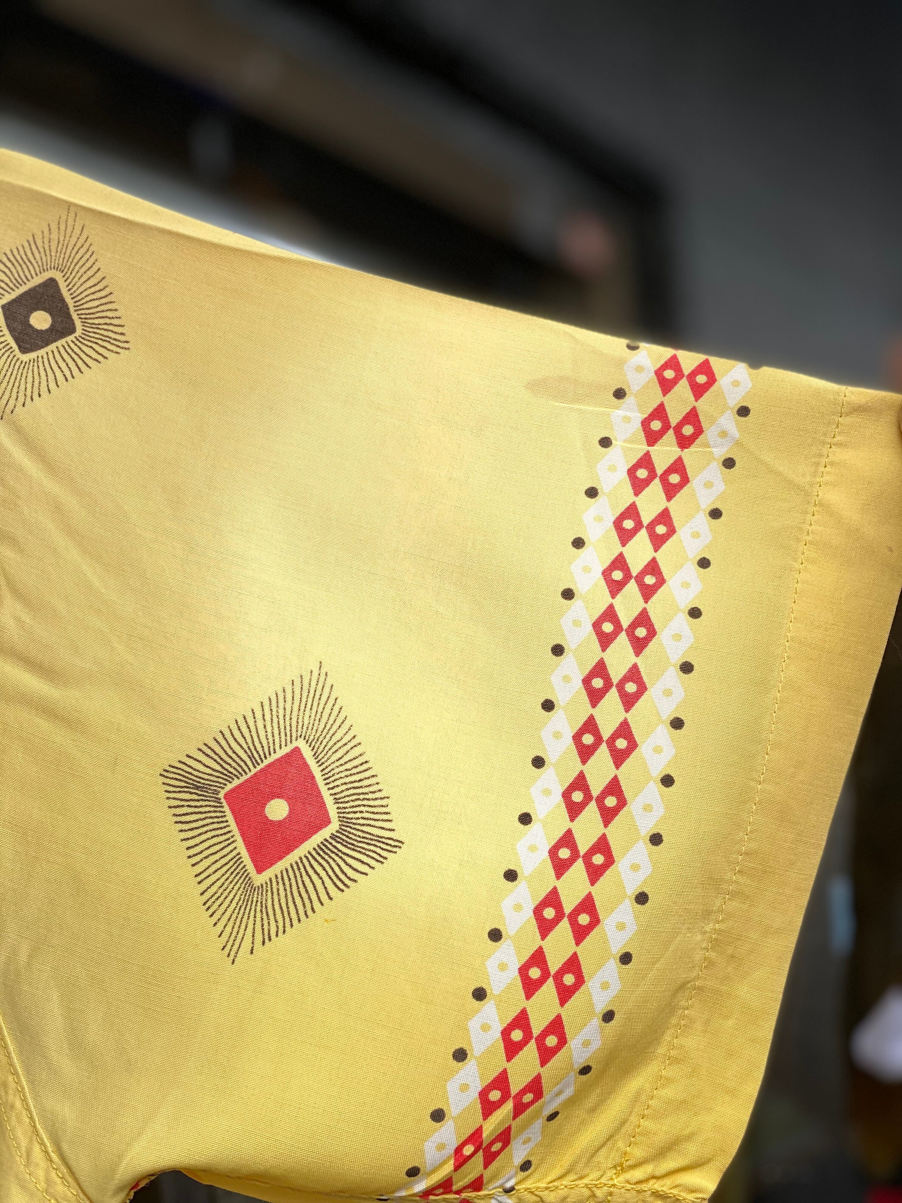 50's Vintage DUKE KAHANAMOKU MADE BY CISCO "ボーダー×アトミック" 半袖レーヨンアロハシャツ Lサイズ 16-16 1/2 デュークカハナモク レーヨンシャツ ダイヤ柄 レモンイエロー 50年代 ストライプ 半袖シャツ 開襟シャツ オープンカラー ロカビリー ロックンロール ヴィンテージアロハ ヴィンテージシャツ ビンテージアロハ 激レア