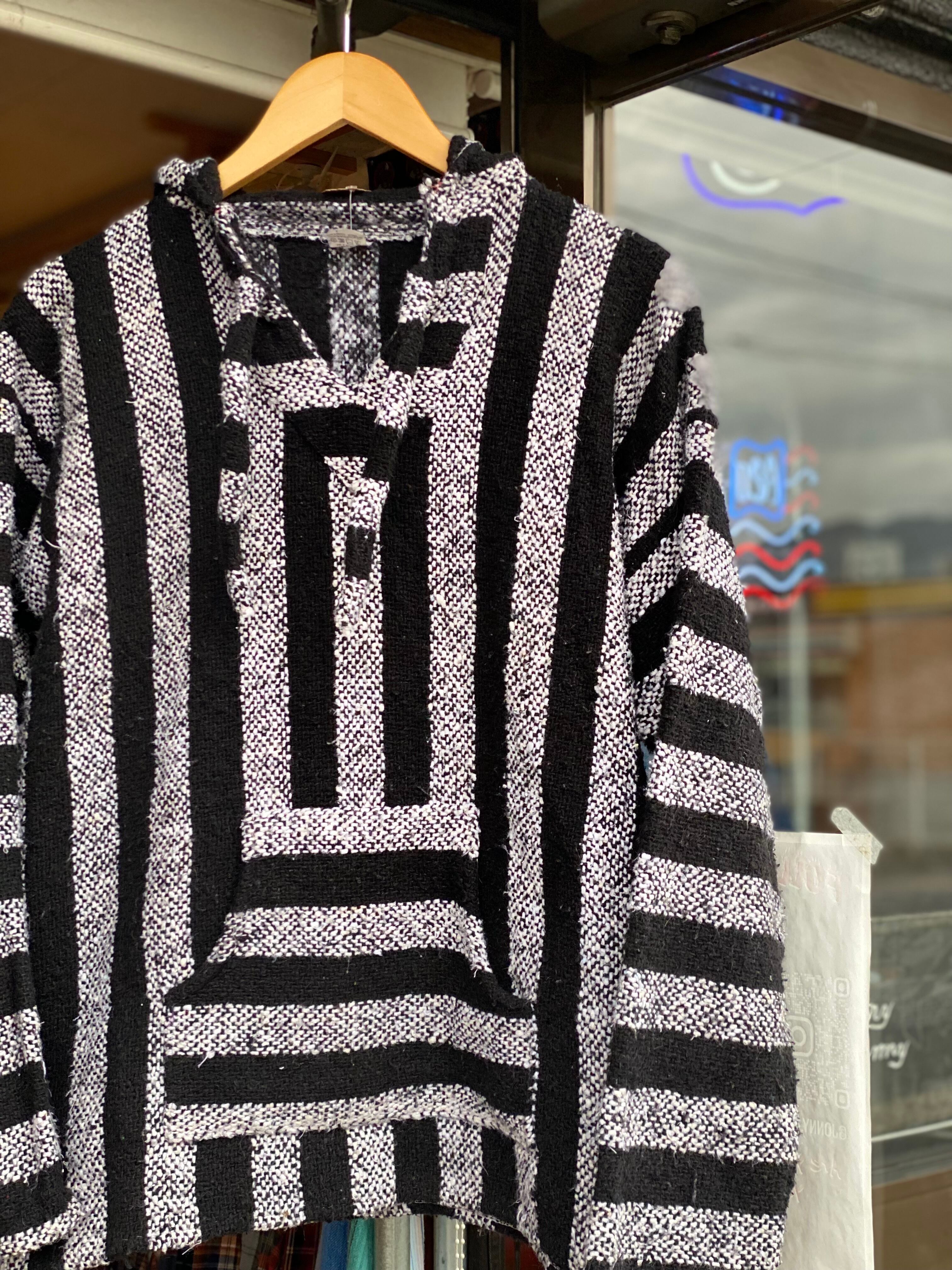 コチラはメキシカンパーカーは色モノが目立つ中で比較的珍しい、シンプルなブラック×ホワイトのモノトーンストライプのタイプ。