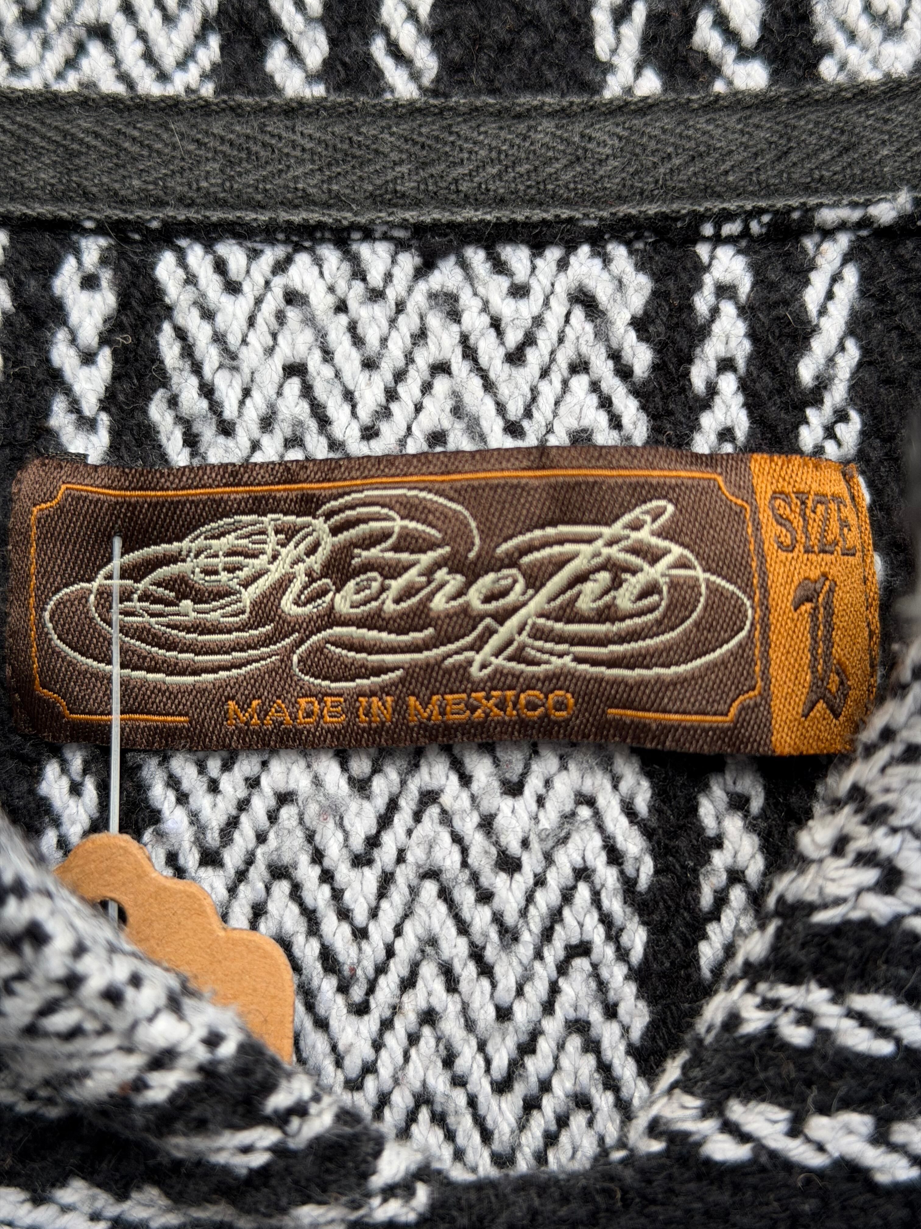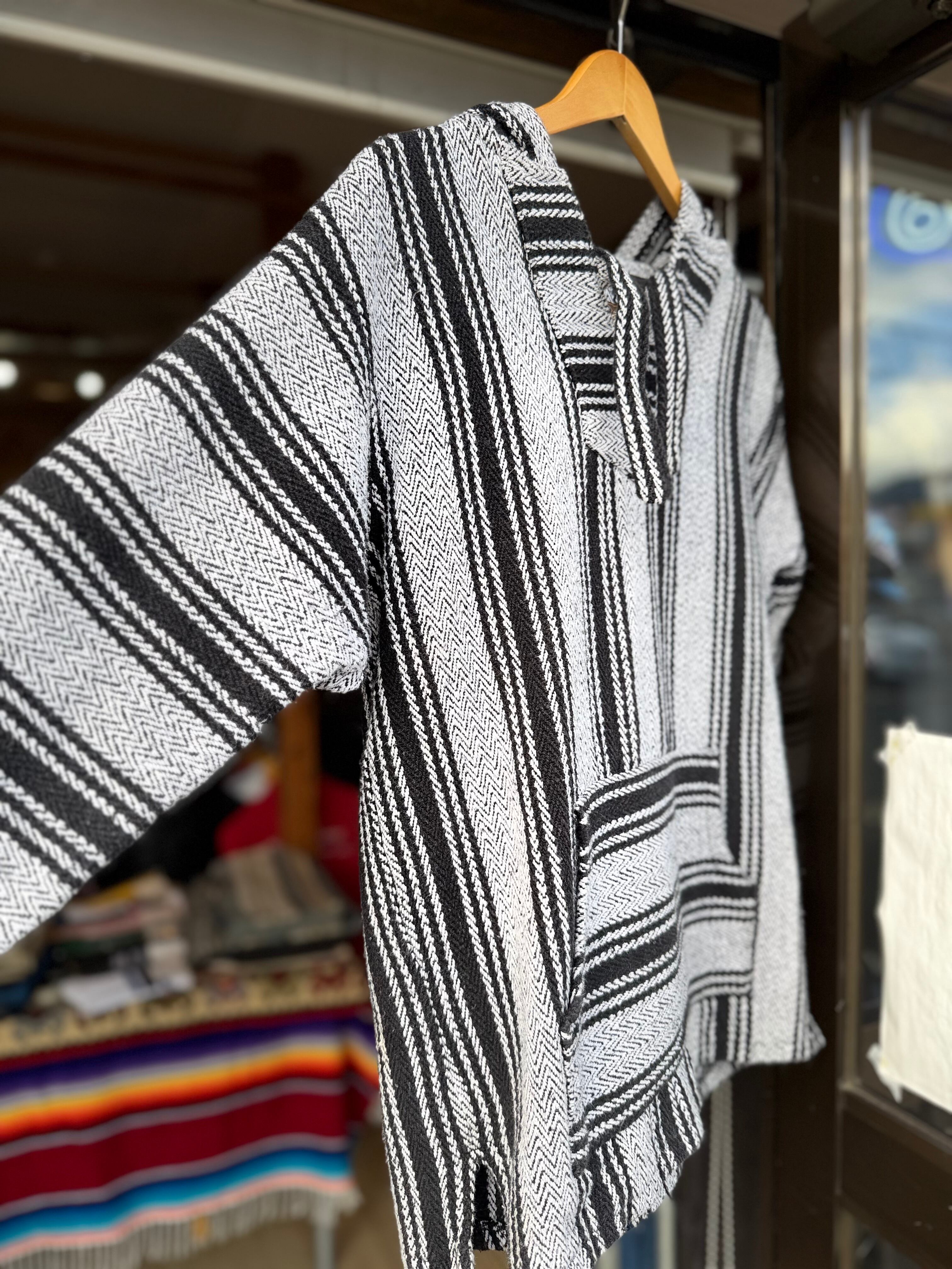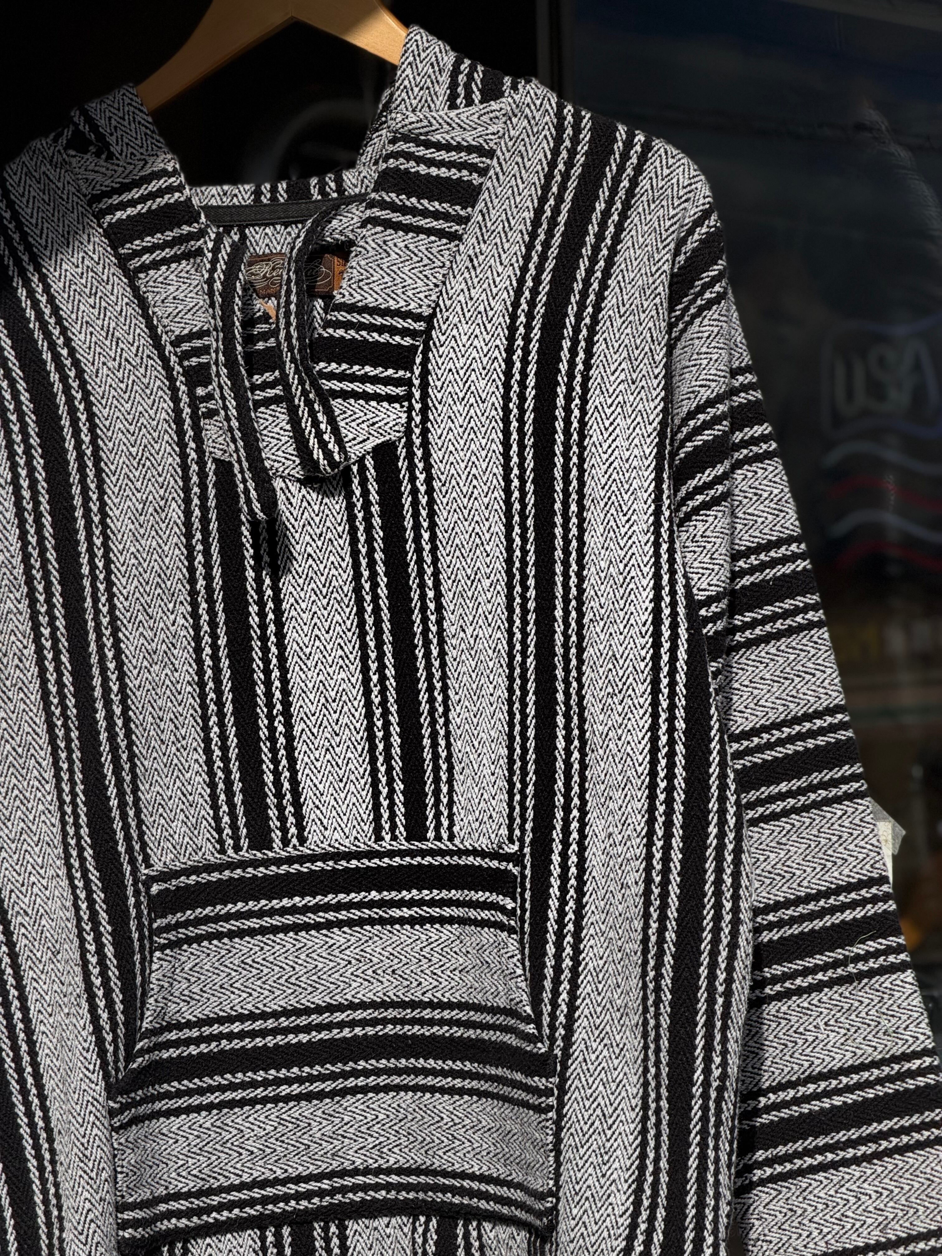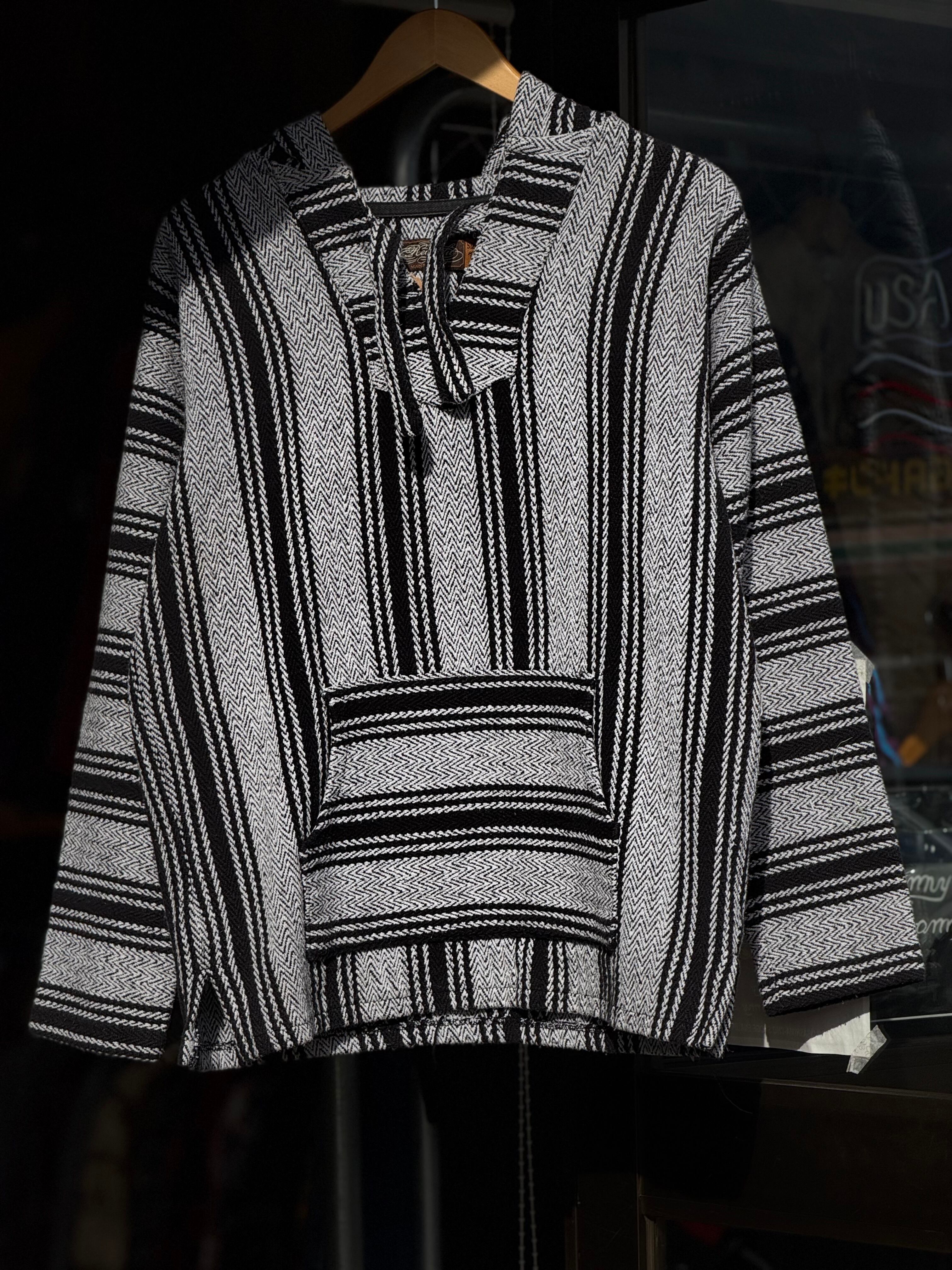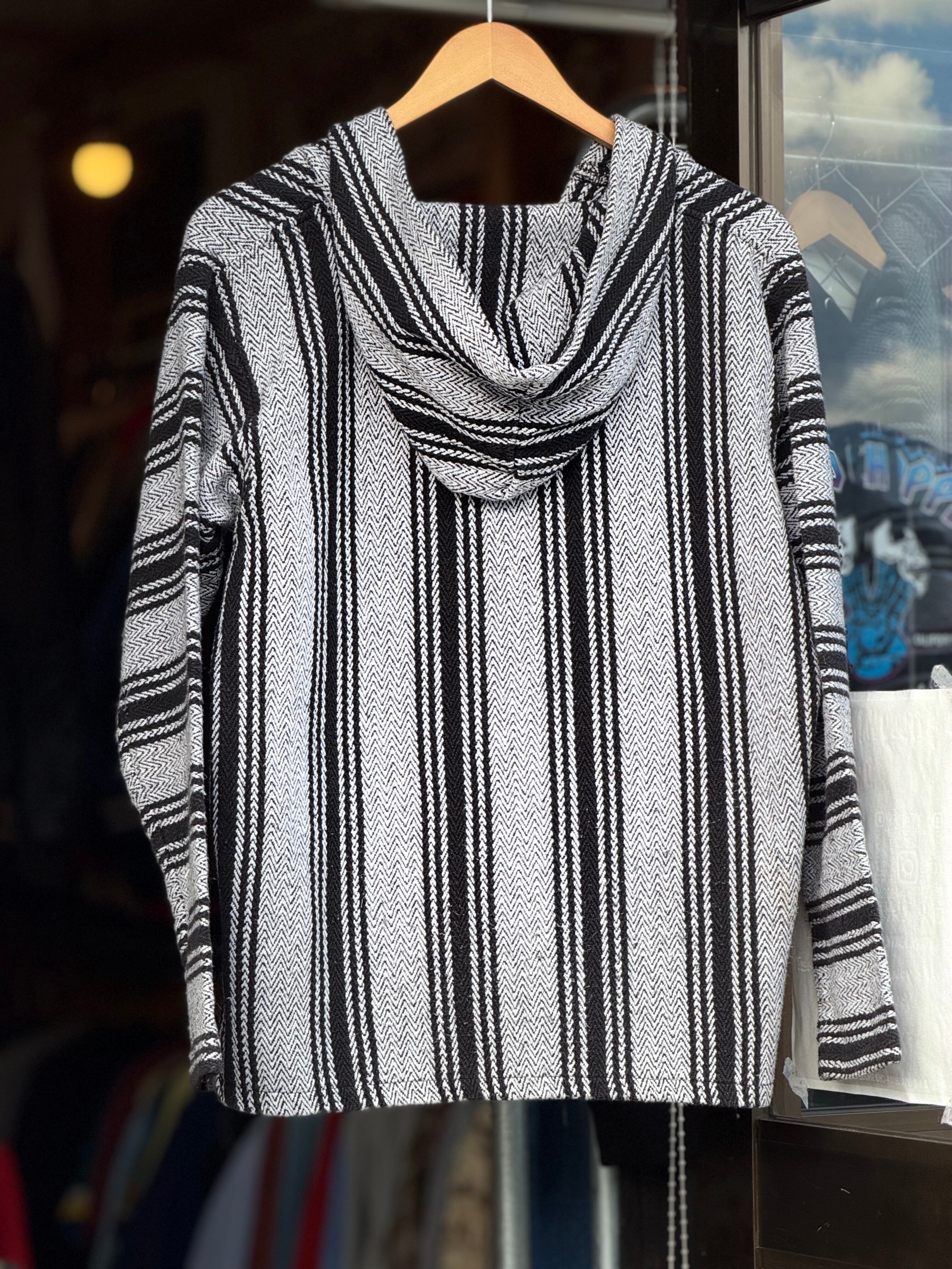 Retro Fit メキシカンパーカー Lサイズ ストライプ ヘリンボーン モノトーン ツートーン シンプル 白黒 ジグザグ ラグ サラペ メキシコ バハジャケット バハフーディー サーファー サーフィン ヒッピー カルチャー ボーダー baja jacket baja hoodie ヒッピー