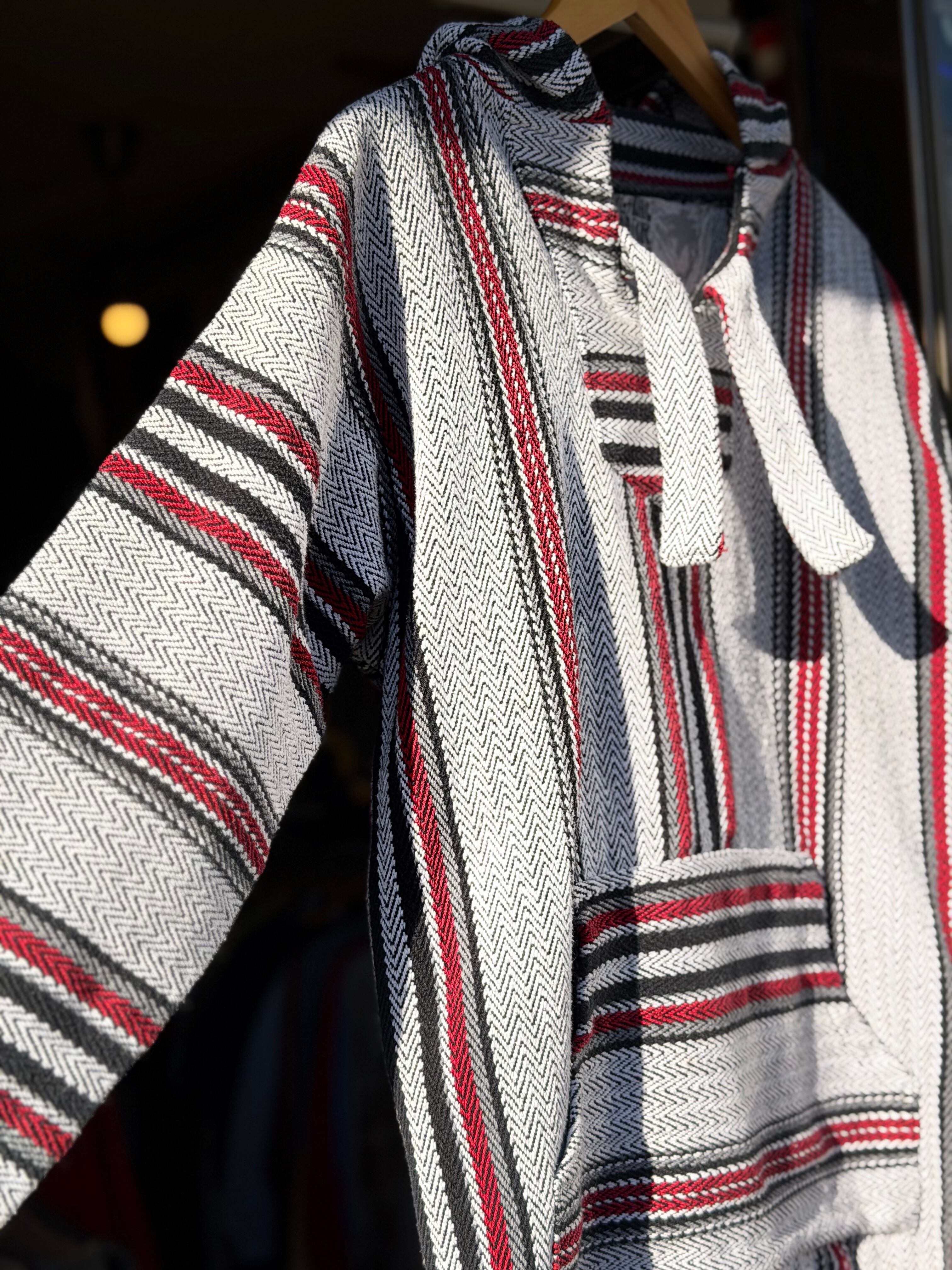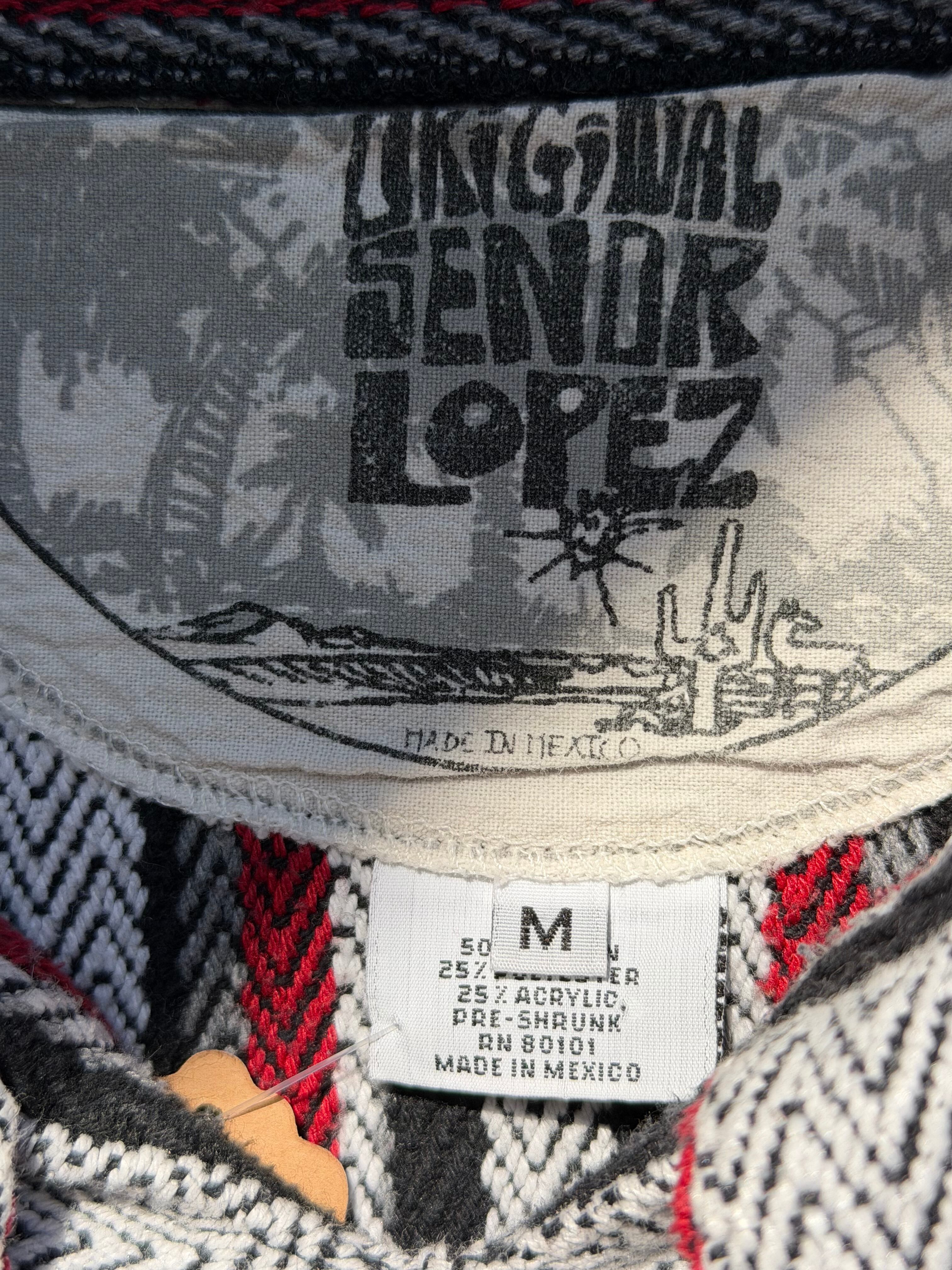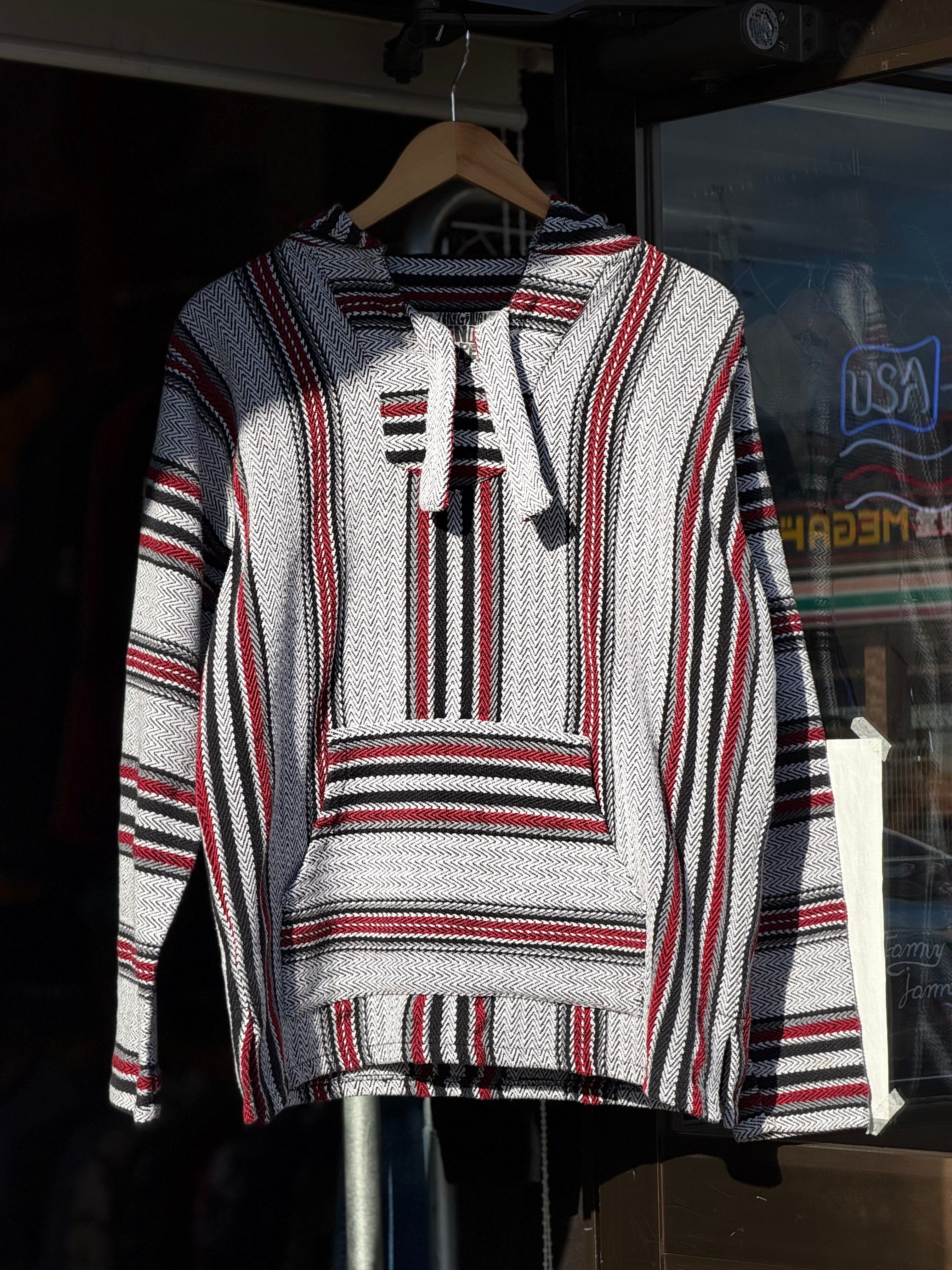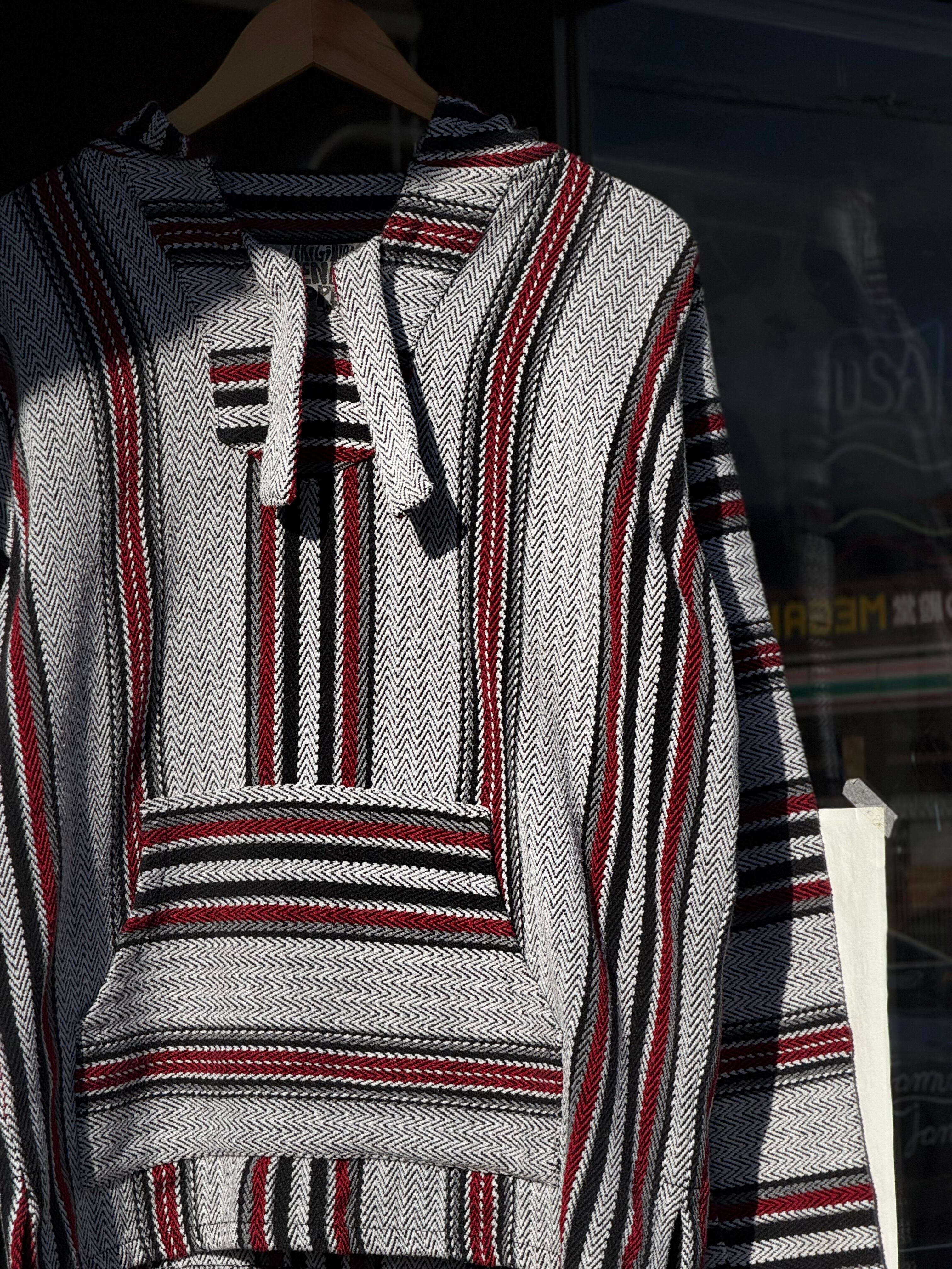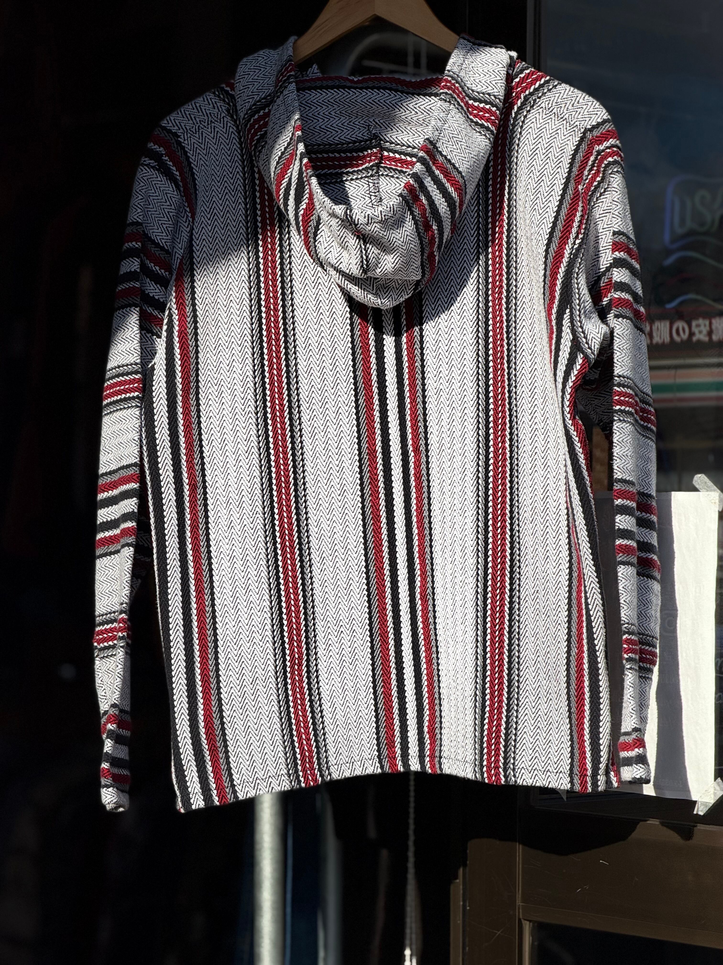 ORIGINAL SENOR LOPEZ メキシカンパーカー Mサイズ ストライプ レッド ヘリンボーン モノトーン ツートーン シンプル 白黒 ジグザグ ラグ サラペ メキシコ バハジャケット バハフーディー サーファー サーフィン ヒッピー カルチャー ボーダー baja jacket baja hoodie ヒッピー