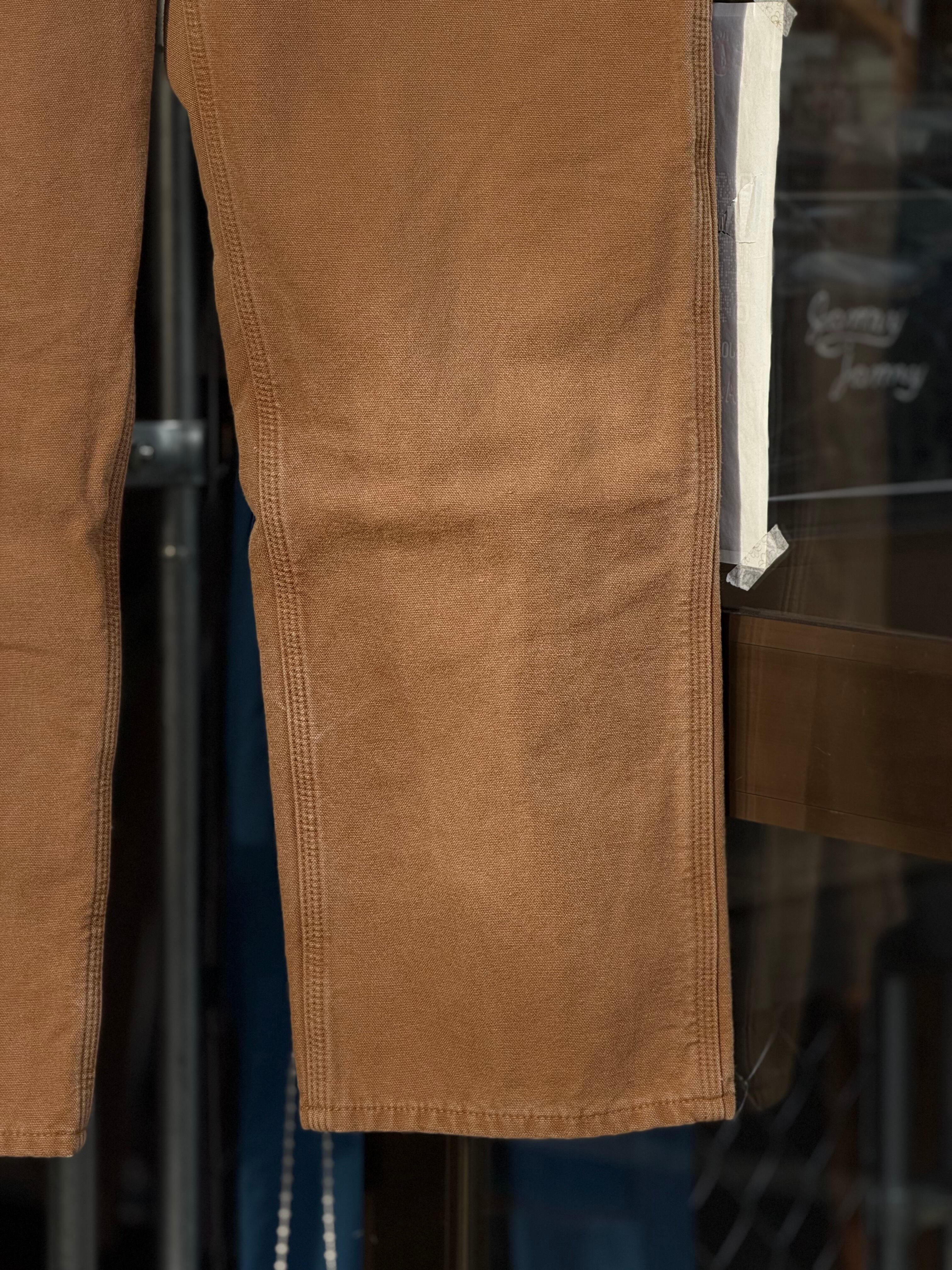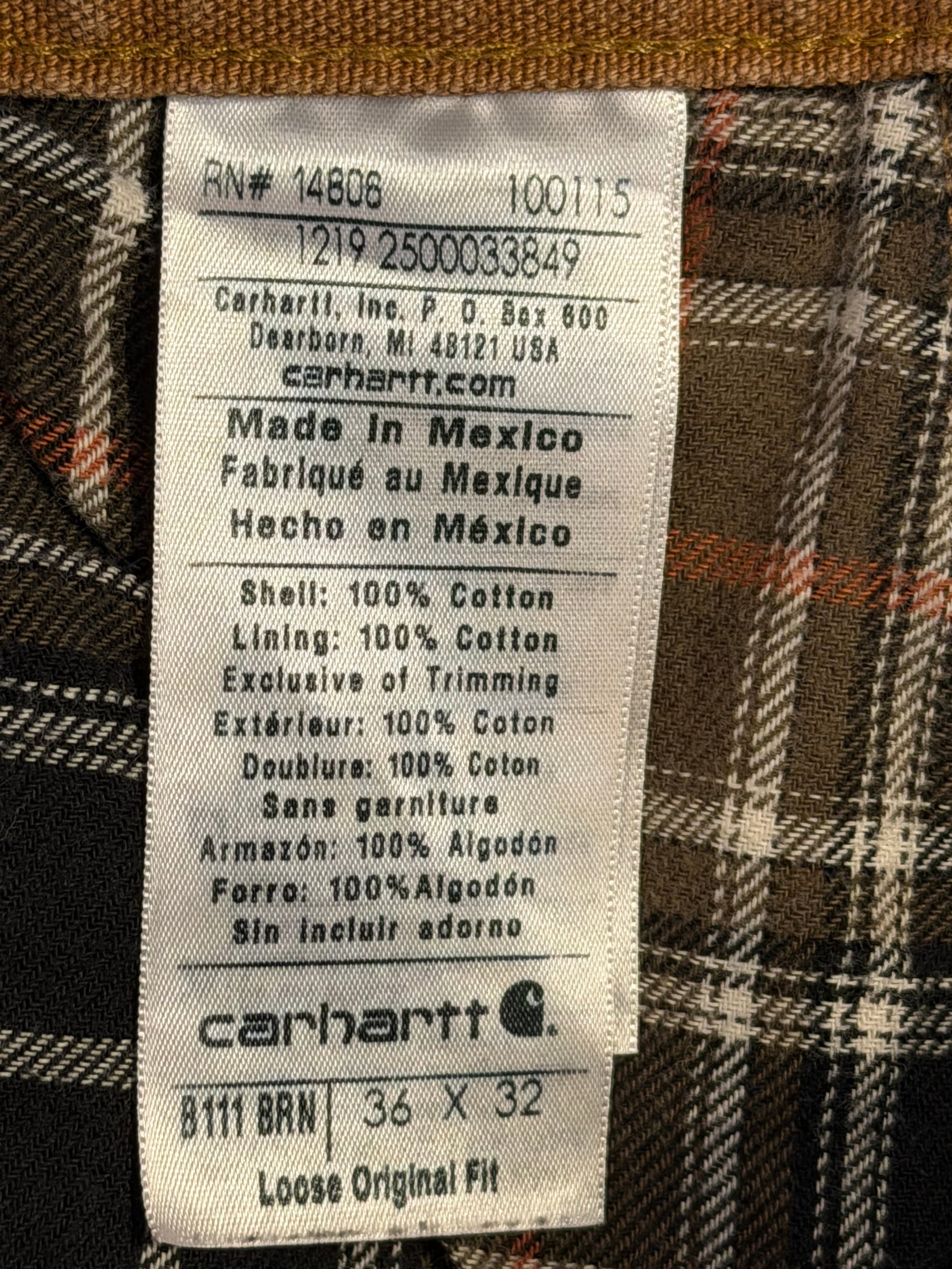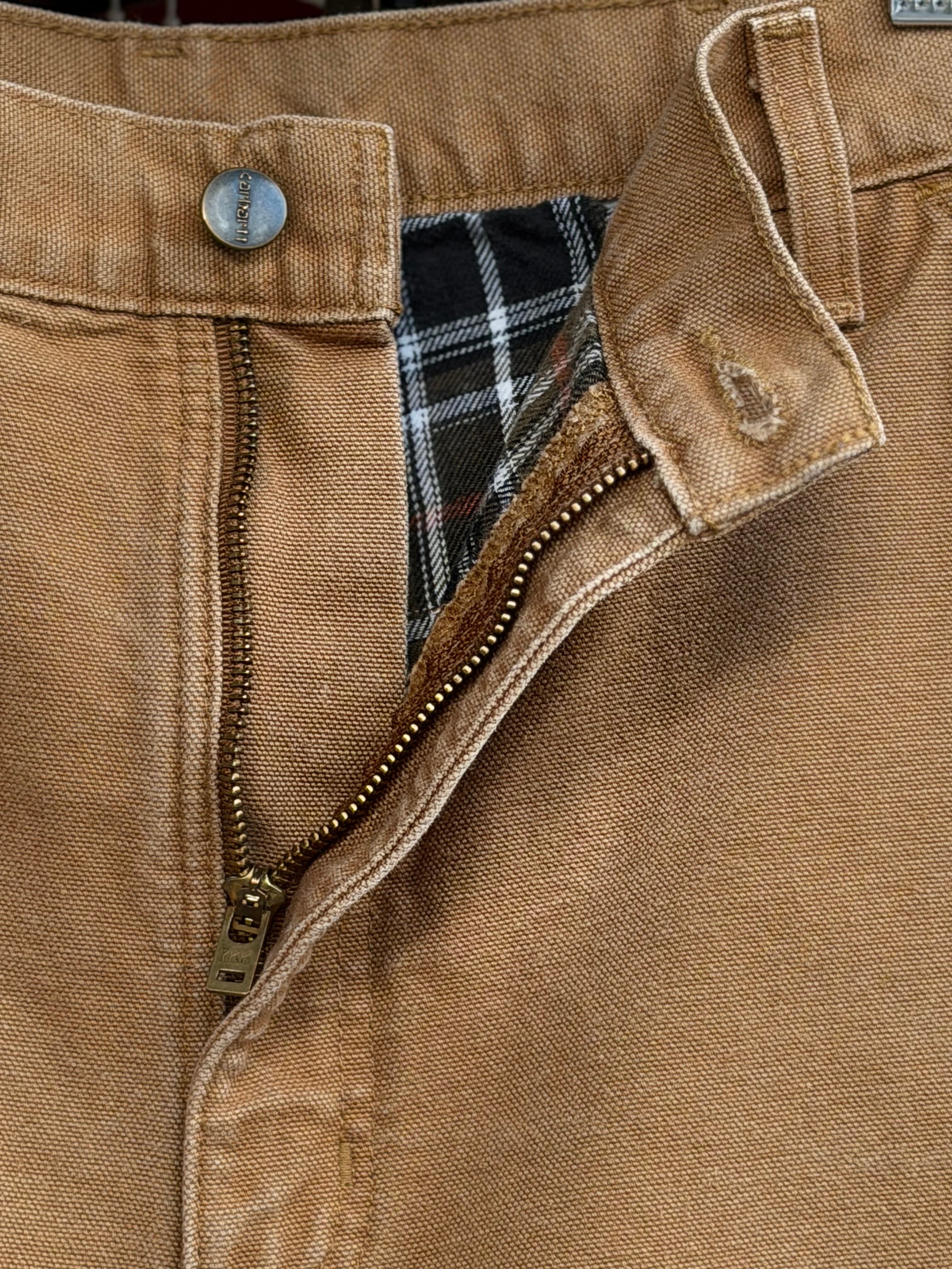 Carhartt B111 WASHED DUCK DUNGAREE FLANNEL LINED PANTS 裏地付きキャンバスダックペインターパンツ W35×L32 ブラウンダック フランネルライナー メキシコ製 カーハート ダックパンツ カーペンターパンツ 冬用 アメカジ ワークパンツ バイカーファッション