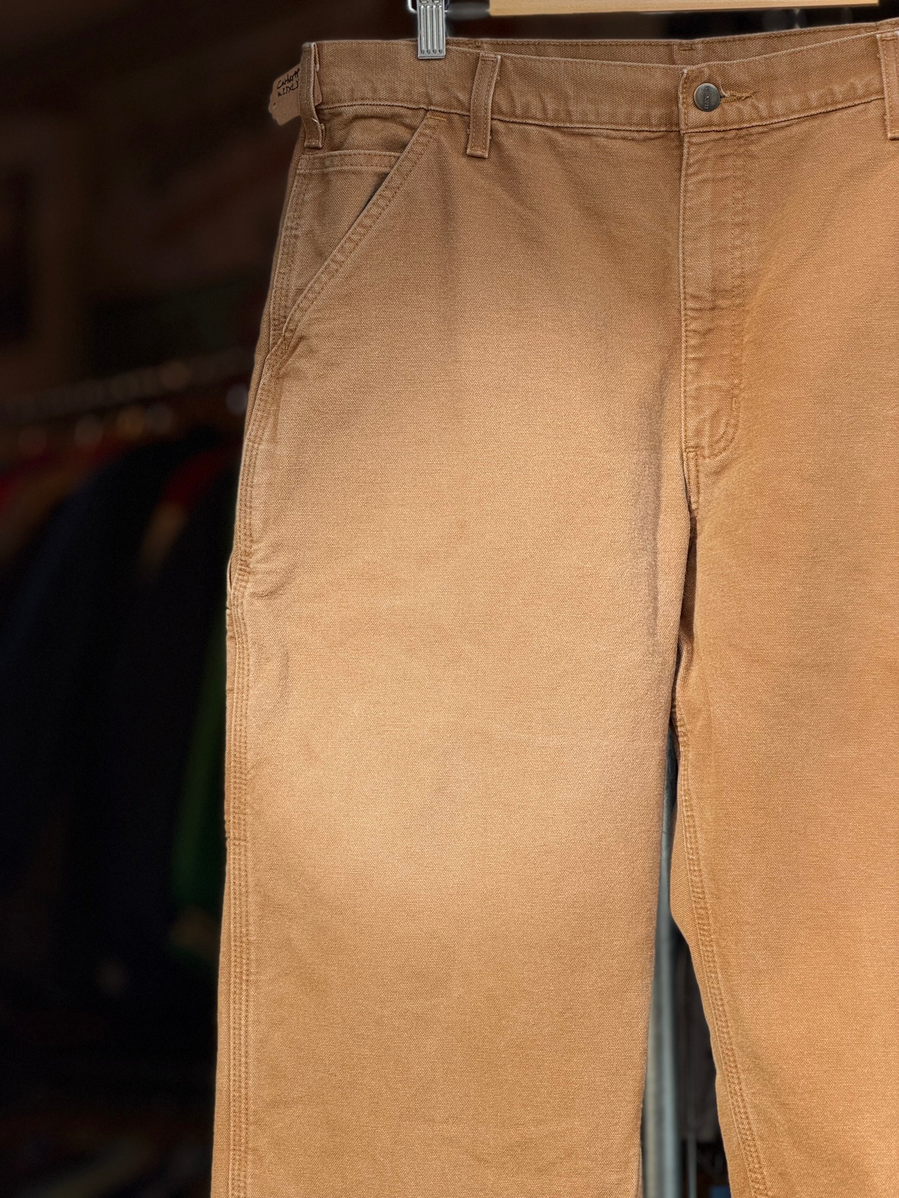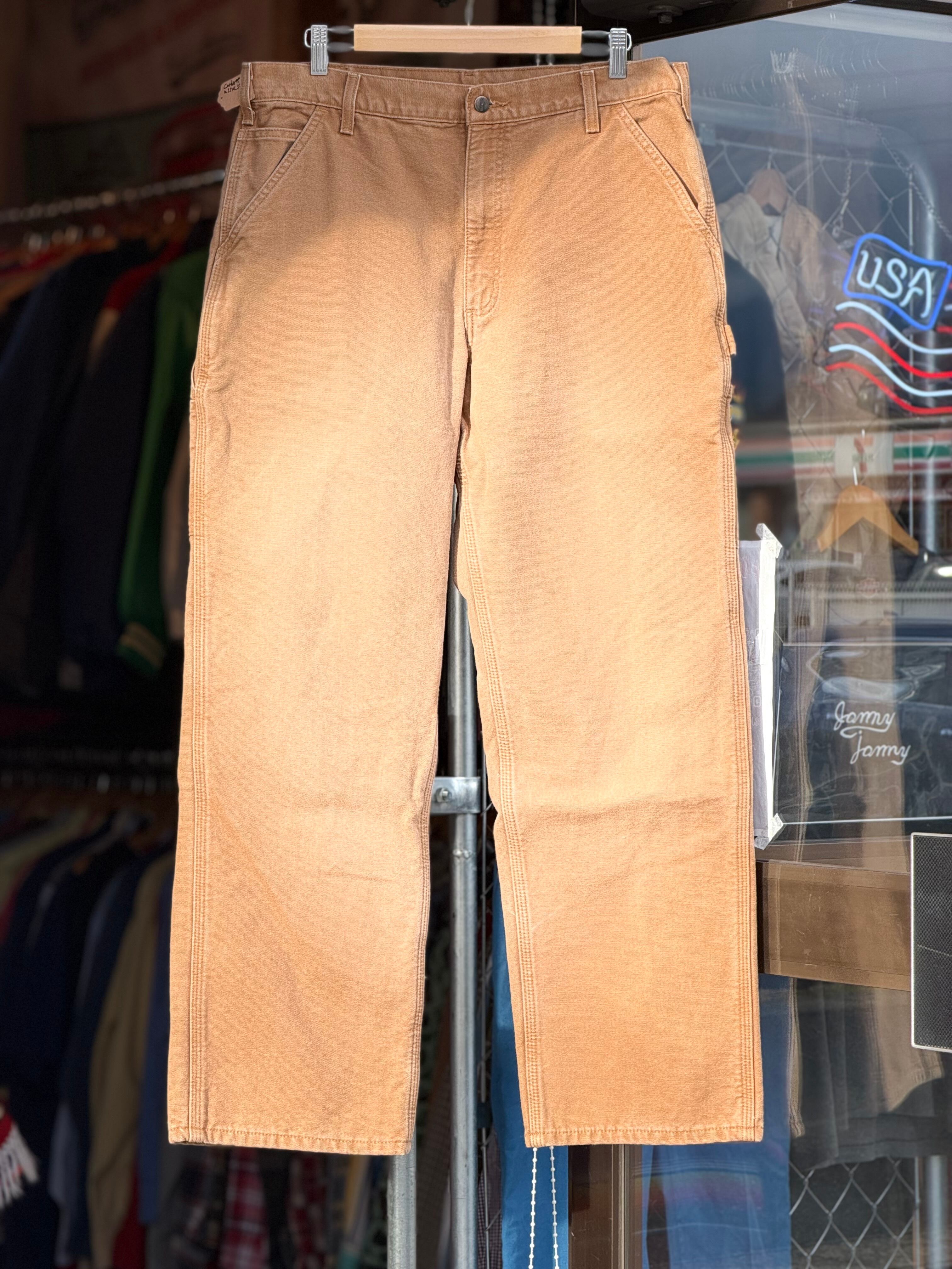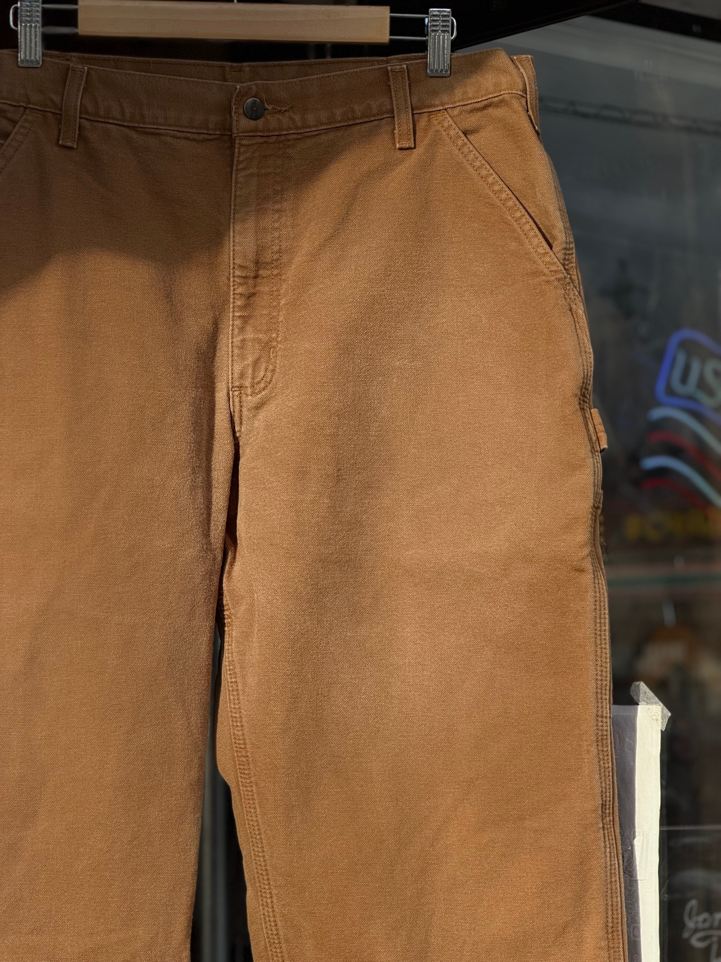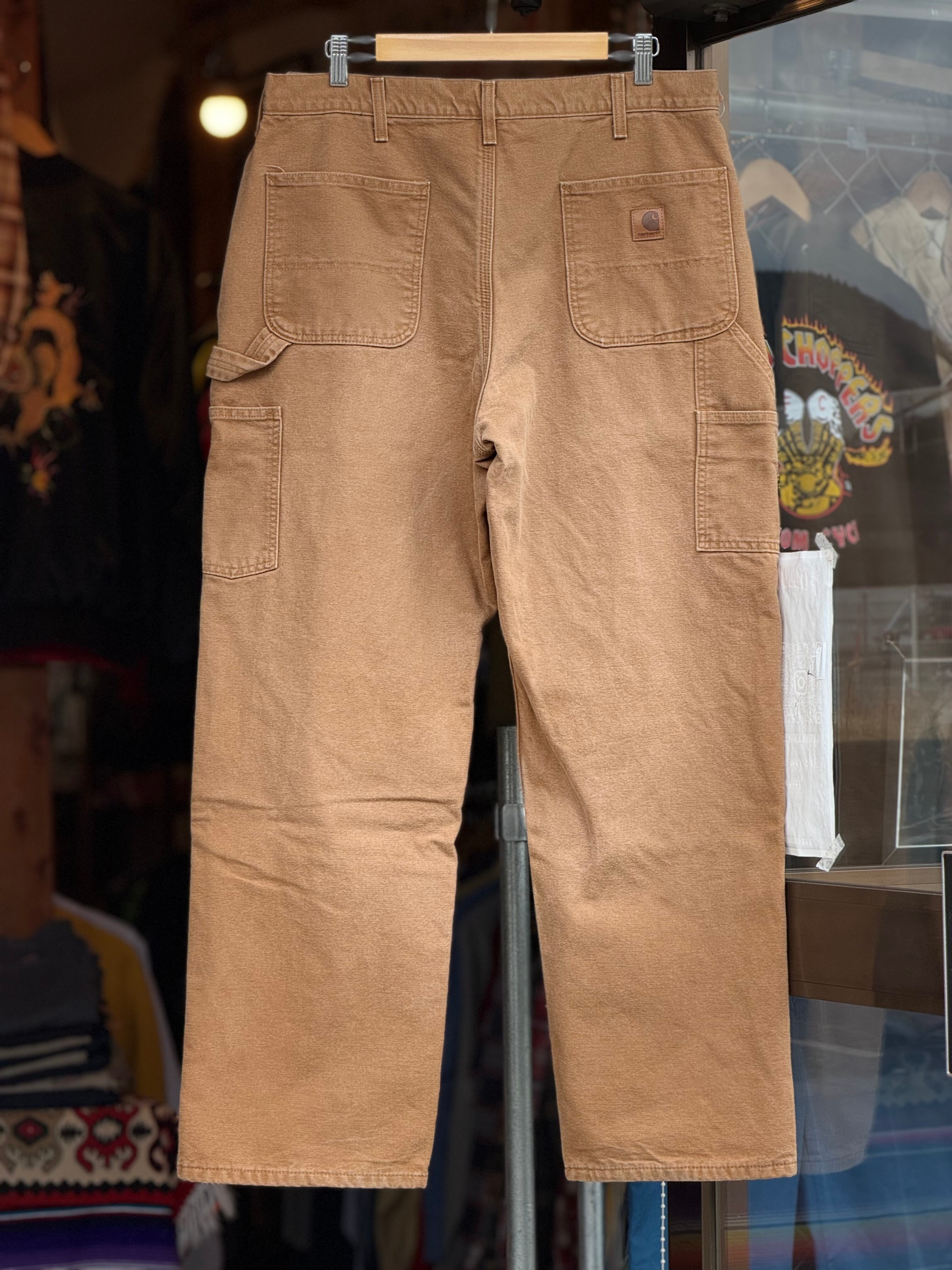 Carhartt B111 WASHED DUCK DUNGAREE FLANNEL LINED PANTS 裏地付きキャンバスダックペインターパンツ W35×L32 ブラウンダック フランネルライナー メキシコ製 カーハート ダックパンツ カーペンターパンツ 冬用 アメカジ ワークパンツ バイカーファッション