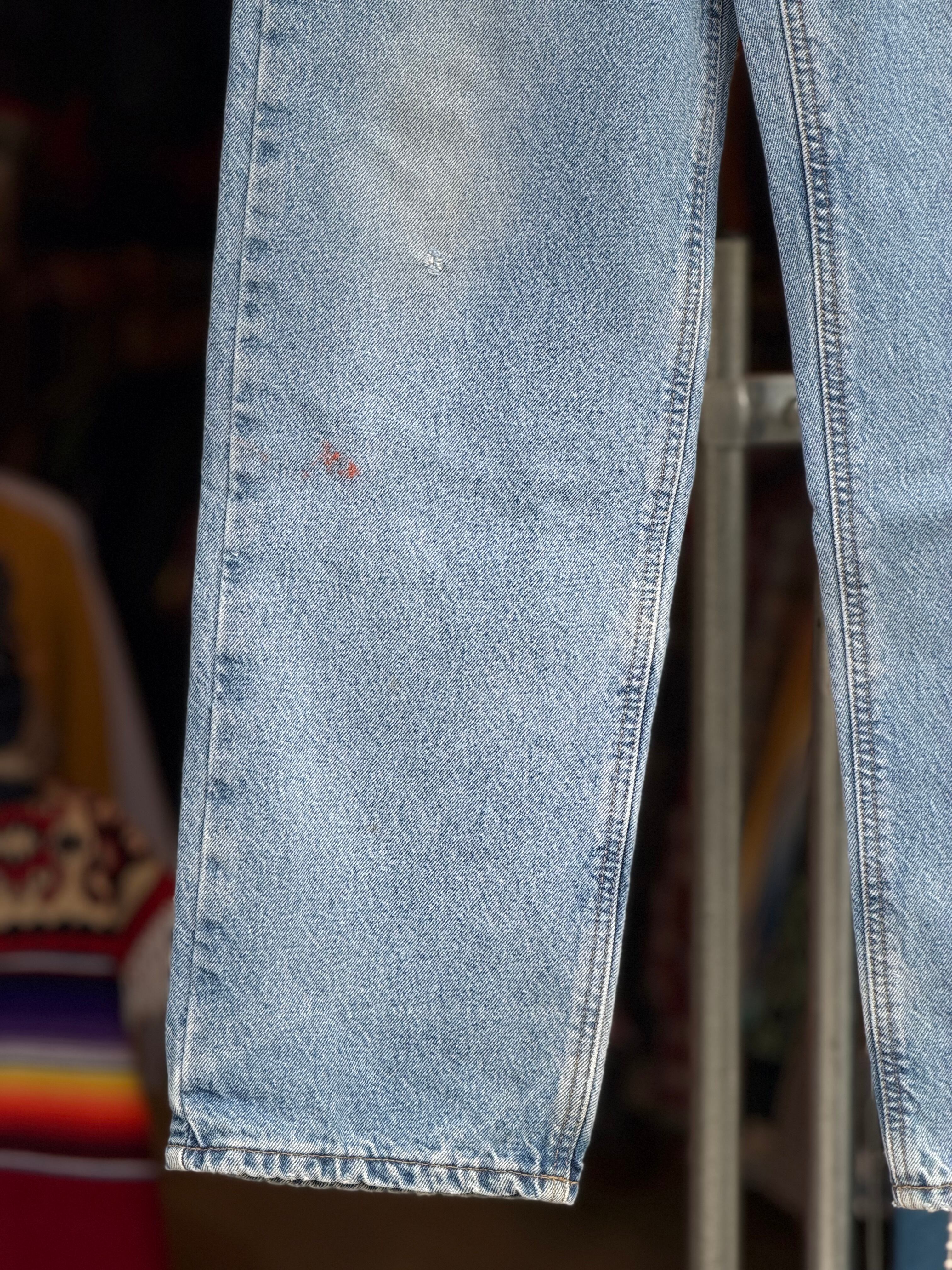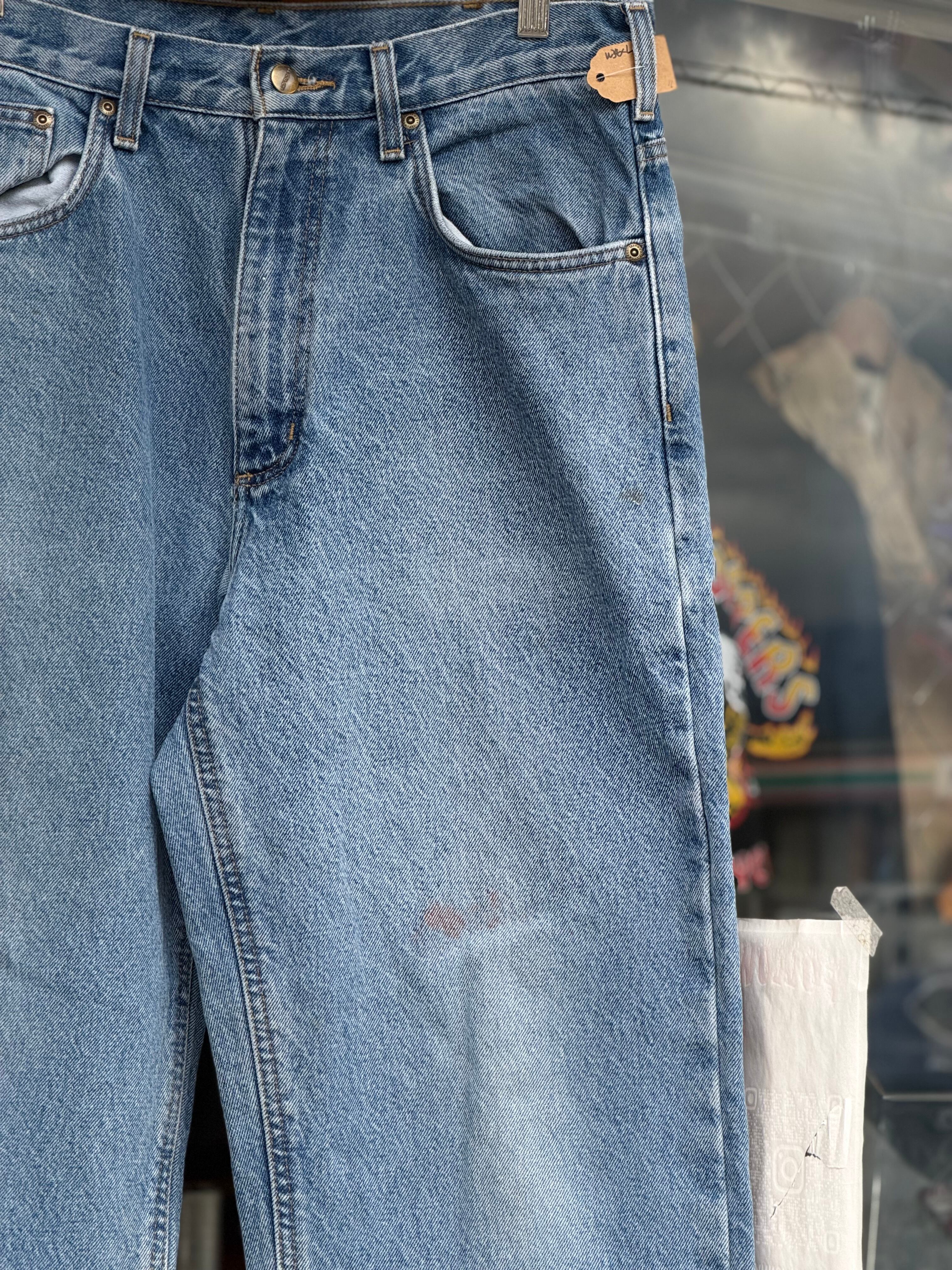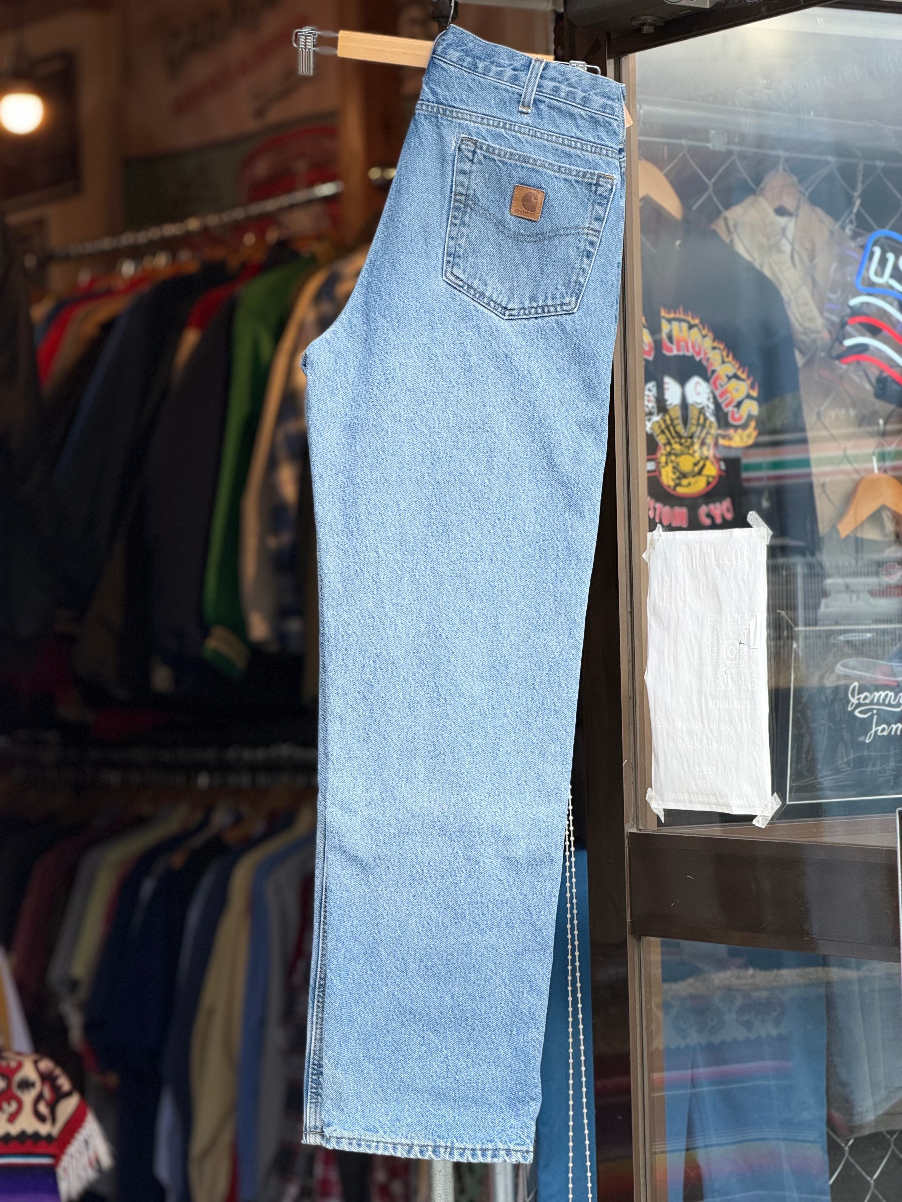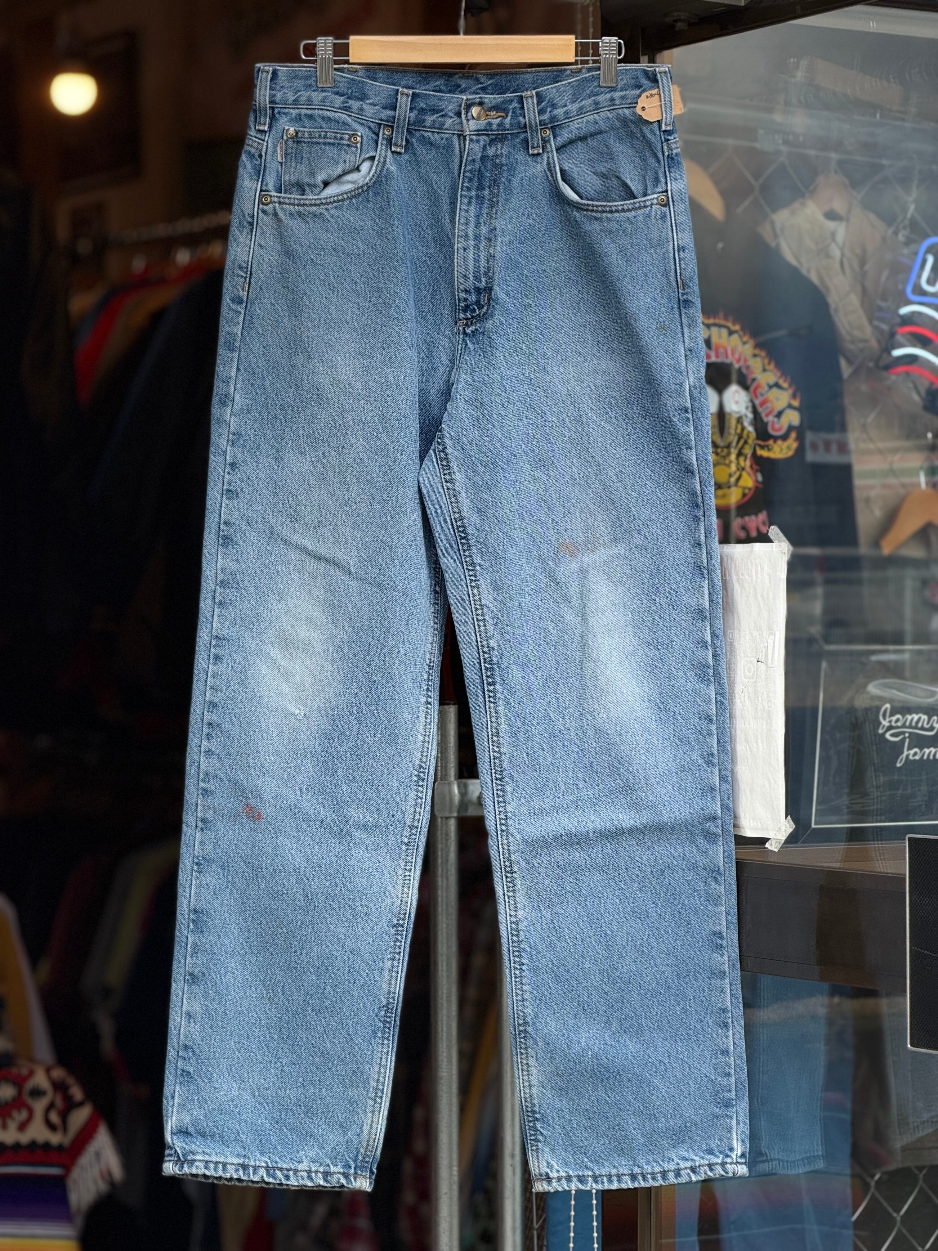 Carhartt 裏地付きデニムパンツ W34×L33 カーハート ジーンズ アイスブルー フランネルライナー relaxed fit カーハート テーパード リペア有 ジッパーフライ 古着 アメカジ ストリート
