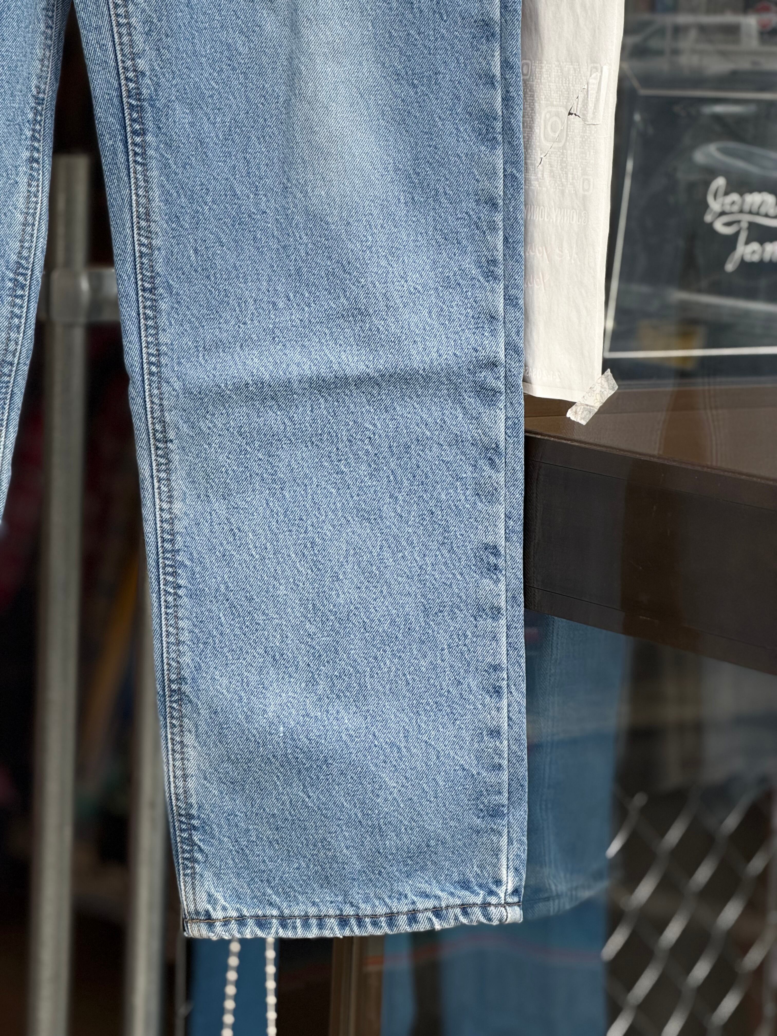 Relaxed Fitの名の通りゆとりのあるやや太めなシルエットで、バキバキ過ぎずのっぺりし過ぎずなバランスの取れたアイスブルーな色落ちです。