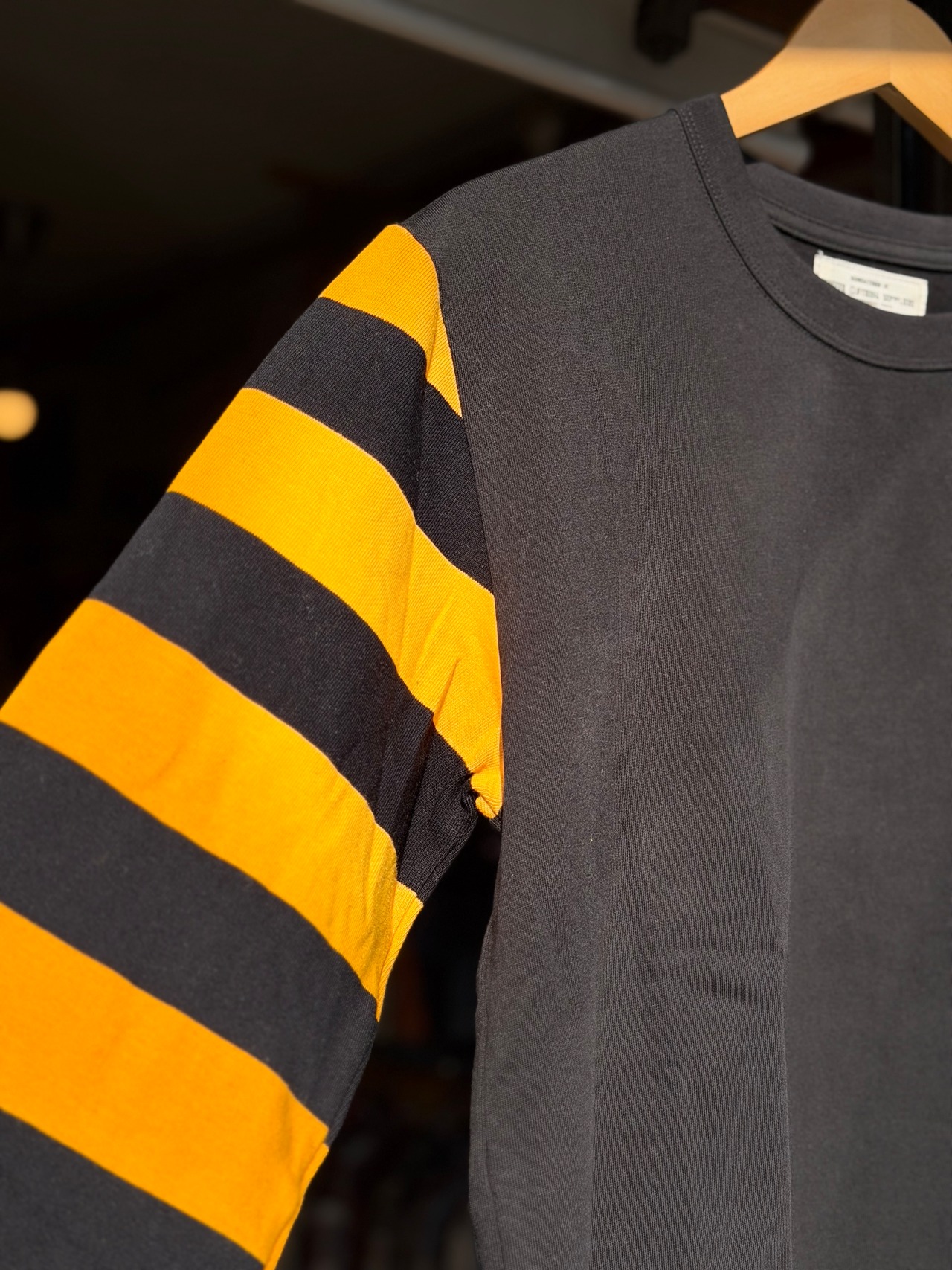 「袖だけがボーダーになったロンT」