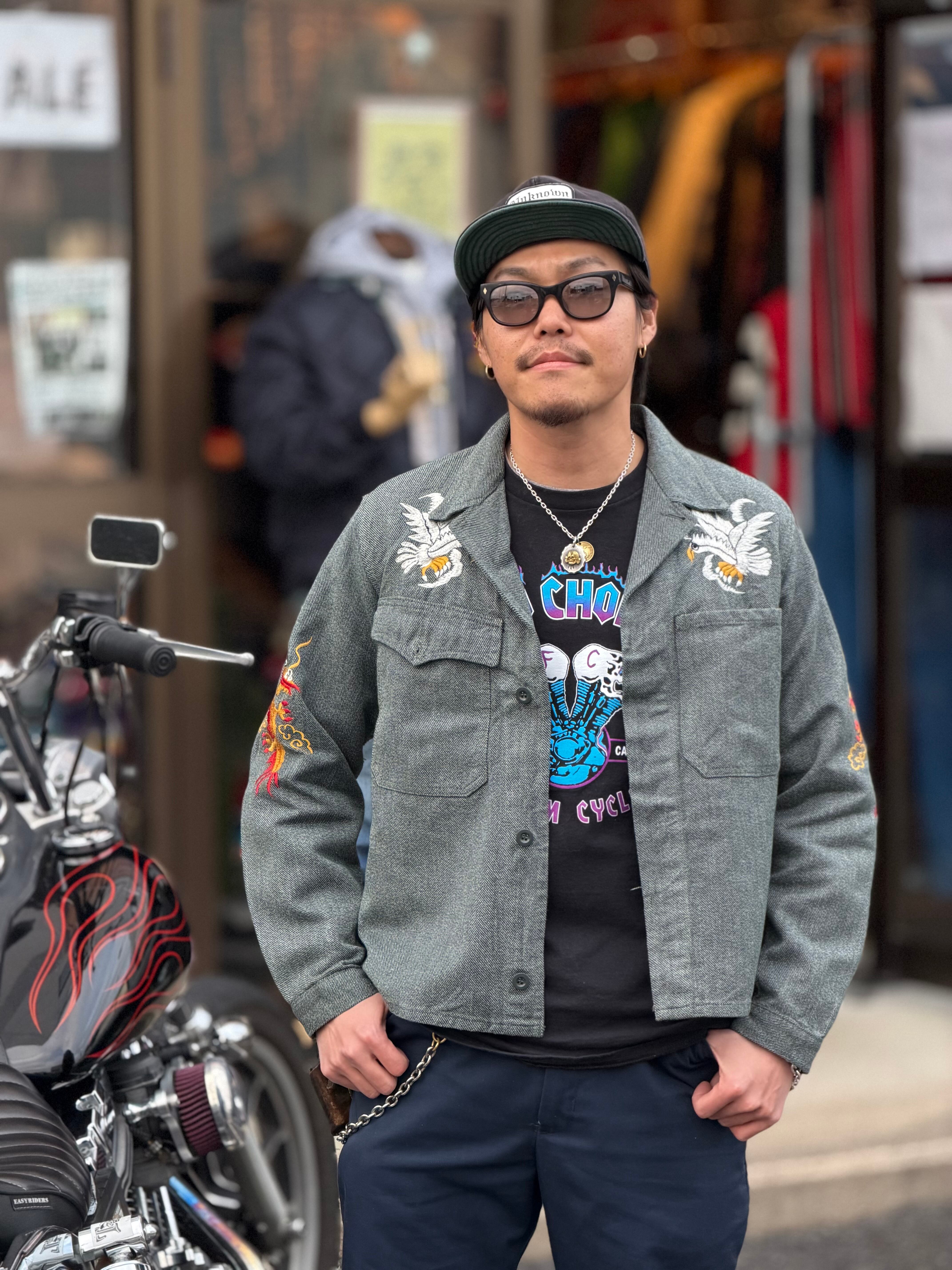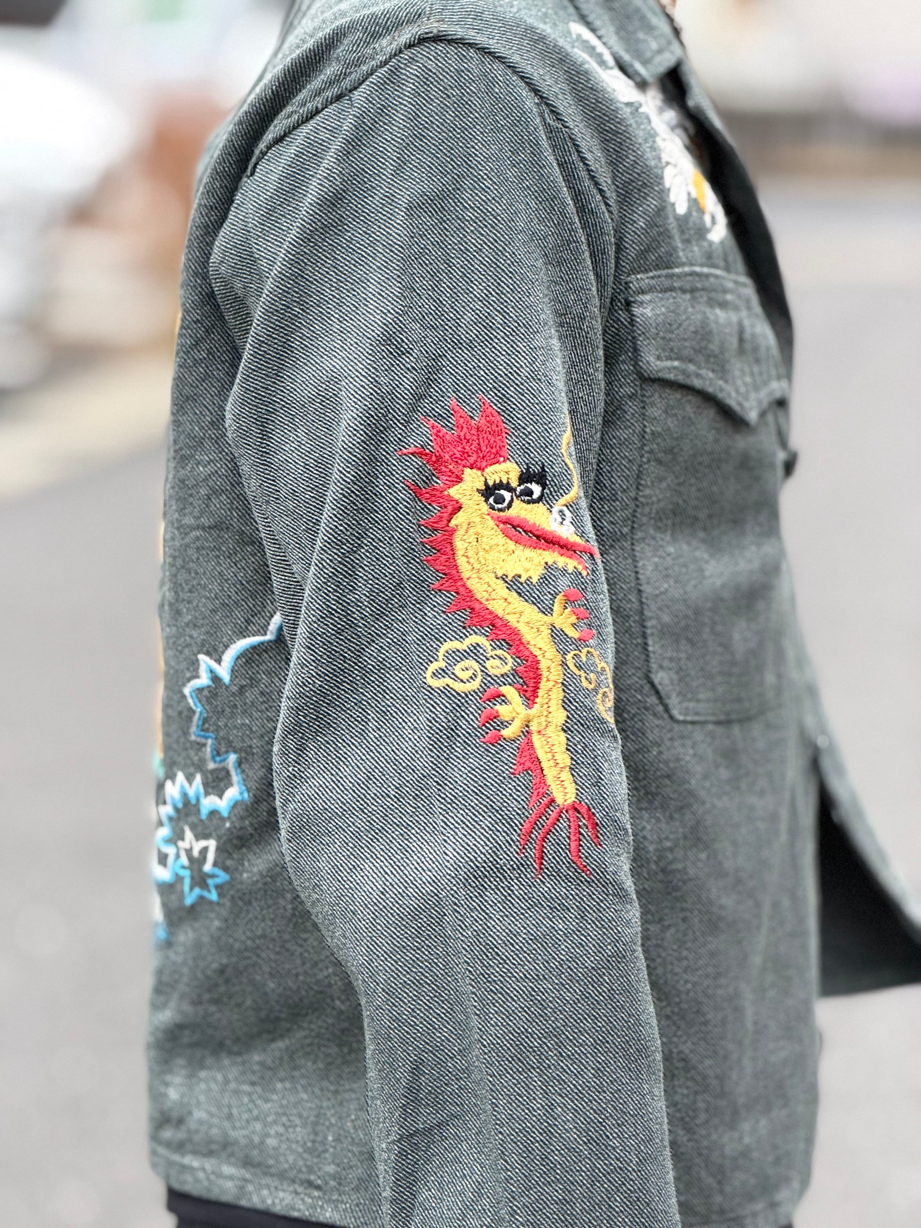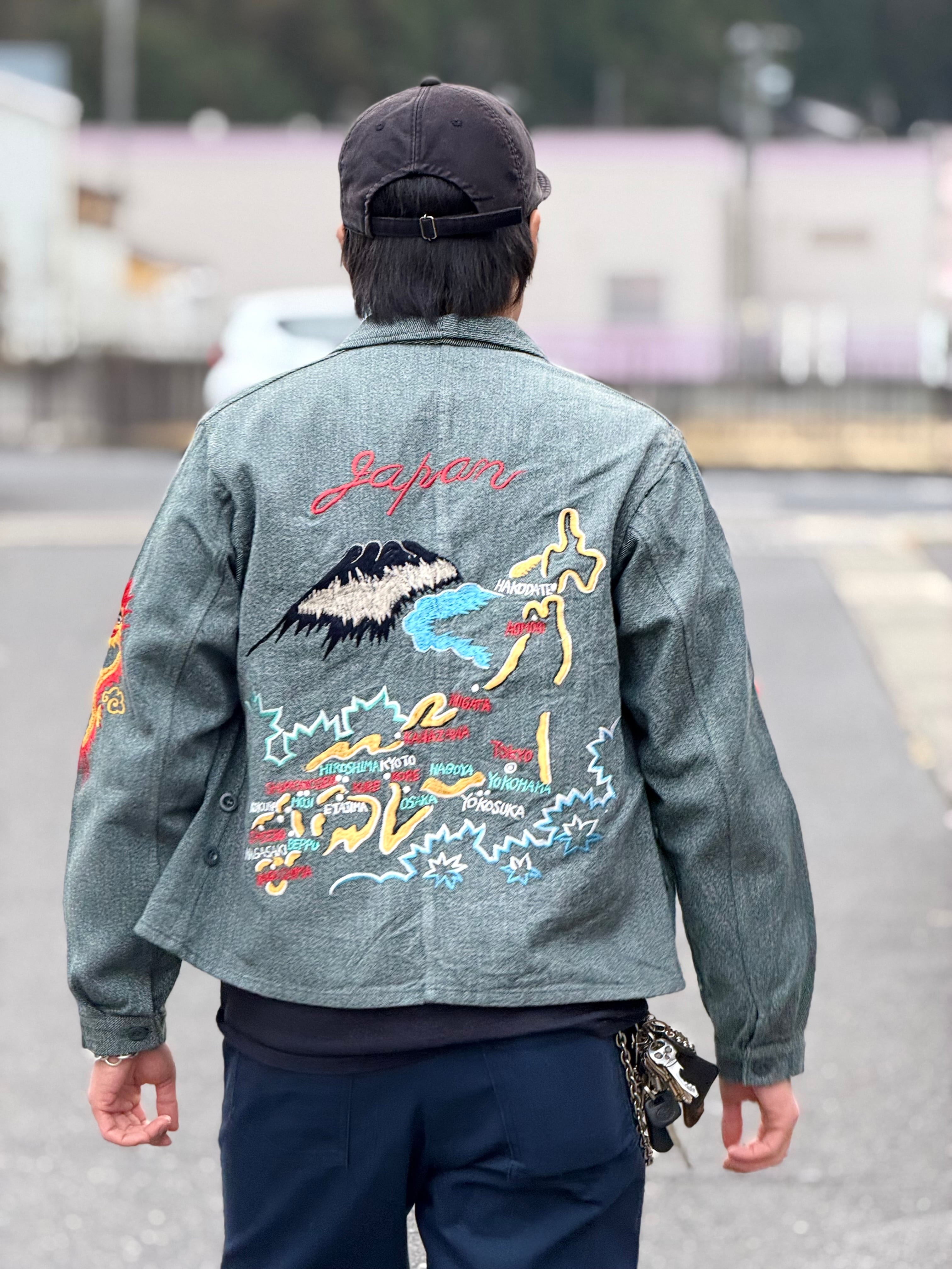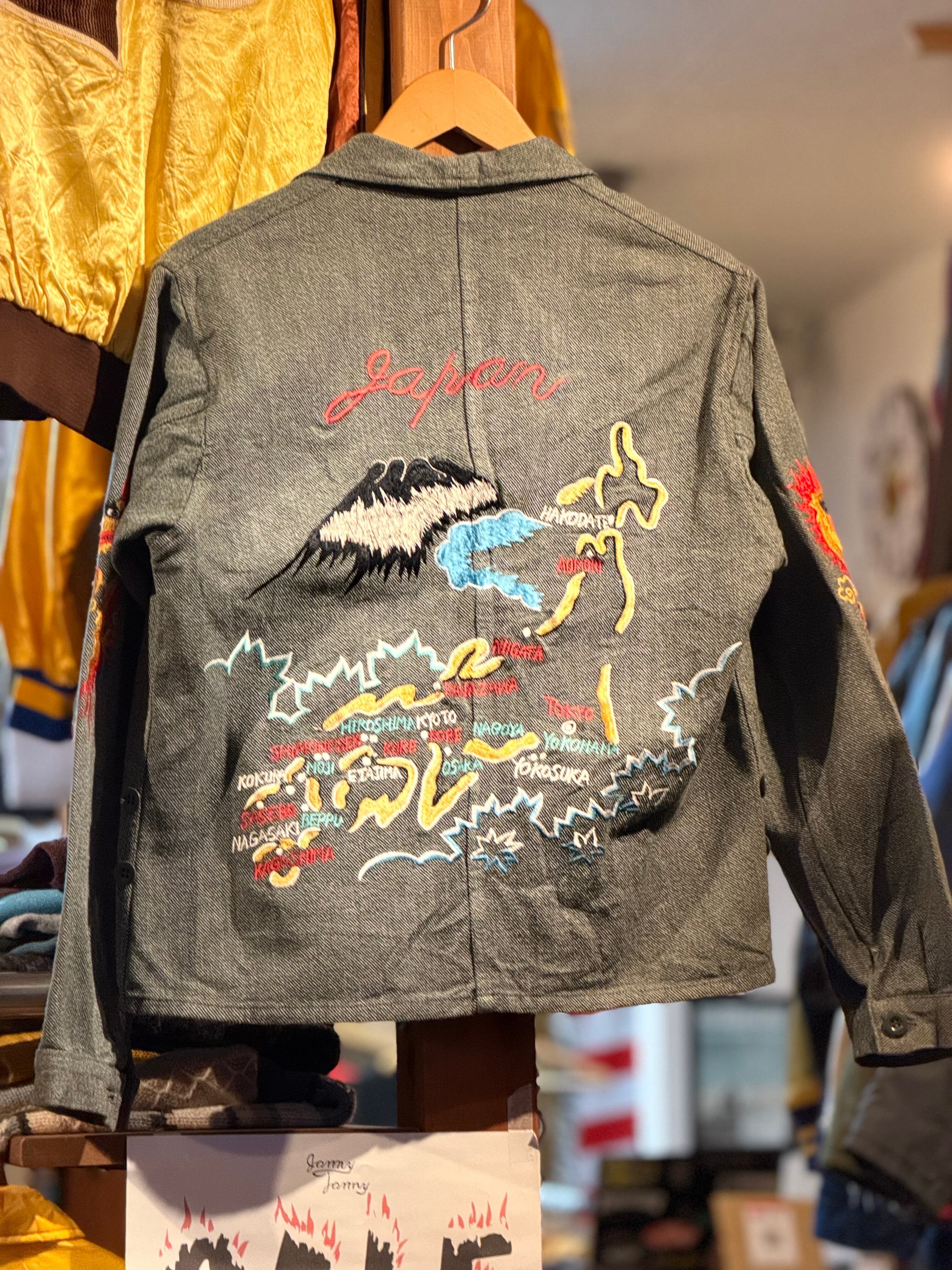 60~70年代?と思われるユーロヴィンテージ、フレンチワークジャケットをベースに"JAPAN MAP"が施されたスーベニアジャケットになります。
