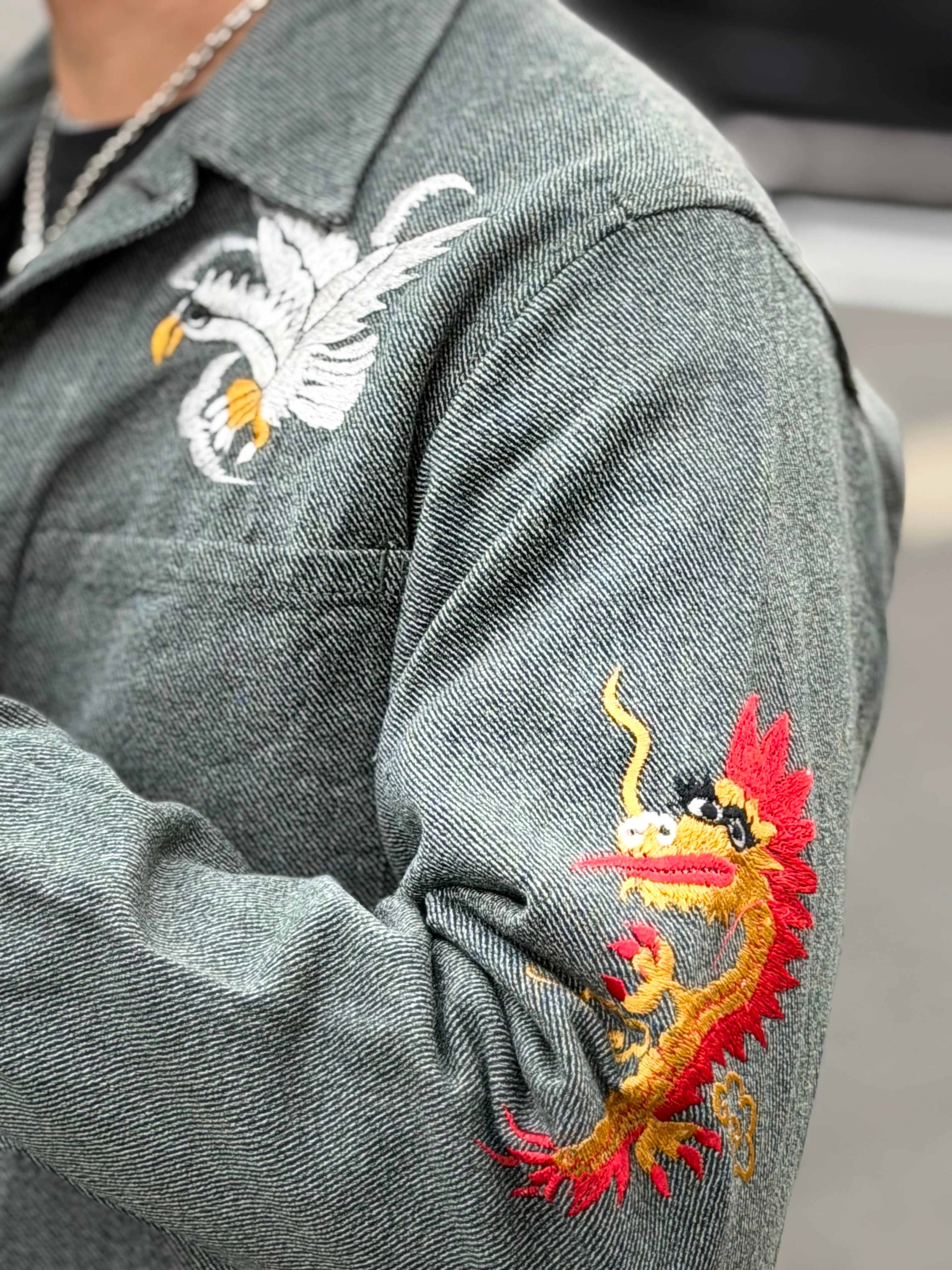 Euro Vintage MARSUM "JAPAN MAP" スーベニアジャケット 48 実寸Mサイズ程 スカジャン ワークジャケット ユーロヴィンテージ 日本地図 刺繍 龍 鷹 短丈 アメカジ 古着