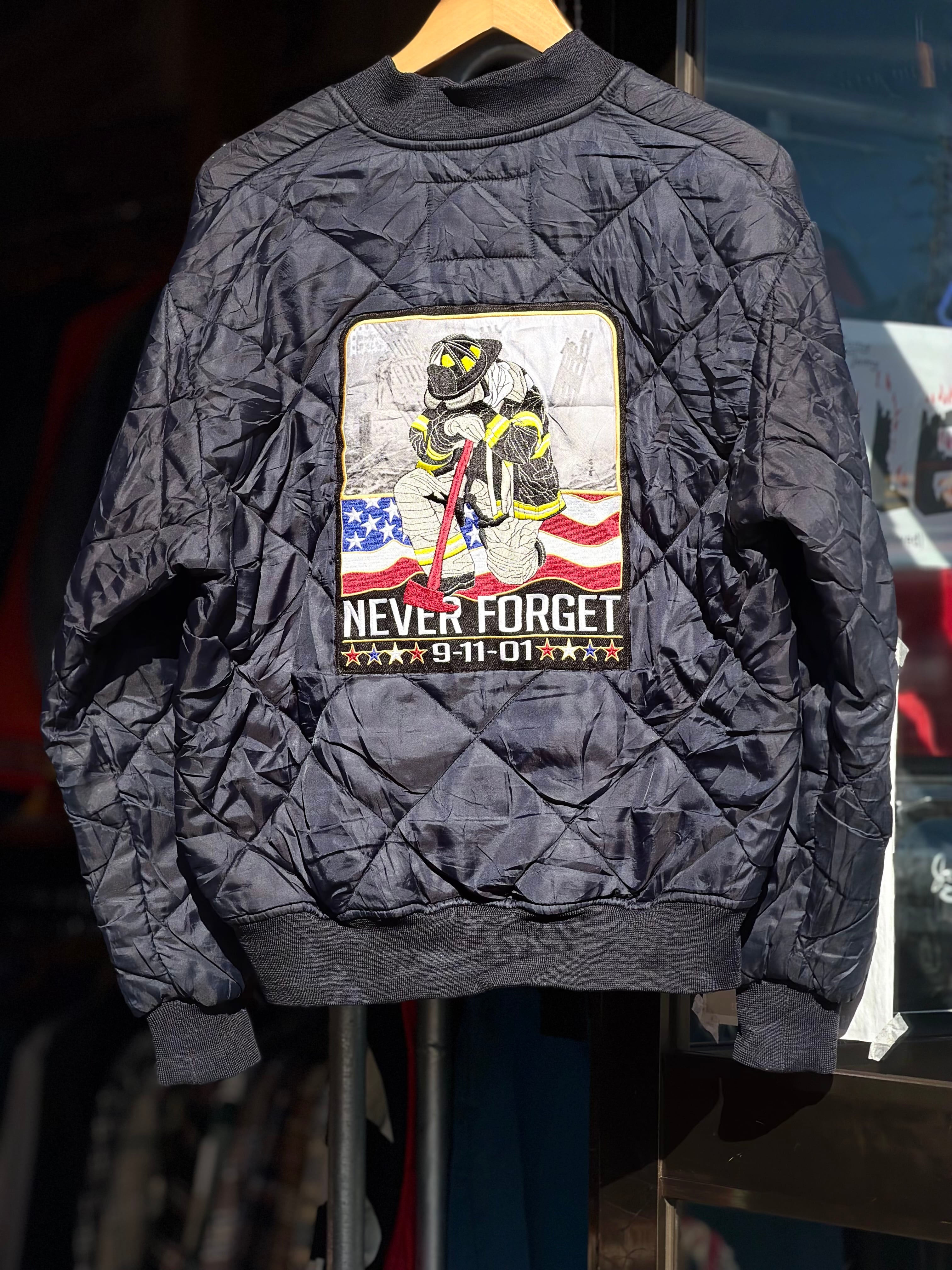 バックには大きく消防士と"NEVER FORGET 9-11-01"のデザイン。