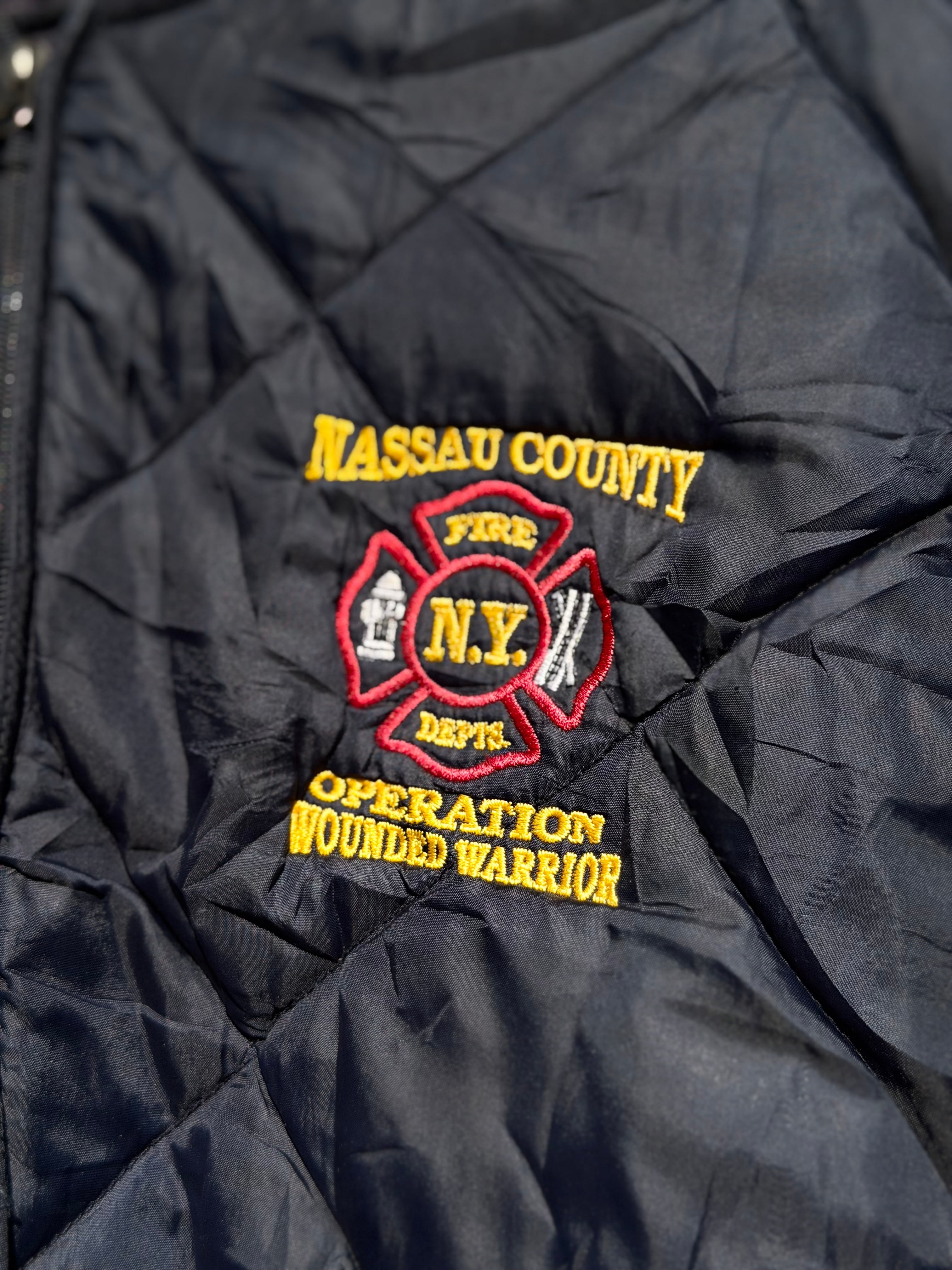 左胸にはニューヨーク州ナッソー郡の消防署のマーク入り。