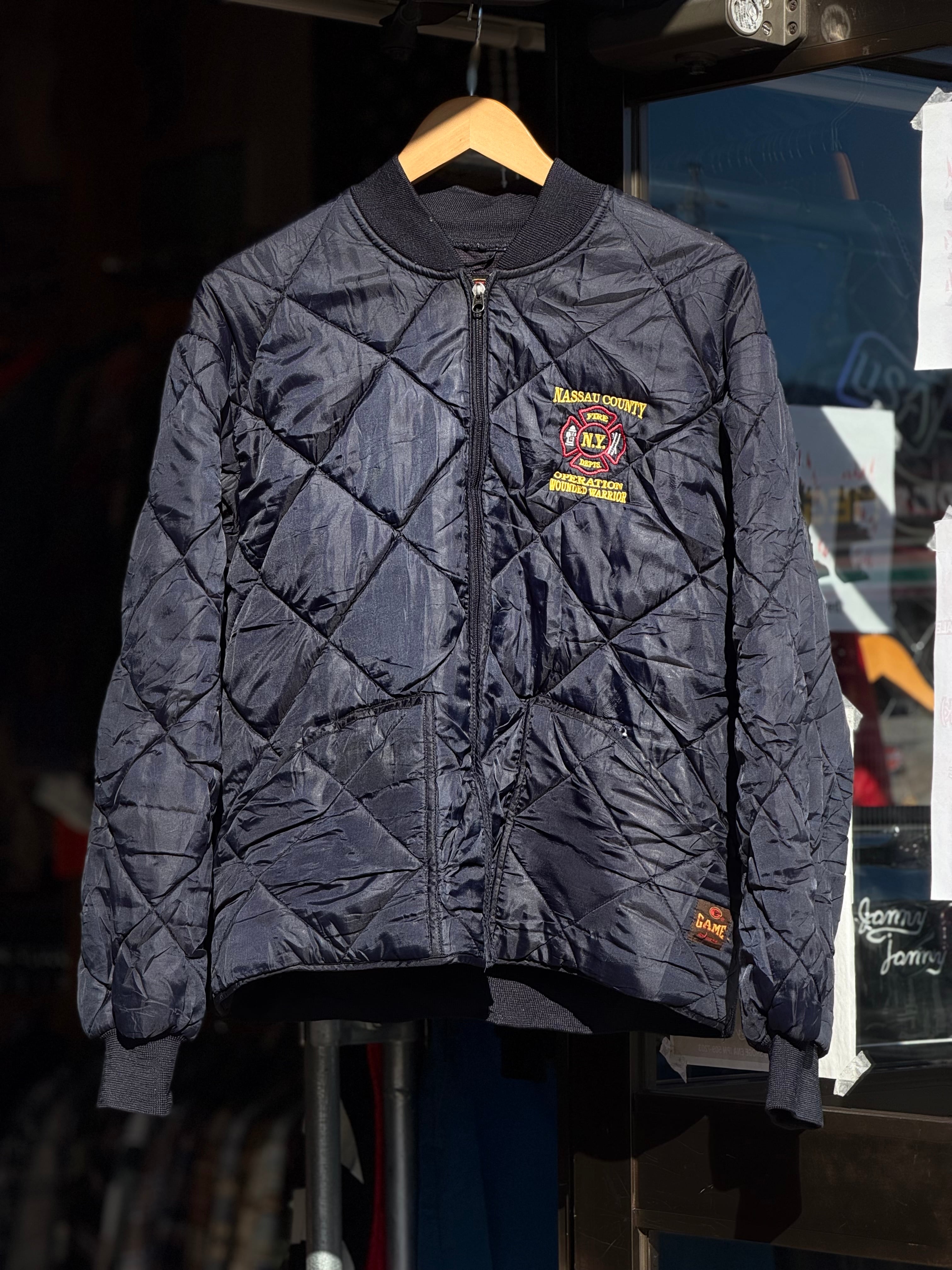 GAME Workwear "NEVER FORGET 9.11" キルティングボンバージャケット Mサイズ 消防 FIRE DEPTS. キルティングジャケット クロス new york GAME SPORTSWEAR ゲーム