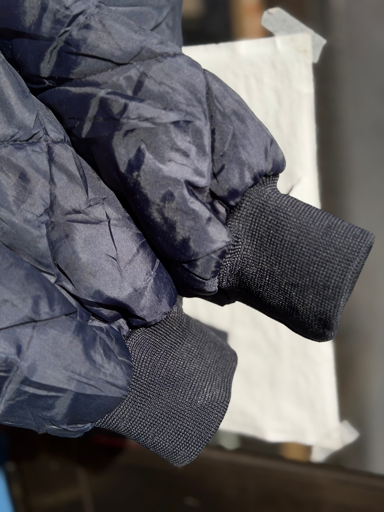 全面キルティングで袖口にはリブ、裾は後ろだけリブになっており風の侵入を防ぎます。