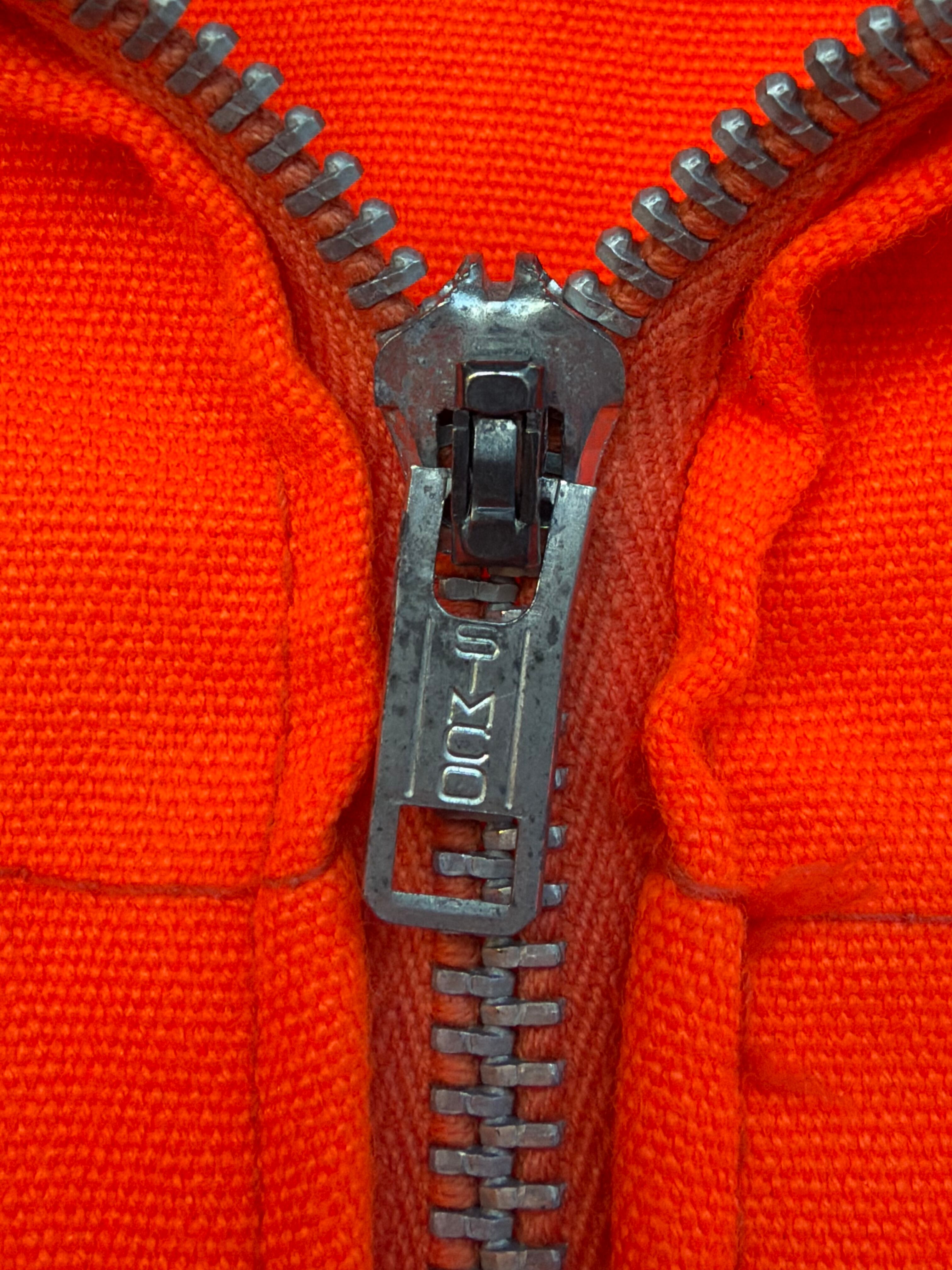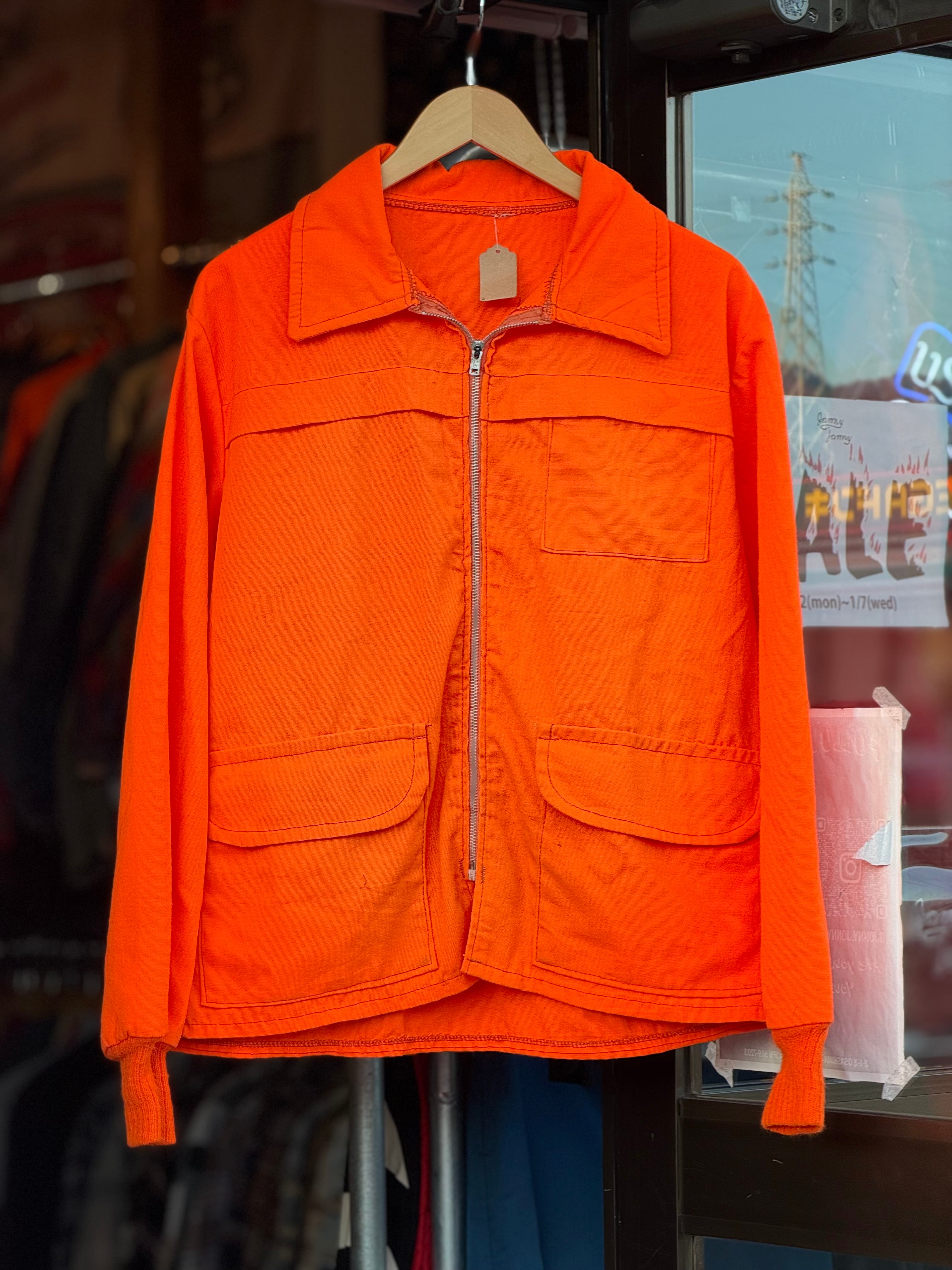 60~70's Vintage unknown ハンティングジャケット 実寸L〜XLサイズ程 蛍光オレンジ ブレイズオレンジ 短丈 ボックスシルエット 派手 フラップポケット アルミジッパー ワークジャケット アメカジ バイカーファッション ストリート